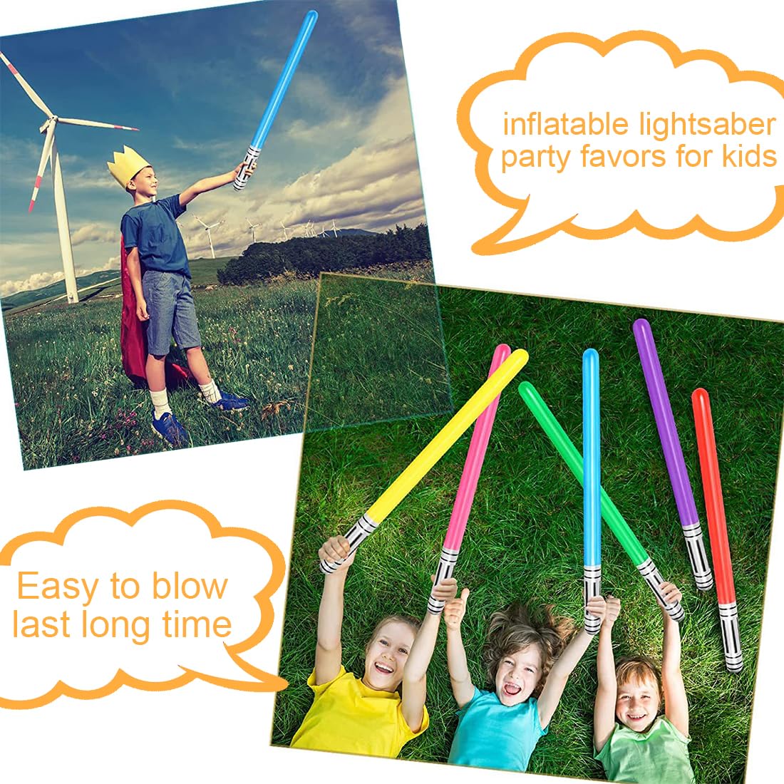 1,🎉 【Forniture fantastiche per feste】: il nostro set di spade laser gonfiabili SULIUDAJI offre divertimento senza fine per i bambini durante feste a tema o festival. Ogni set contiene sei spade luminose nei colori blu, rosso, giallo, viola, bianco e arancione, oltre a un pratico compressore d'aria. 2.💪 【Materiale PVC robusto】: realizzate in materiale PVC di alta qualità, le nostre spade laser lunghe 90 cm garantiscono un utilizzo coerente e affidabile. La struttura resistente garantisce un divertimento duraturo senza sacrificare la qualità. 3.🌟【Perfetto per feste a tema】: con il nostro set sarai pronto per qualsiasi avventura! Che si tratti di una festa a tema spaziale o di Star Wars, le nostre spade laser garantiranno ore di divertimento. La varietà di colori permette ad ogni bambino di scegliere la propria spada preferita. 4.🌈【Uso versatile】: ideale per compleanni, celebrazioni o occasioni festive. Le nostre spade laser sono perfette per avventure fantasiose e giochi creativi. Il set di sei spade offre una scelta sufficiente per giochi di gruppo e giochi di ruolo. 5.🎁【Regalo unico】: sorprendi il tuo piccolo Jedi con questo fantastico set. Ogni confezione contiene sei spade laser di diversi colori, rendendole il regalo ideale per un divertimento indimenticabile a qualsiasi festa.