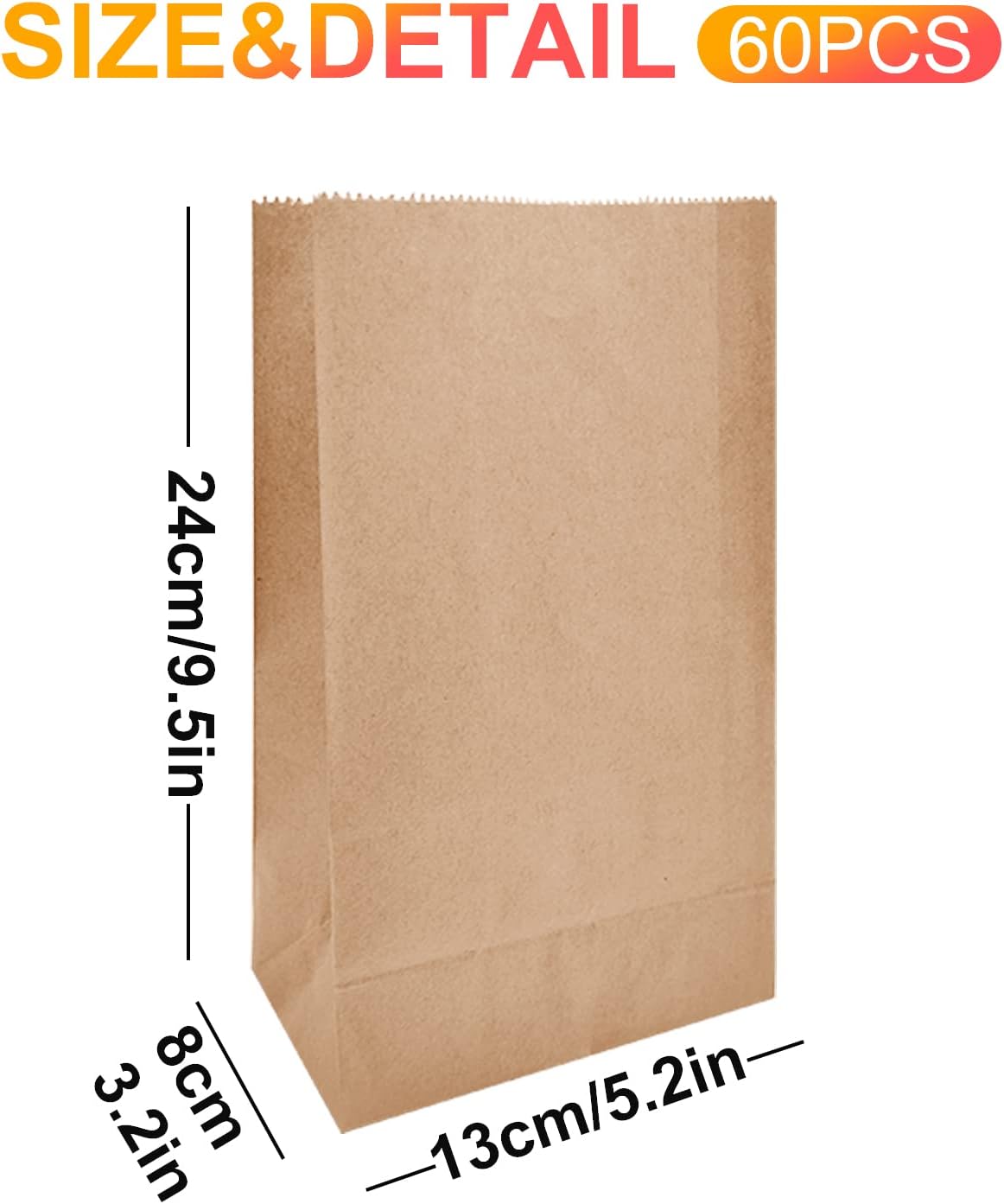 SACCHETTI REGALO FAI DA TE - Questi sacchetti di carta non hanno decorazioni. Puoi aggiungere la tua creatività per decorare questi sacchetti di carta oppure puoi scrivere segni o etichette sui sacchetti di carta per ordinarli facilmente. Che si tratti di una festa di compleanno, matrimonio, celebrazione o Natale, Ringraziamento, Halloween, Festa dei bambini, puoi usarli per ogni occasione. DIMENSIONE DELL'IMBALLAGGIO PERFETTA - 60 sacchetti di carta kraft, set di sacchetti di caramelle ciascuno misura 24 cm x 13 cm x 8 cm. Contiene carte, giocattoli, pane, caramelle e altro ancora. Questi sacchetti di carta kraft sono ideali per progetti creativi, sia per una festa di compleanno che come calendario dell'Avvento, regalo di Pasqua, regalo di nozze o regalo promozionale. Oppure conservalo come carta da imballaggio. ADATTI A MOLTE OCCASIONI: I sacchetti di carta possono essere utilizzati in molte occasioni. Disponibile in tante misure e quantità, è perfetta come borsa spesa da cucina o borsa regalo per feste di compleanno, Halloween, Natale, Ringraziamento, Capodanno, feste, matrimoni. BASE PIEGHEVOLE - Questi sacchetti di carta hanno un fondo piatto in modo che possano stare in piedi e stare in piedi da soli. Può essere piegato quando non viene utilizzato, il che consente di risparmiare molto spazio. Perfetto per conservare torte, pane, dolci, biscotti e altro ancora. MATERIALE DI ALTA QUALITÀ - Il sacchetto di carta è realizzato in robusta carta kraft marrone di alta qualità. Durevole, sicuro, ecologico e inodore. La pressione è uniforme e le cuciture non si aprono facilmente. È sicuro conservare biscotti, dolci, frutta, verdura, ecc. Si prega di usarlo con tranquillità. Grazie allo spessore della carta, può essere facilmente utilizzato anche su oggetti grassi come i popcorn.