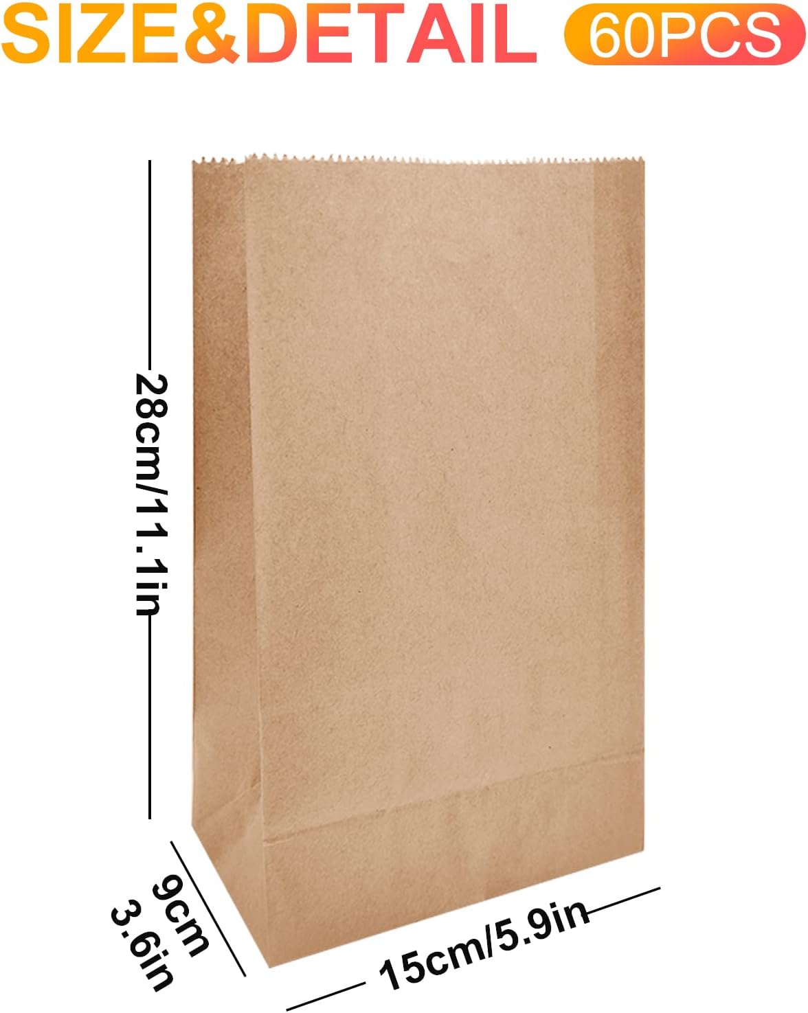 SACCHETTI REGALO FAI DA TE - Questi sacchetti di carta non hanno decorazioni. Puoi aggiungere la tua creatività per decorare questi sacchetti di carta oppure puoi scrivere segni o etichette sui sacchetti di carta per ordinarli facilmente. Che si tratti di una festa di compleanno, matrimonio, celebrazione o Natale, Ringraziamento, Halloween, Festa dei bambini, puoi usarli per ogni occasione. DIMENSIONE DELL'IMBALLAGGIO PERFETTA - 60 sacchetti di carta kraft, set di sacchetti di caramelle ciascuno misura 28 cm x 15 cm x 9 cm. Contiene carte, giocattoli, pane, caramelle e altro ancora. Questi sacchetti di carta kraft sono ideali per progetti creativi, sia per una festa di compleanno che come calendario dell'Avvento, regalo di Pasqua, regalo di nozze o regalo promozionale. Oppure conservalo come carta da imballaggio. ADATTI A MOLTE OCCASIONI: I sacchetti di carta possono essere utilizzati in molte occasioni. Disponibile in tante misure e quantità, è perfetta come borsa spesa da cucina o borsa regalo per feste di compleanno, Halloween, Natale, Ringraziamento, Capodanno, feste, matrimoni. BASE PIEGHEVOLE - Questi sacchetti di carta hanno un fondo piatto in modo che possano stare in piedi e stare in piedi da soli. Può essere piegato quando non viene utilizzato, il che consente di risparmiare molto spazio. Perfetto per conservare torte, pane, dolci, biscotti e altro ancora. MATERIALE DI ALTA QUALITÀ - Il sacchetto di carta è realizzato in robusta carta kraft marrone di alta qualità. Durevole, sicuro, ecologico e inodore. La pressione è uniforme e le cuciture non si aprono facilmente. È sicuro conservare biscotti, dolci, frutta, verdura, ecc. Si prega di usarlo con tranquillità. Grazie allo spessore della carta, può essere facilmente utilizzato anche su oggetti grassi come i popcorn.