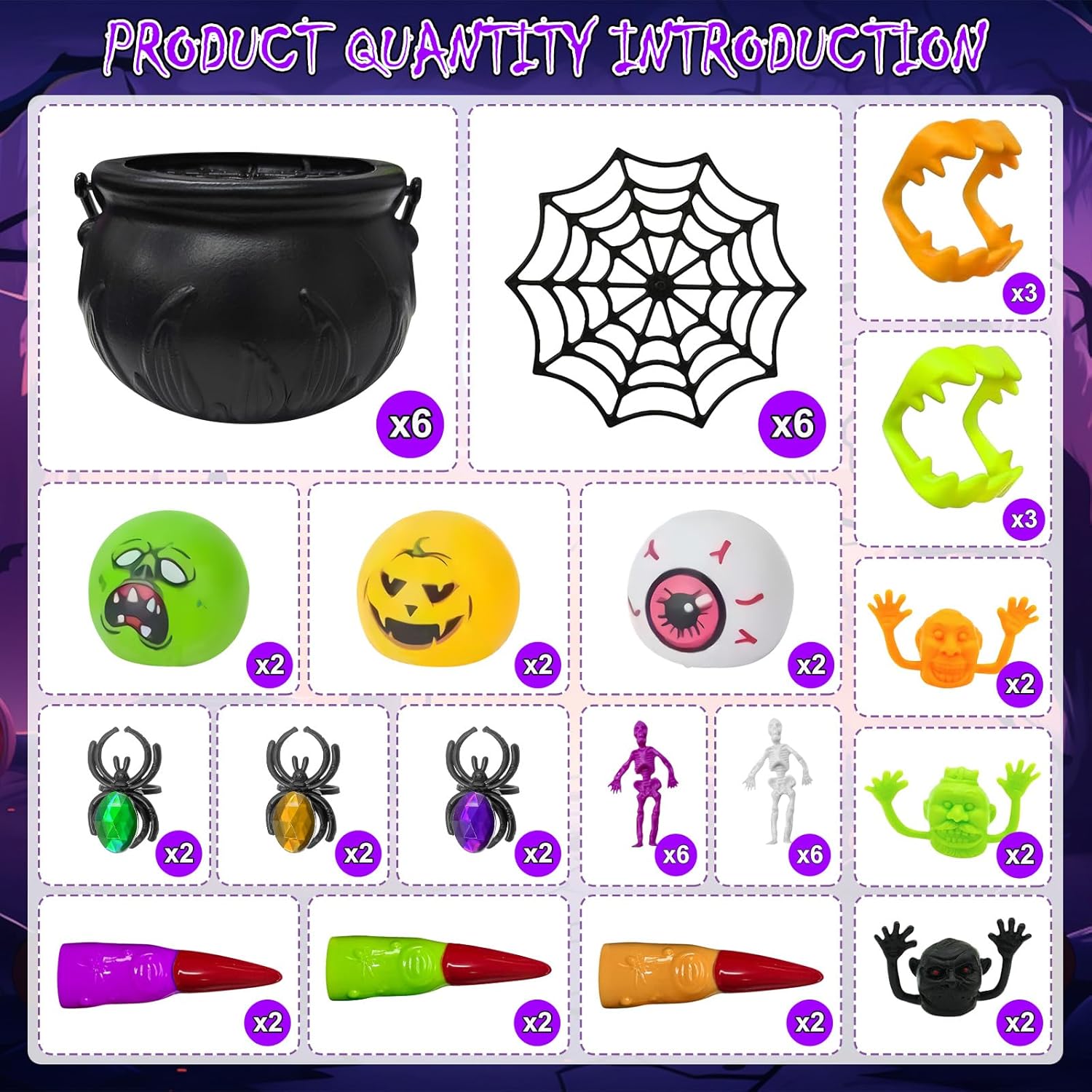 Set di gioco versatile: contiene 60 pezzi come palline rotolanti con motivi spaventosi, dita di streghe, ragnatele e creature. Ogni giocattolo di Halloween offre varie interazioni e incoraggia la condivisione con gli amici. Design unico della scatola regalo: la scatola dei regali di Halloween per bambini si trasforma in una cassetta della strega grazie al facile montaggio. Perfettamente organizzato per riempire la borsa della festa di Halloween durante il dolcetto o scherzetto. Materiale: durevole e flessibile garantisce un uso duraturo senza deformazioni. Le parti rimovibili ti consentono di ricreare facilmente le decorazioni per ogni Halloween e sono riutilizzabili più volte, ideali per le borse da festa di Halloween per bambini. Usi multifunzionali: ideale come borsa per feste di Halloween per feste di compleanno di bambini per attività di classe, riempitivo per borse alle feste o decorazione. I set si abbinano ai costumi e garantiscono momenti indimenticabili come regalo di Halloween alle feste. Soluzione completa che fa risparmiare tempo: evita noiose ricerche individuali: tutte le borse per feste di compleanno di Halloween per bambini sono coordinate tematicamente. Basta "prendere subito una fetta" per preparare istantaneamente la festa o ricevere ricompense.