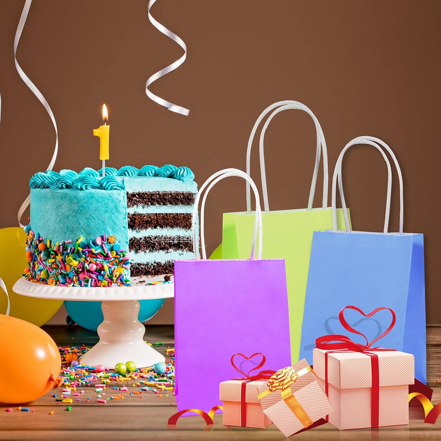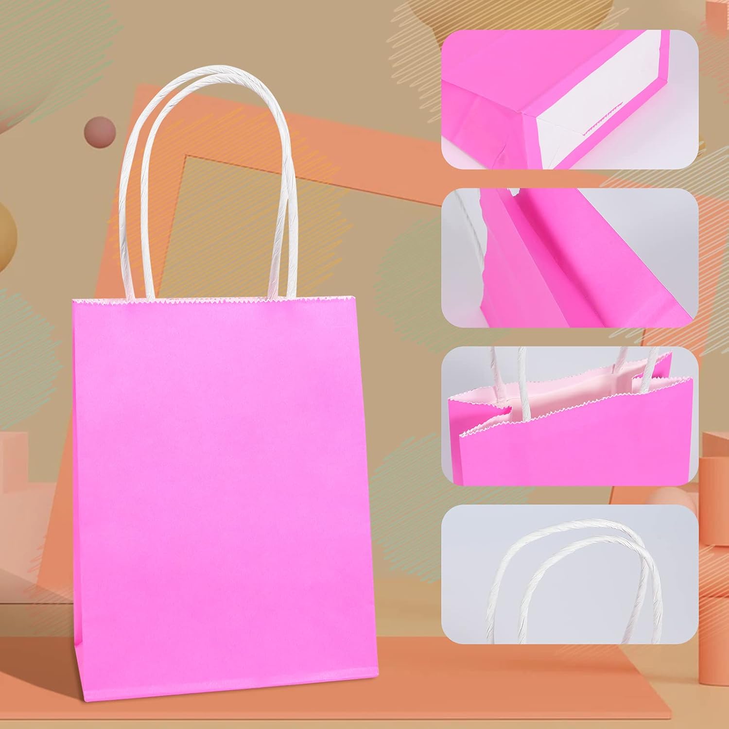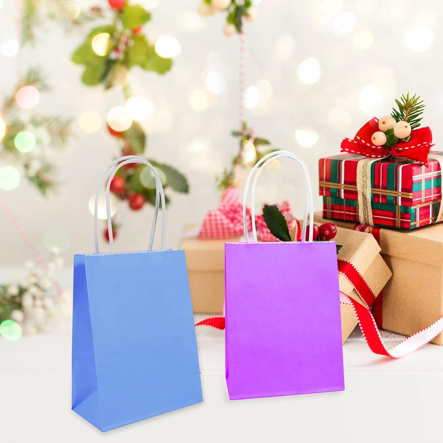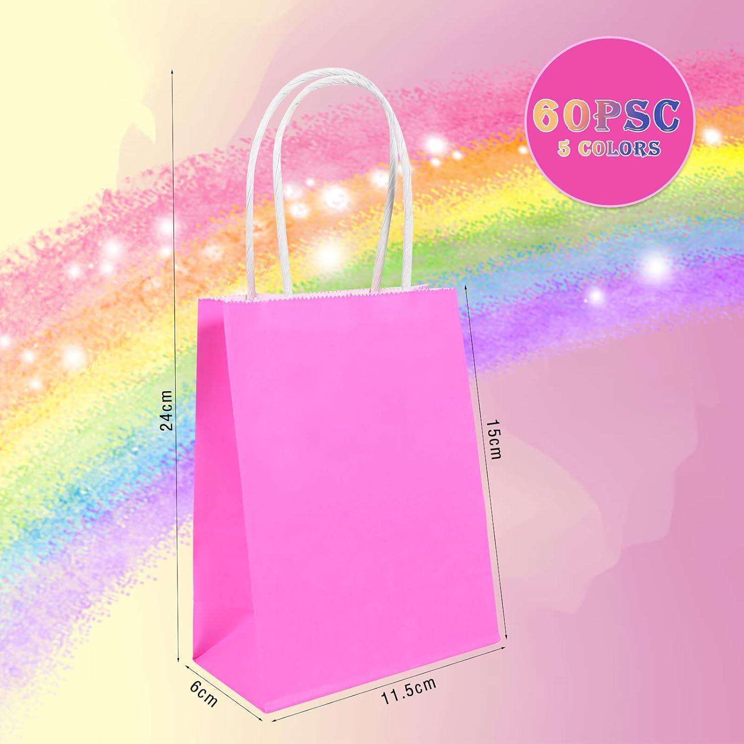 5 colori diversi, rosa, blu, viola, azzurro e verde. Ogni borsa contiene 60 piccoli sacchetti di carta con manici, 11,5 * 6 * 15 cm (4,53 * 2,36 * 5,9 pollici). Questi piccoli sacchetti regalo sono molto adatti per realizzarli da soli, puoi decorarli facilmente con pennarelli o acquerelli. Colorati, carini e pratici, questi sacchetti regalo in carta sono molto adatti come sacchetti regalo per varie feste, feste di compleanno e celebrazioni varie. Realizzato in carta kraft di alta qualità, spessa e pieghevole, il fondo è aperto e piatto e la parte della mano è appositamente rinforzata, il che ha una lunga durata. Si prega di prestare attenzione alle dimensioni di queste borse da spesa, le piccole buste di carta natalizie sono adatte solo per piccoli oggetti come caramelle, cioccolatini e accessori.