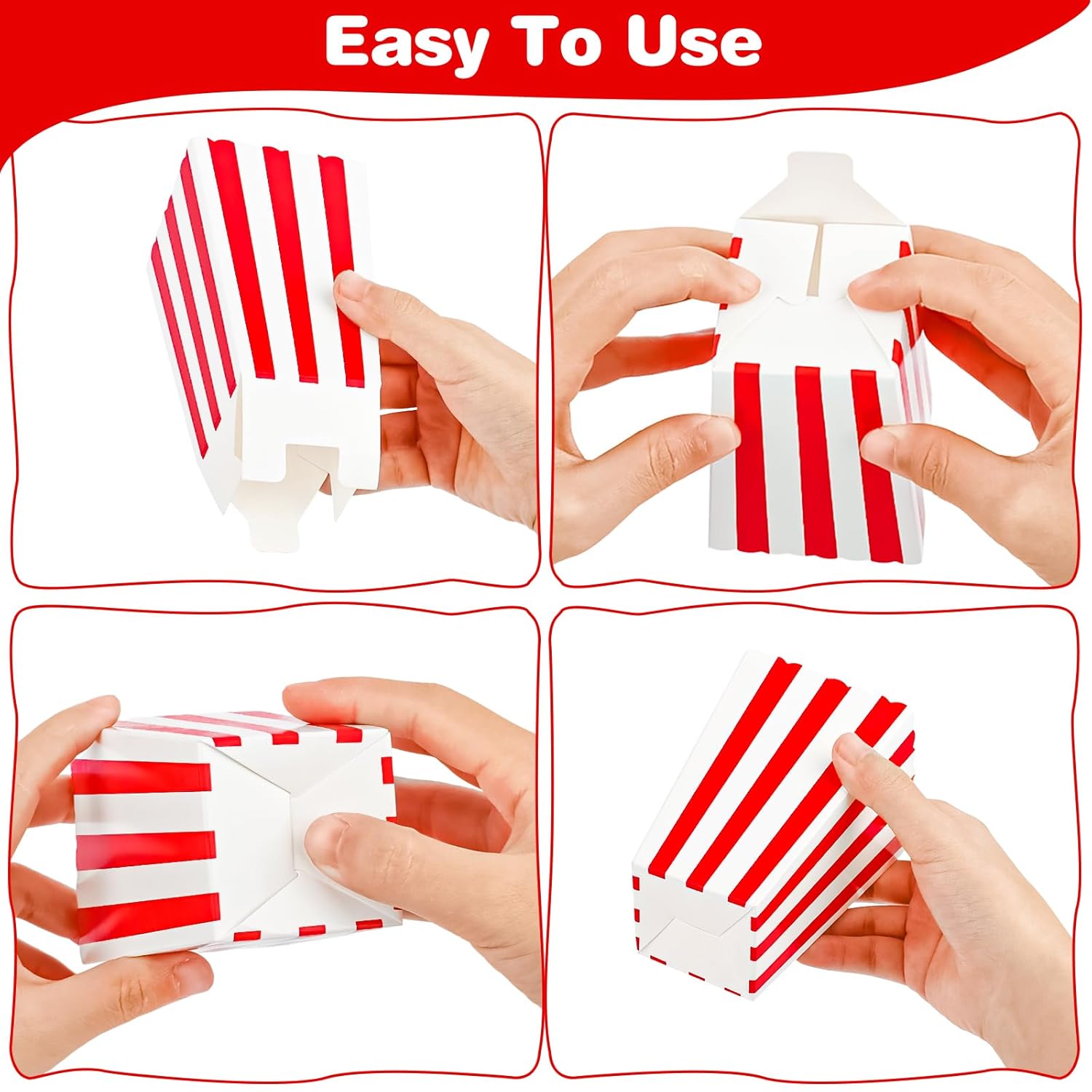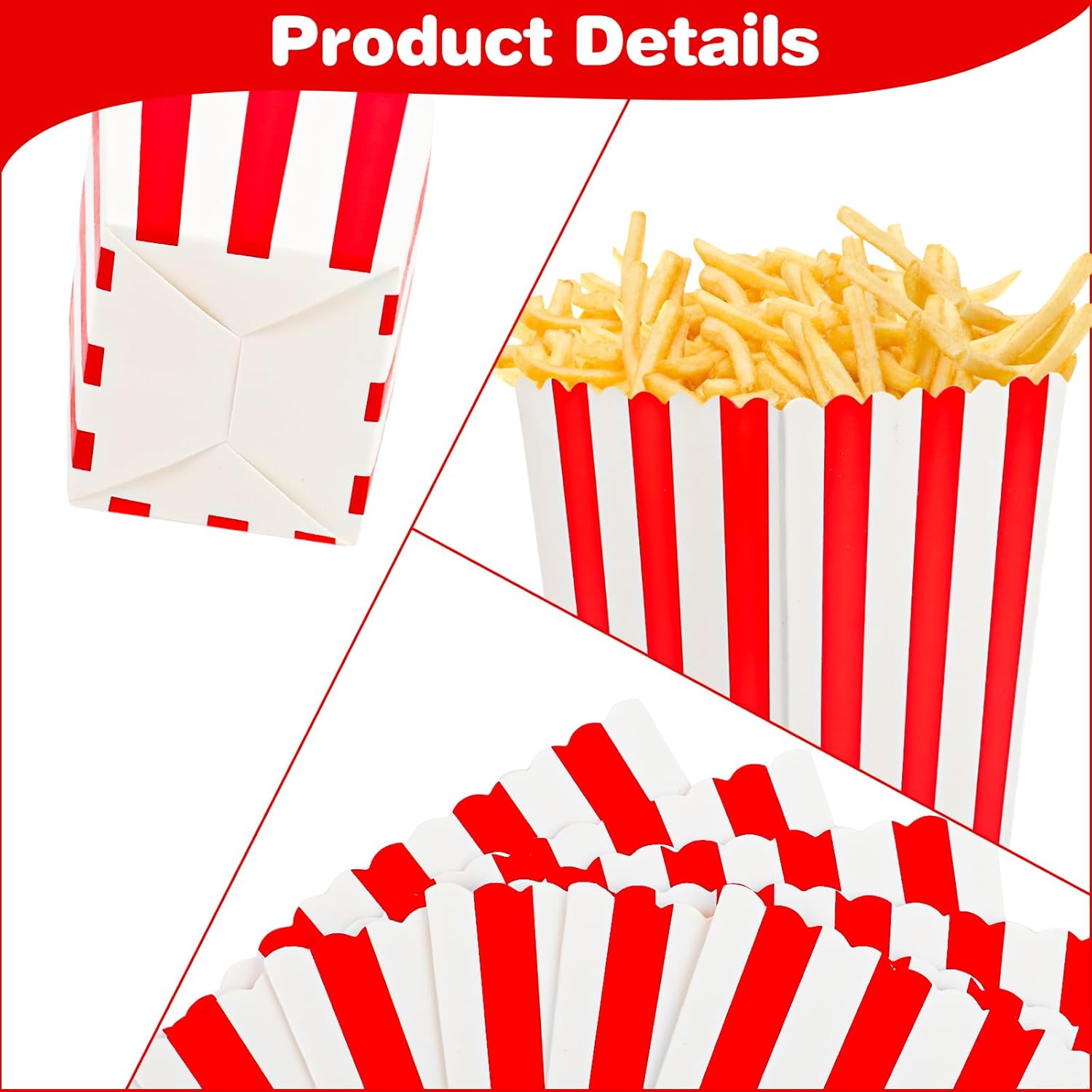 【Contenuto della confezione】Riceverai scatole di popcorn da 60 pezzi, la dimensione è di circa 11,5x7x5 cm, grande quantità, sufficiente per l'uso quotidiano, perfetta per gustare popcorn con la famiglia e gli amici durante una serata al cinema o una festa a tema cinematografico. 【Materiale di qualità】 Le scatole di popcorn sono realizzate in materiale di alta qualità, spesso e sicuro, robusto e durevole, non facile da rompere, le macchie di olio non sono facili da perdere, puoi stare certo che puoi usarlo. La base ha un design quadrato, un posizionamento stabile, facile da usare, può soddisfare pienamente le tue esigenze. 【Facile da usare】 Assemblare le scatole di popcorn è molto semplice, devi solo piegare la scatola di popcorn sulla linea per assemblarla, non sono necessarie colla o altri strumenti. Infine riempilo di popcorn utilizzando l'apposita paletta e buon appetito! 【Design Classico】 I nostri sacchetti per popcorn sono progettati con strisce rosse e bianche, che rendono il cibo più appetitoso, carino e accattivante e possono essere posizionati stabilmente per un facile accesso in qualsiasi momento. Perfetto anche per feste di compleanno, serate di cinema, feste a tema e altro ancora. 【Ampiamente usato】 I nostri sacchetti per popcorn possono essere utilizzati non solo per conservare i popcorn, ma anche per conservare una varietà di snack per le feste, come biscotti, caramelle, crocchette di pollo, patatine, arachidi e così via. Perfetto per divertirsi con amici e familiari.