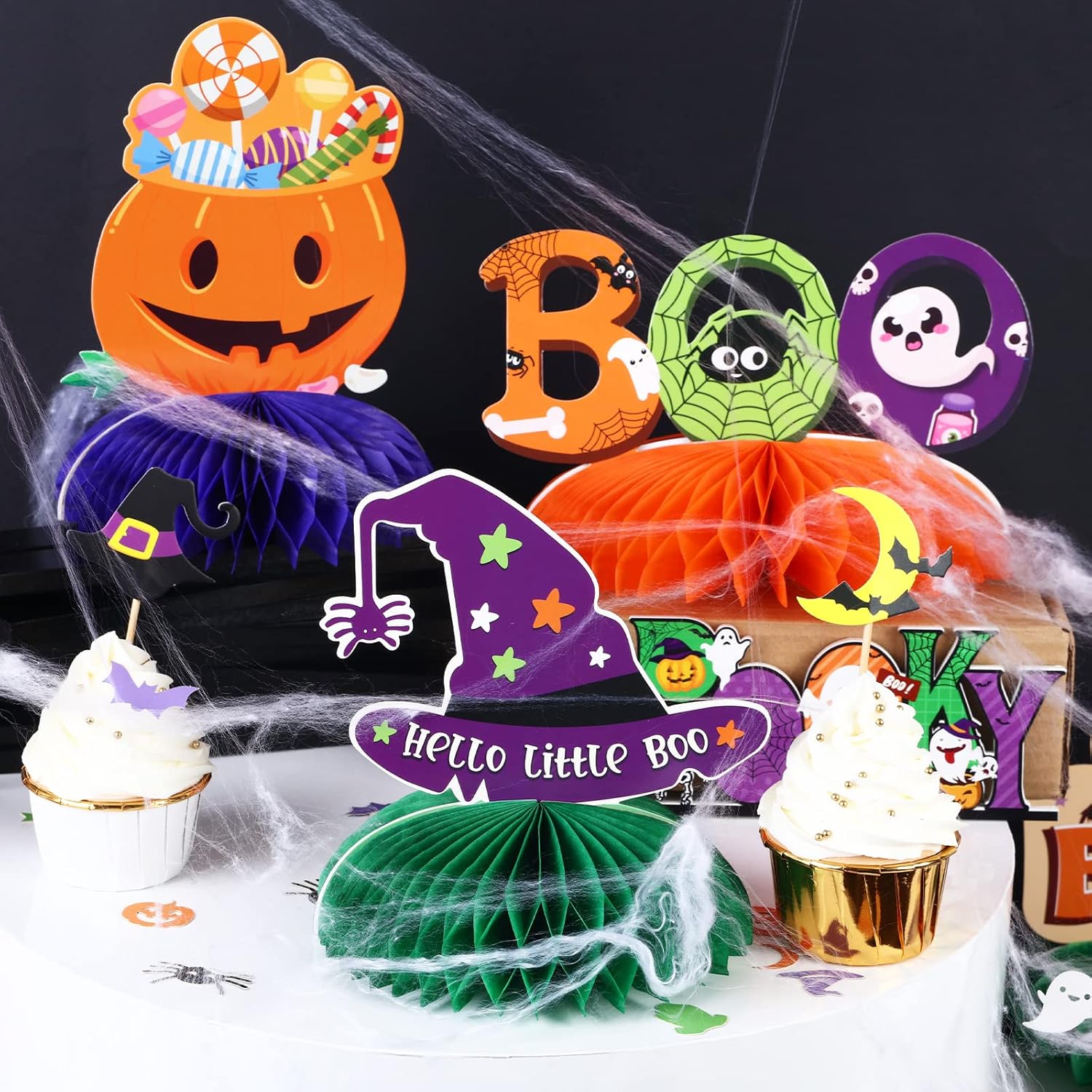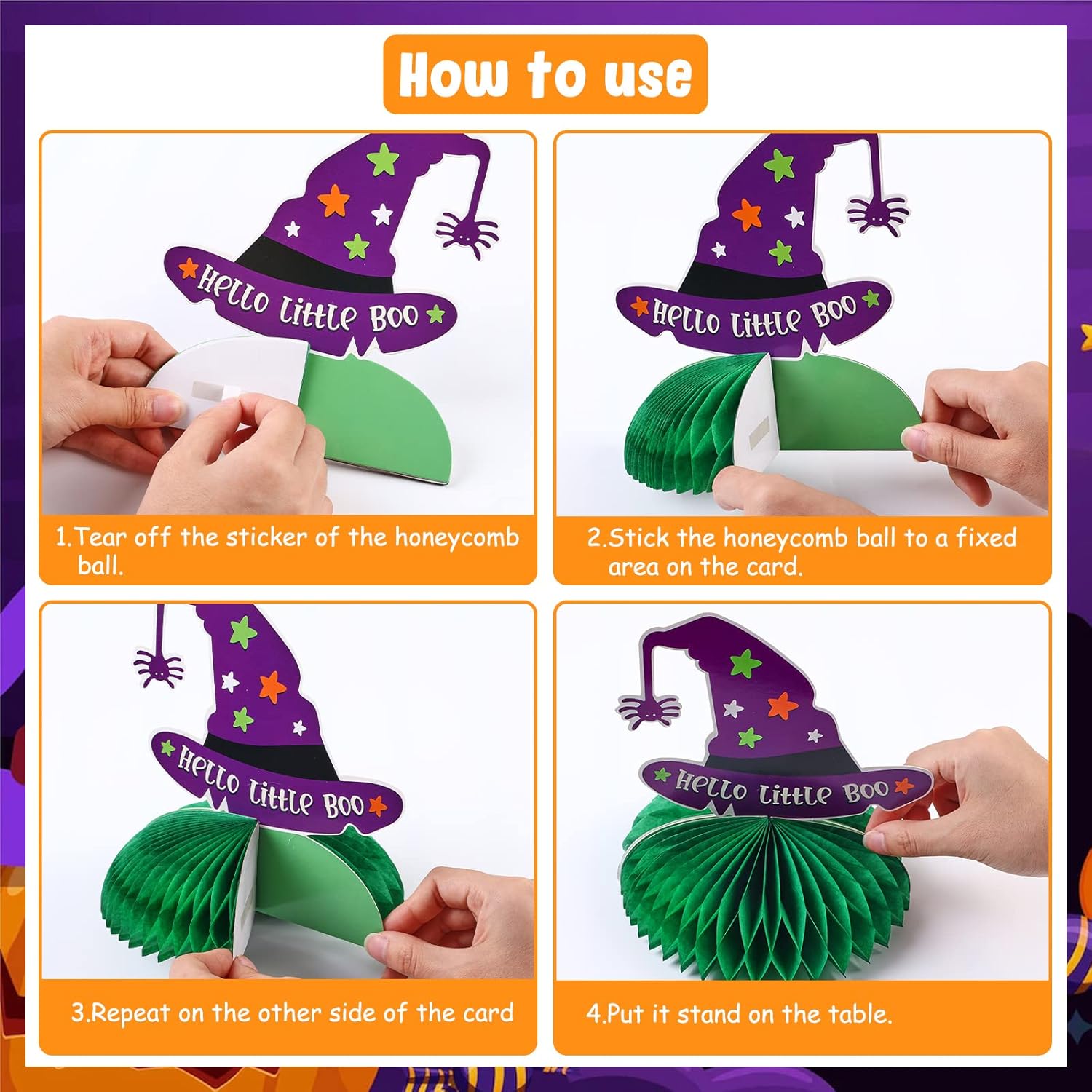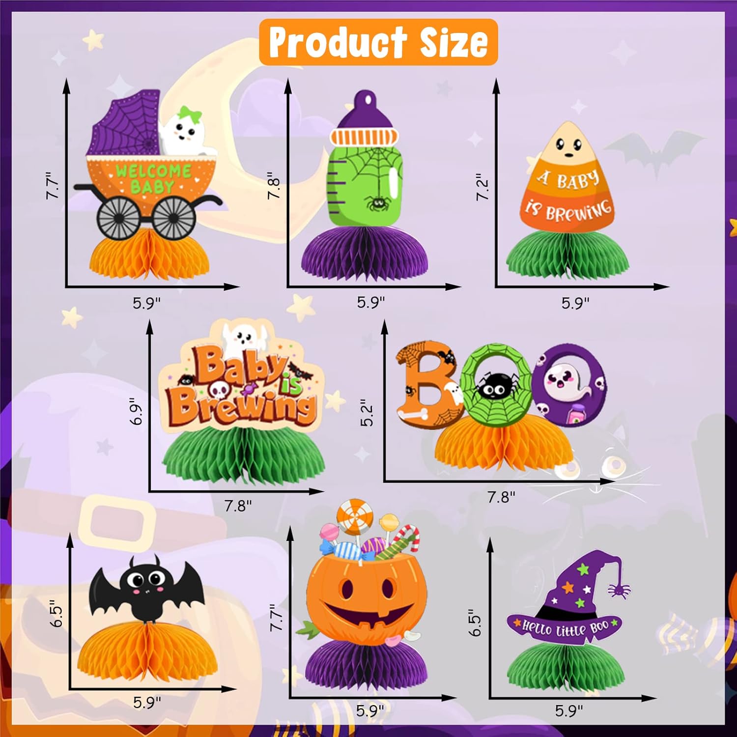 La confezione include: ci sono 2 centrotavola a nido d'ape da 8 pollici e 6 pezzi centrotavola a nido d'ape da 6 pollici. Facile da montare: basta staccare l'adesivo sul retro dei centrotavola a nido d'ape, aprirli e incollarli sulle carte. Quindi possono stare in piedi sul tavolo dopo il montaggio. Design unico: ci sono 8 diversi modelli di cartoni animati, come A Baby Is Brewing, fantasmi, ragni, zucche, cappelli da strega, ecc. Questi bellissimi modelli renderanno la tua festa più interessante e vivace. Ampio utilizzo: le classiche e bellissime decorazioni da tavola a nido d'ape sono adatte per la tua festa di Halloween, festa di rivelazione di genere. Puoi metterli sul tavolo con altre decorazioni. Qualità premium: questi centrotavola a nido d'ape di Halloween possono essere utilizzati a lungo. Puoi sempre usarli per la prossima festa se sono ben conservati.