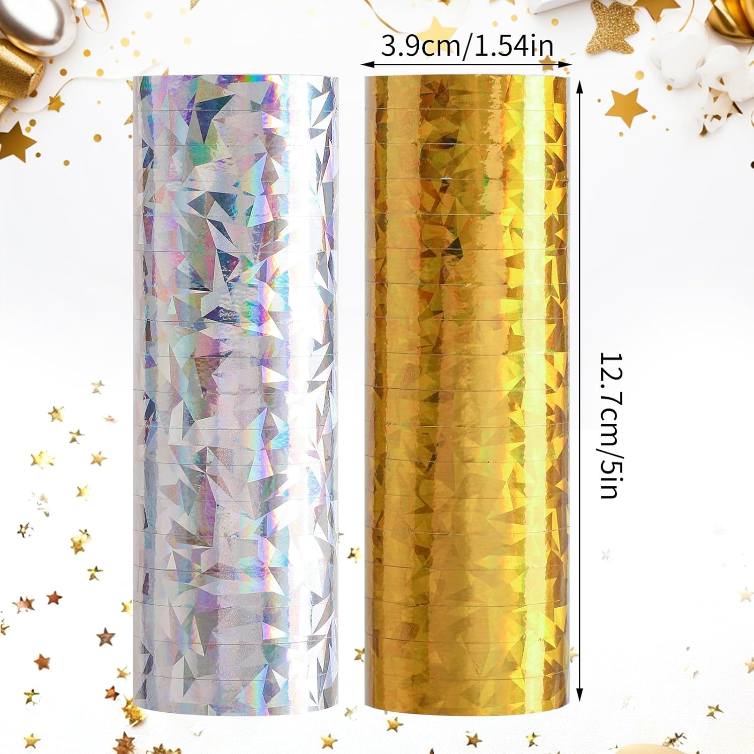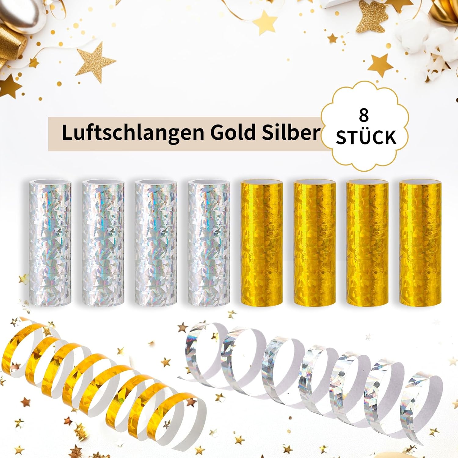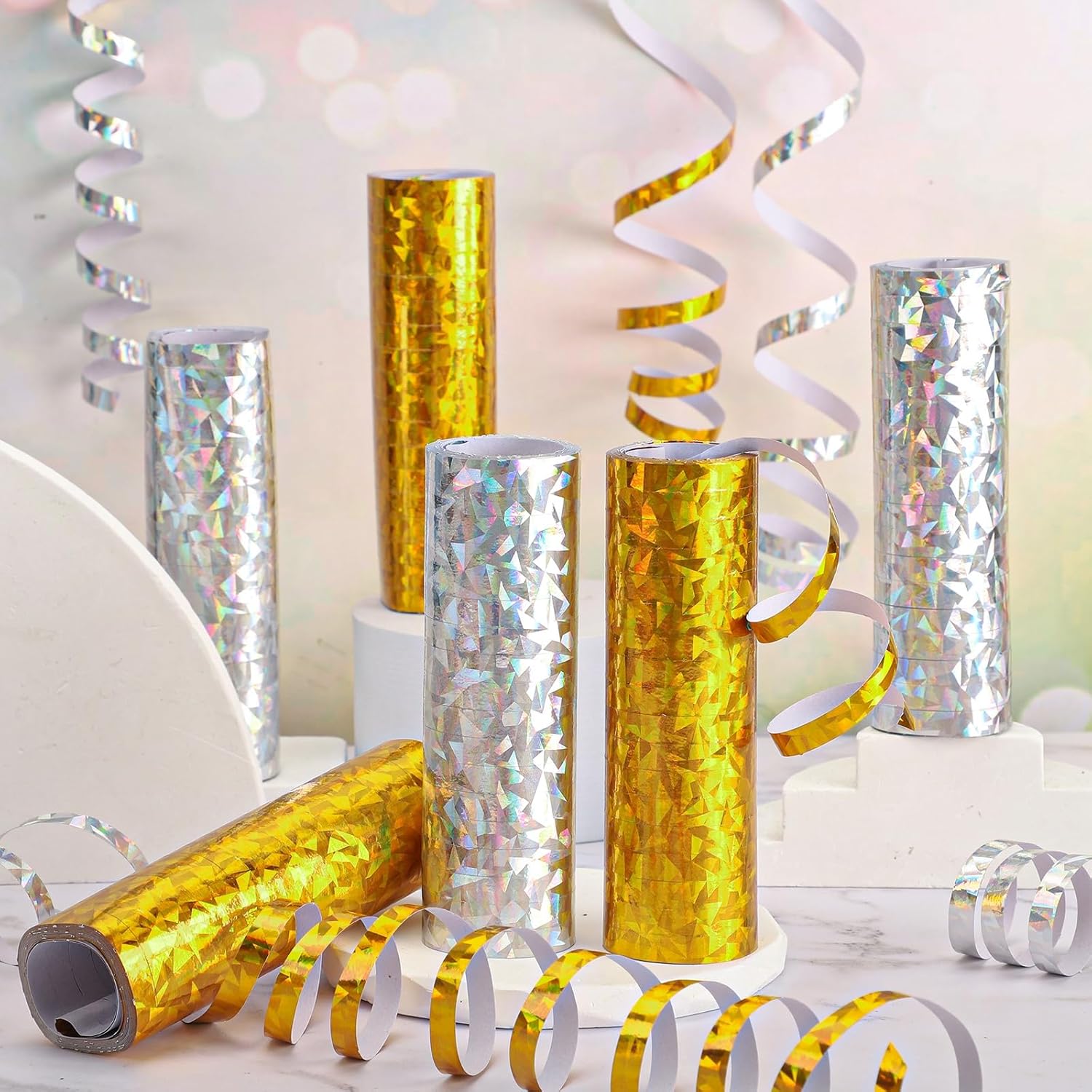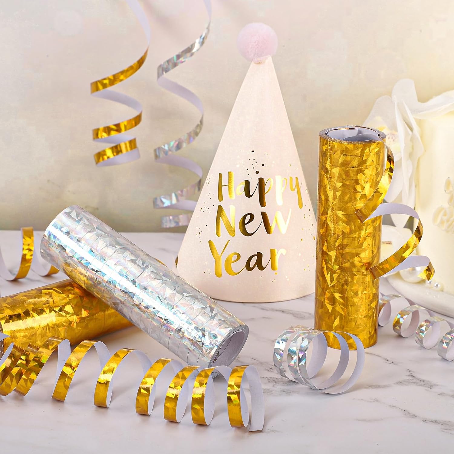 Set stelle filanti - Contiene 8 rotoli (ogni rotolo è composto da 18 rotoli singoli, rimuovili con attenzione durante l'uso!) per un totale di 144 nastri di coriandoli, disponibili in oro scintillante e argento brillante, fornendo la decorazione perfetta per la festa. VERSATILE - Le stelle filanti metalliche sono ideali per le decorazioni di Natale, Capodanno, carnevale, compleanni, matrimoni e feste a tema e donano loro una lucentezza speciale. FACILE DA USARE - Gli streamer sono facili da soffiare in aria e possono illuminare il luogo della tua festa in pochissimo tempo. Tuttavia, tieni presente che non si smonta facilmente. Pertanto, fare attenzione quando lo si utilizza. DECORAZIONE PERFETTA - Le stelle filanti in argento dorato possono essere utilizzate come coriandoli, confezioni regalo, ecc. Sono molto adatte per essere combinate con palloncini, ghirlande, decorazioni da tavola. COLORI METALLIZZATI GLITTER - Gli streamer glitter argento e oro sono radiosamente belli e possono creare un'atmosfera allegra che rende il tuo evento un momento clou assoluto. Avvertenza: non adatto a bambini di età inferiore a 3 anni in quanto esiste il rischio di soffocamento. I bambini devono utilizzare solo sotto la supervisione di un adulto.