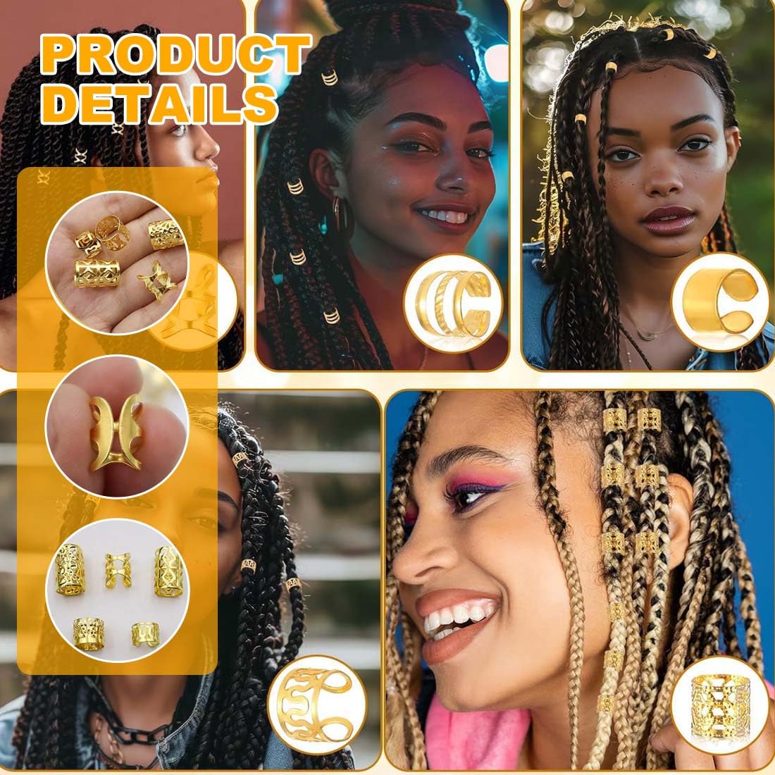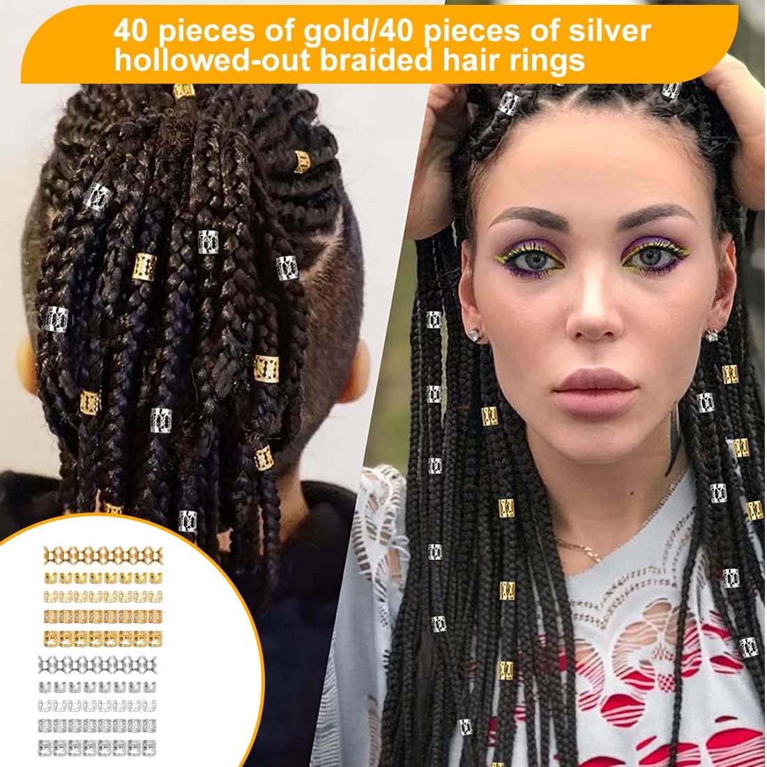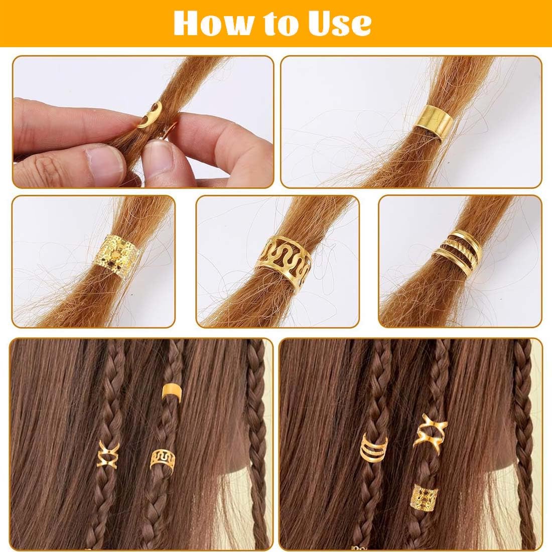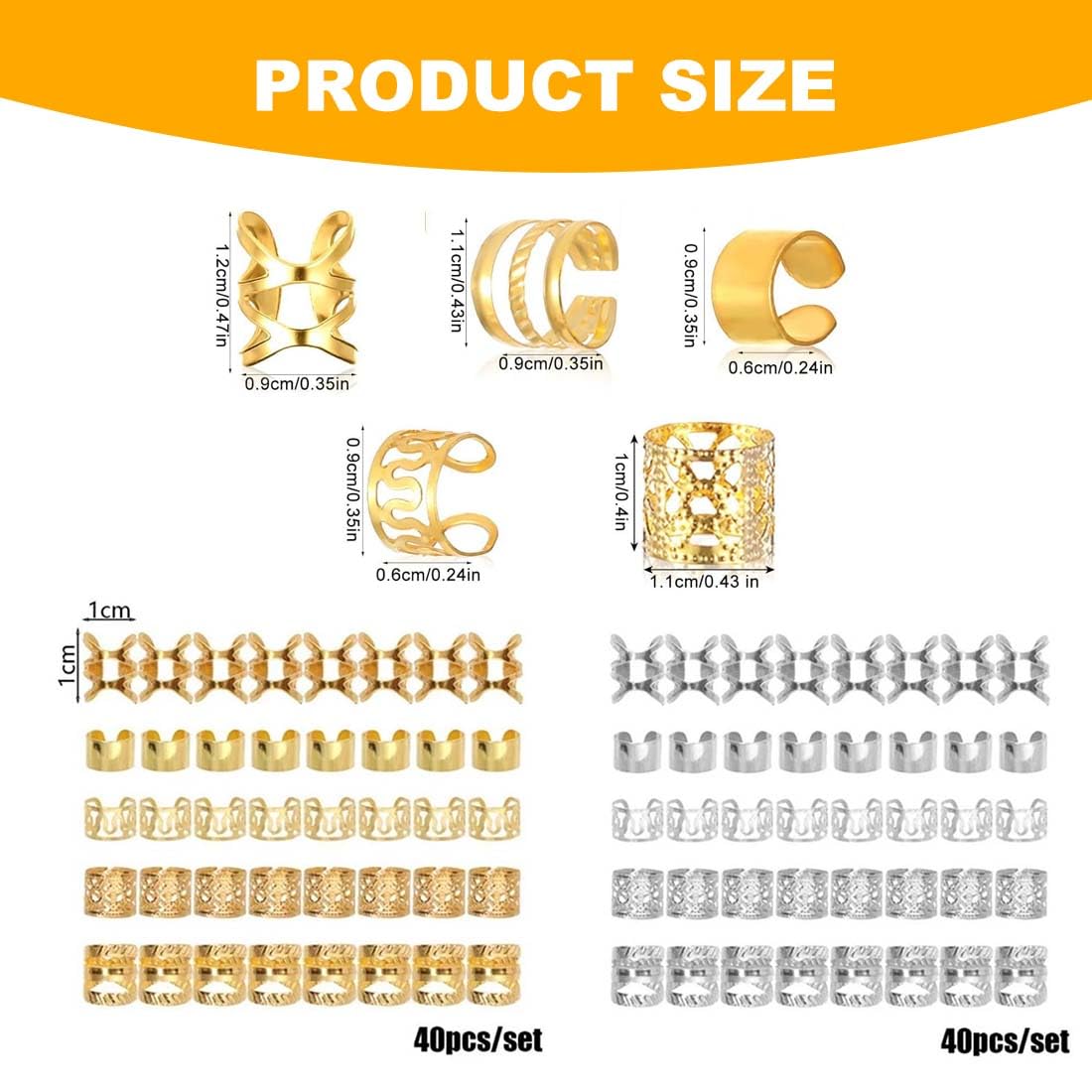 Accessori per capelli dorati: riceverai 80 pezzi in cinque diversi stili e dimensioni per soddisfare le tue esigenze. Gli accessori per capelli intrecciati sono perfetti per decorare extension e trecce, donandoti un bellissimo aspetto. Nota: gli accessori dorati per capelli non devono bagnarsi! Gli anelli dei capelli sbiadiscono quando sono bagnati. Pertanto, non indossarli durante il bagno o il lavaggio. Materiale di alta qualità: gli accessori per capelli da festival sono realizzati in metallo di alta qualità, robusto e durevole, non facile da rompere, comodo da indossare, delicato sui capelli e molto malleabile e robusto. Puoi regolare la dimensione delle perle intrecciate in base al volume e alle esigenze dei tuoi capelli. Ampia gamma di usi: con questi accessori per capelli da festival, non solo puoi creare una varietà di bellissime acconciature, ma anche usarle come collane, braccialetti, orecchini, oggetti artigianali, ecc. Gli anelli per capelli dorati sono adatti per varie feste, matrimoni, servizi fotografici, balli studenteschi, occasioni formali, lavoro, scuola e altre occasioni. Regali per le donne: questi accessori per festival sono adatti a tutti i tipi di acconciature e sono anche regali per donne, ragazze, fidanzate, madri, mogli, figlie e regali di Natale per le migliori amiche, regali di Natale per donne, regali di compleanno per donne, regali di Natale per amiche, regali di compleanno, regali per le migliori amiche e regali di anniversario. Facile da usare: questo accessorio per capelli dorato è flessibile e facile da usare e non danneggerà i tuoi capelli. Puoi prima intrecciare i capelli, quindi aprire il fermaglio per capelli e indossarlo tra i capelli, quindi chiudere l'apertura del fermaglio per capelli. Le perle per capelli dorate sono facili da indossare e da togliere.