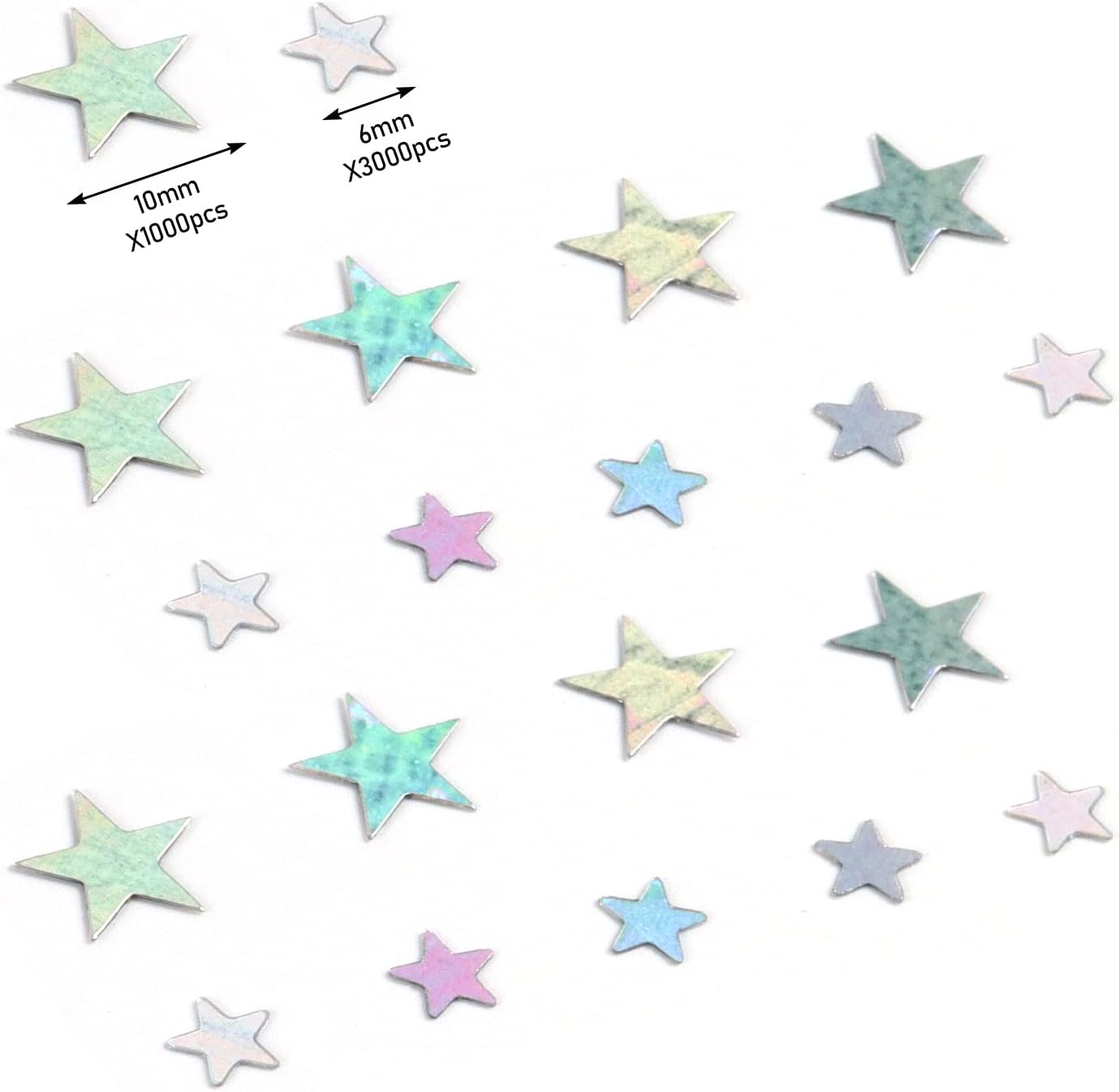 Colori unici: i nostri coriandoli sono disponibili in un mix di 3 colori, oro, nero e argento, acquista un set e riceverai 3 colori di coriandoli, ottimo rapporto qualità-prezzo. Se hai bisogno di decorazioni per la tavola, i nostri coriandoli sono un'ottima scelta. Materiale di alta qualità: i nostri coriandoli glitter sono tagliati in plastica robusta, hanno una superficie liscia e non si deformeranno dopo un lungo periodo di utilizzo. Rispetto al materiale cartaceo, i nostri coriandoli a stella sono impermeabili e riutilizzabili. Quantità abbondante: questi coriandoli oro nero argento sono disponibili nelle dimensioni 10 mm e 6 mm. Il set è composto da due pacchi di coriandoli da 10 mm con 2000 pezzi e due pacchi di coriandoli da 6 mm con 6000 pezzi, per un totale di 8000 pezzi, sufficienti per una festa in famiglia. Ampiamente usato: i nostri coriandoli possono essere inseriti negli inviti per decorare le tue lettere, usati nelle feste per lanciare foto in modo molto bello, usati nella tua scatola dei trucchi per decorare e riempire la tua scatola dei trucchi è molto di moda, usati per decorazioni artigianali è anche una scelta molto adatta. Regalo perfetto: queste decorazioni per la tavola di compleanno sono molto adatte per la famiglia e gli amici, una piccola confezione non occupa spazio, si può usare la busta sigillata, molto comoda. Per qualsiasi domanda sui coriandoli, lasciaci un messaggio, ti risponderemo entro 24 ore