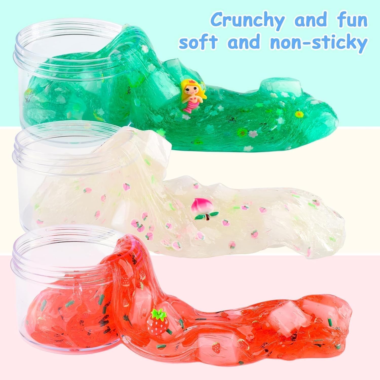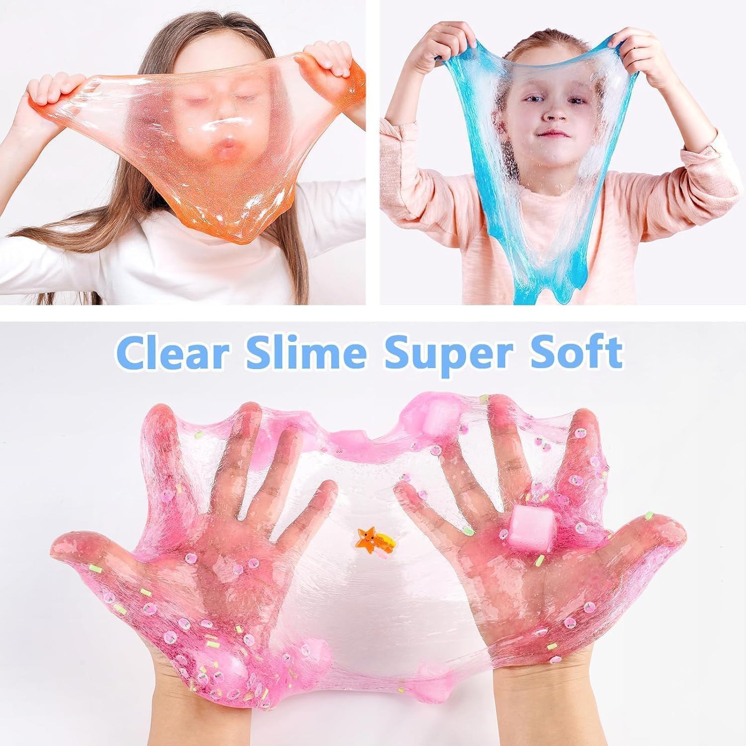 Il set di slime trasparente colorato contiene: rosso, blu, giallo, viola, verde, rosa, ecc., e ciondoli super carini Le feste di melma sono ideali per bambini di 6 7 8 9 10 11 12 anni e possiamo creare divertimento spremendo, allungando e tirando le melme L'aggiunta di melma di perline di gelatina crea una consistenza croccante soddisfacente per un'esperienza sensoriale unica, morbida, non appiccicosa ed eccellente stretching Lo slime può arricchire l'immaginazione e la creatività dei bambini, è il miglior regalo creativo per confezioni di riempimento pasquali, San Valentino, Natale, regali di compleanno, regali di festa, regali di classe La texture Slime Upgrade è super morbida, fresca, antiaderente, super liscia, incredibilmente soddisfacente e infinitamente divertente
