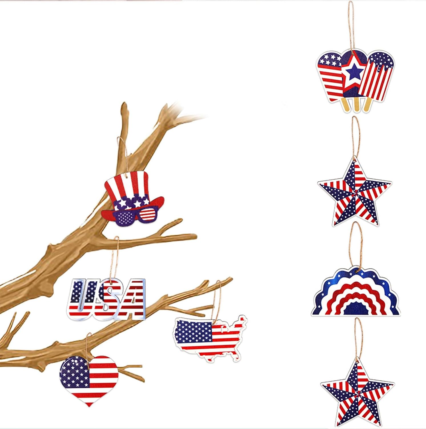 Ideale per chi ama la cultura, in particolare famiglie e organizzazioni che partecipano alla celebrazione del 4 luglio Realizzate con materiali, queste decorazioni sono facili da appendere e per un uso prolungato per decorazioni domestiche, allestimenti per feste, vetrine di negozi e feste all'aperto, aggiungendo un tocco di patriottismo a ogni occasione Festeggia il Giorno dell'Indipendenza con il nostro delicato ornamento a stella, per migliorare le atmosfere del festival e mostrare lo spirito patriottico Queste decorazioni da appendere sono per creare esperienze di vacanza, rendendole un'aggiunta essenziale alla tua collezione di forniture per feste