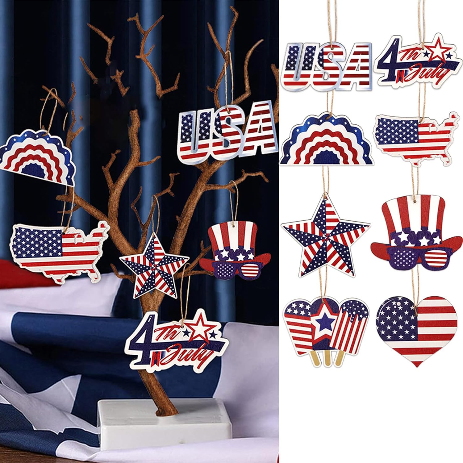 Realizzate con materiali, queste decorazioni sono facili da appendere e per un uso prolungato Festeggia il Giorno dell'Indipendenza con il nostro delicato ornamento a stella, per migliorare le atmosfere del festival e mostrare lo spirito patriottico Ideale per chi ama la cultura, in particolare famiglie e organizzazioni che partecipano alla celebrazione del 4 luglio per decorazioni domestiche, allestimenti per feste, vetrine di negozi e feste all'aperto, aggiungendo un tocco di patriottismo a ogni occasione Queste decorazioni da appendere sono per creare esperienze di vacanza, rendendole un'aggiunta essenziale alla tua collezione di forniture per feste