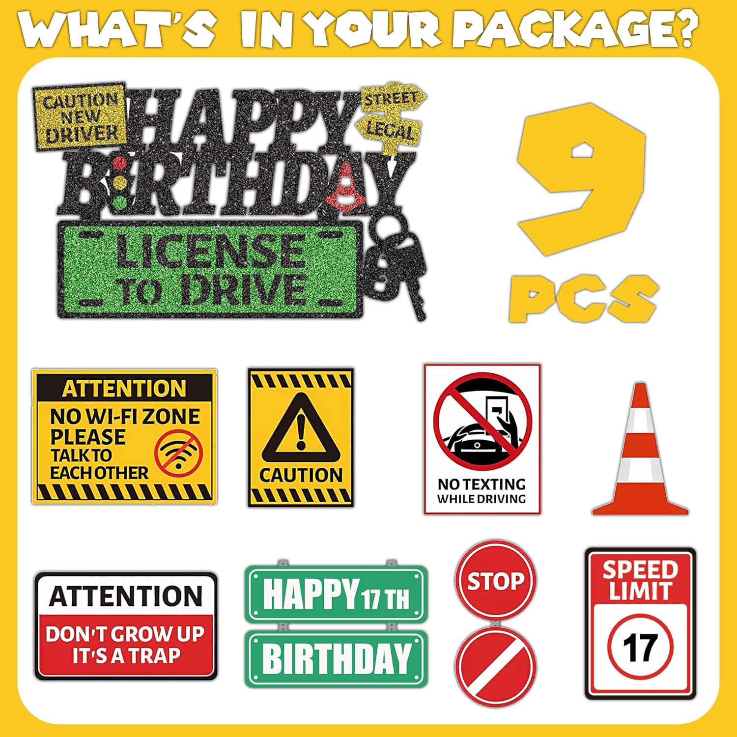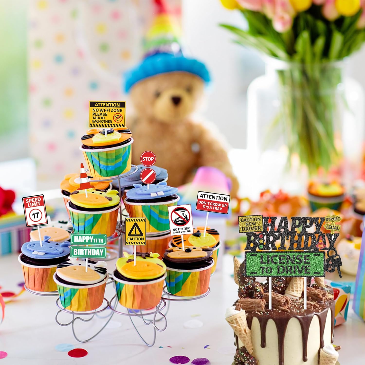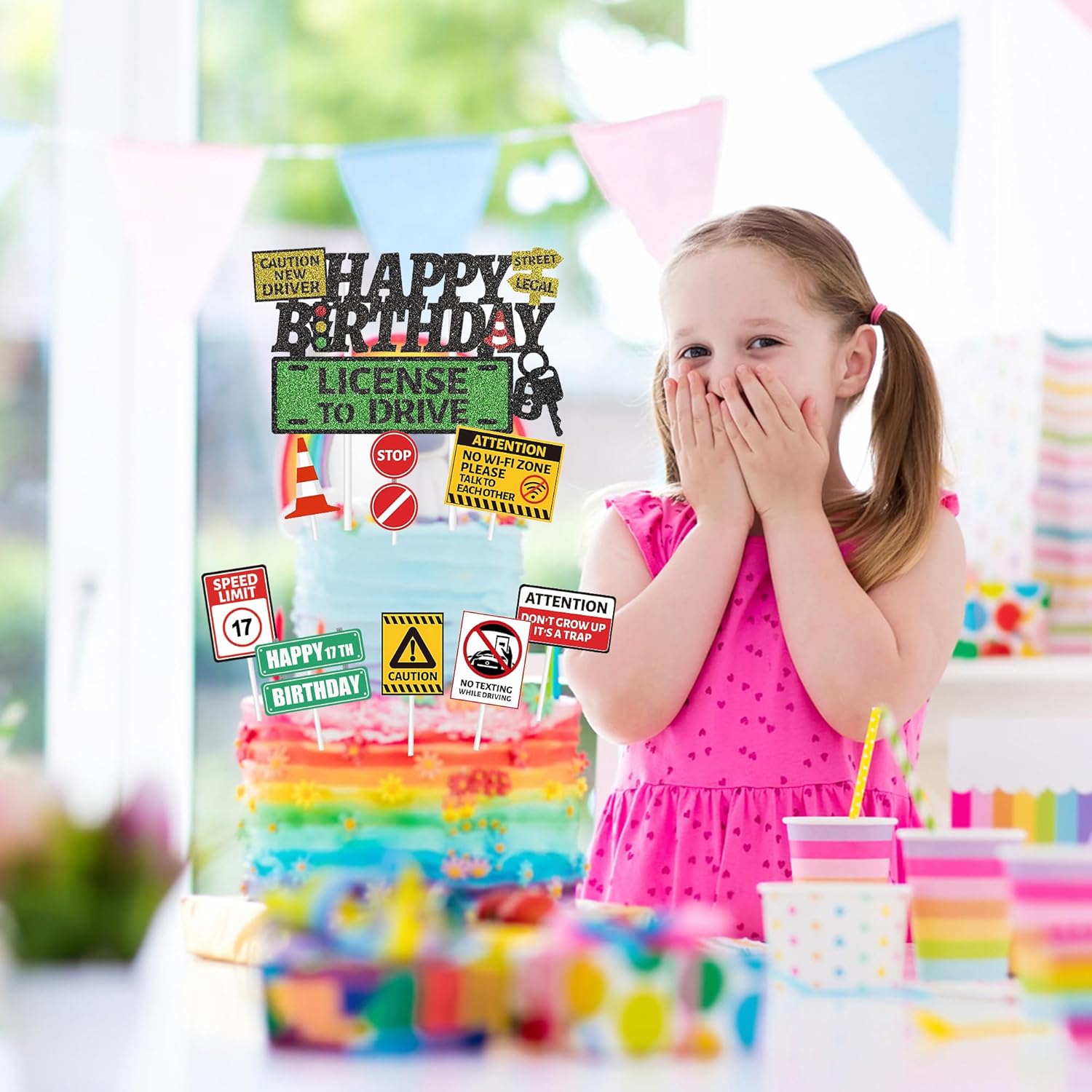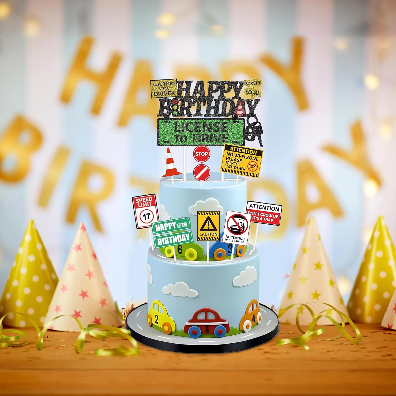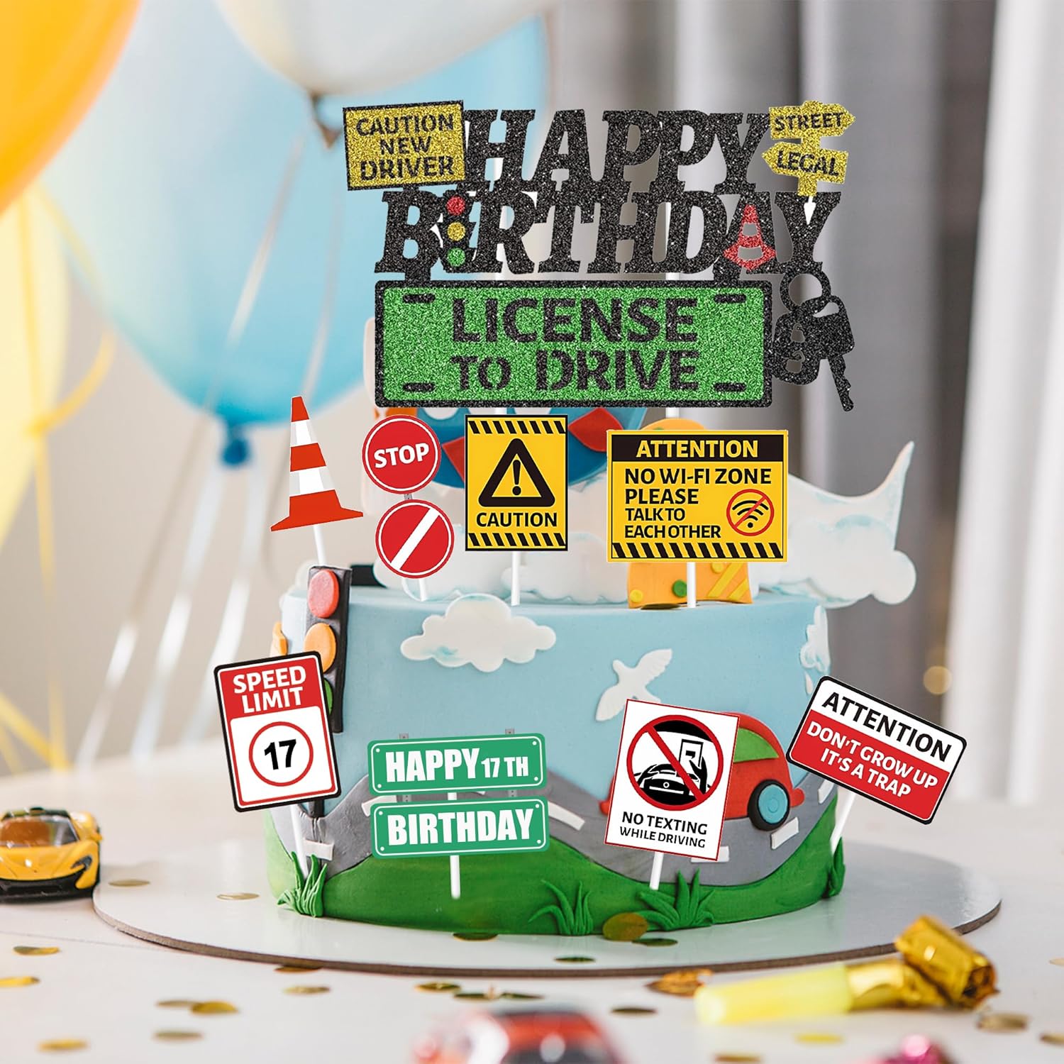 La confezione include: Questo topper per torta del 17° compleanno contiene 1 topper per torta Happy Birthday di grandi dimensioni e 8 toppers per torta di piccole dimensioni. Abbastanza per le decorazioni della tua nuova festa a tema conducente. ALTA QUALITÀ: il nuovo topper per torta di buon compleanno con patente di guida è realizzato digitalmente con carta glitterata, che è più dura della carta normale ed è chiaramente visibile e non si scheggia né si rompe. Forniture per feste di compleanno con patente di guida: i toppers per torta sono perfetti per decorare torte, dessert, biscotti, ciambelle e aggiungere un tocco di colore alla tua tavola. Può essere utilizzato anche per realizzare piccole porzioni di spiedini di frutta o anche direttamente sulla torta. Design raffinato: auto e segnali stradali prendono vita, facendoti sentire come se fossi al volante. È sicuramente un regalo perfetto per i nuovi guidatori e i giovani che hanno appena preso la patente per trascorrere un compleanno indimenticabile e godersi questo momento toccante insieme. Occasioni: il cake topper del nuovo conducente è perfetto per la festa di compleanno a tema del nuovo conducente e per la festa per il superamento del test della patente, adatto anche per adolescenti che hanno appena preso la patente o stanno per iniziare a imparare a guidare, adatto anche per decorazioni per il 17° compleanno dei ragazzi.