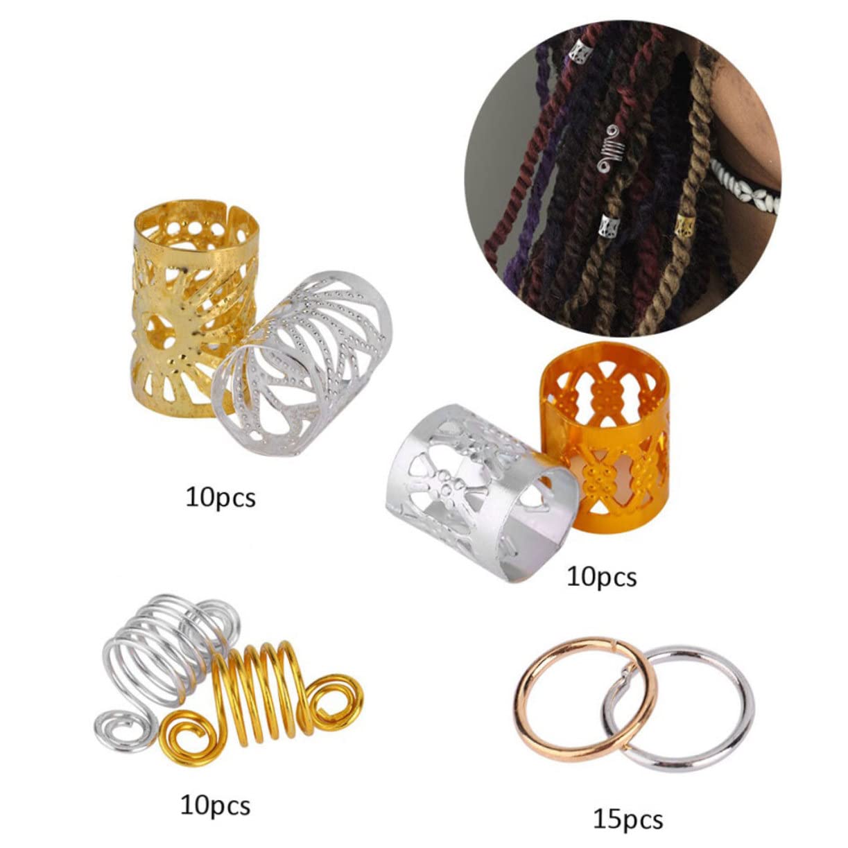 Ciondolo per capelli dreadlock: i polsini per dreadlock sono realizzati in metallo per resistenza e utilizzo, gioielli dreadlock per donna Perline con morsetto per dreadlock: intreccia o intreccia i capelli nello stile desiderato e decora i tuoi capelli con questi polsini per capelli per renderli belli e attraenti, accessori per capelli dreadlock accessori per capelli trecce: aspetto alla moda per apprezzamento e scopo pratico, polsini per dreadlock Strumento per intrecciare dreadlocks: il design cavo è più leggero e più decorativo, perline per capelli per dreadlocks accessori per ciondoli a treccia: pregevole fattura e dettagli aggiunti più moda e darti un nuovo look per i capelli, anelli per trecce di capelli