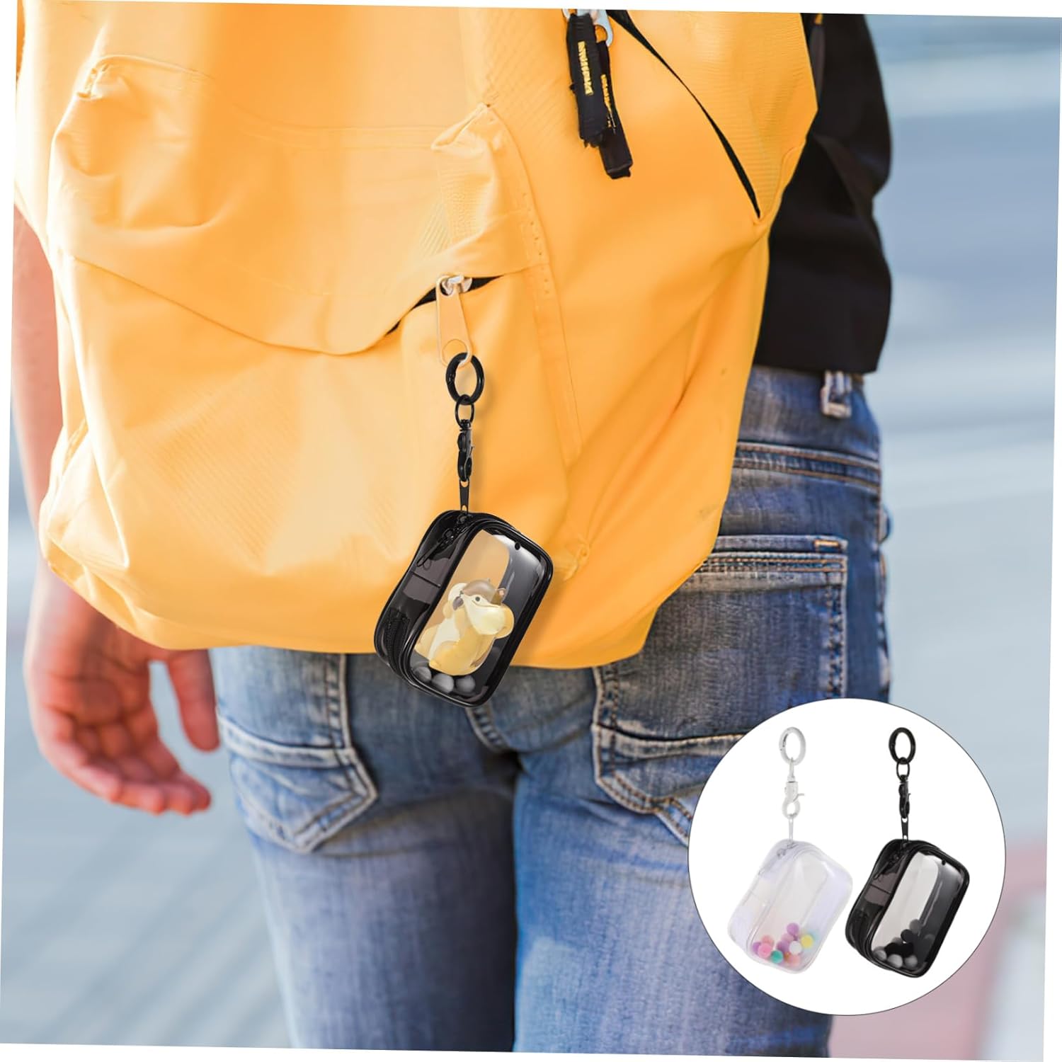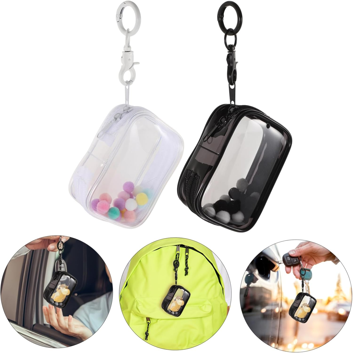 Mini borsa trasparente: la borsa da esposizione può proteggere i tuoi modelli, bambole o altri piccoli ornamenti da graffi e danni, borsa trasparente per portachiavi Borsa trasparente per figure: il contenitore da esposizione trasparente può contenere bambole action figure, è piccola e leggera, comoda da trasportare e presenta una borsa per figure con cerniera Pendente per borsa con pompon: la borsa trasparente per riporre le figure presenta un design liscio con cerniera, facile da aprire e chiudere, comoda da trasportare ed è una borsa trasparente per la borsa da esposizione trasparente: puoi riporre i tuoi piccoli modelli al suo interno e conservare questi contenitori per mantenere le tue collezioni in ordine, piccole e trasparenti borsa Borsa portachiavi trasparente per esporre figure: adatta per minifigure, bambole, figurine e altro, fornisce una protezione completa per le tue bambole preferite, mini custodia trasparente