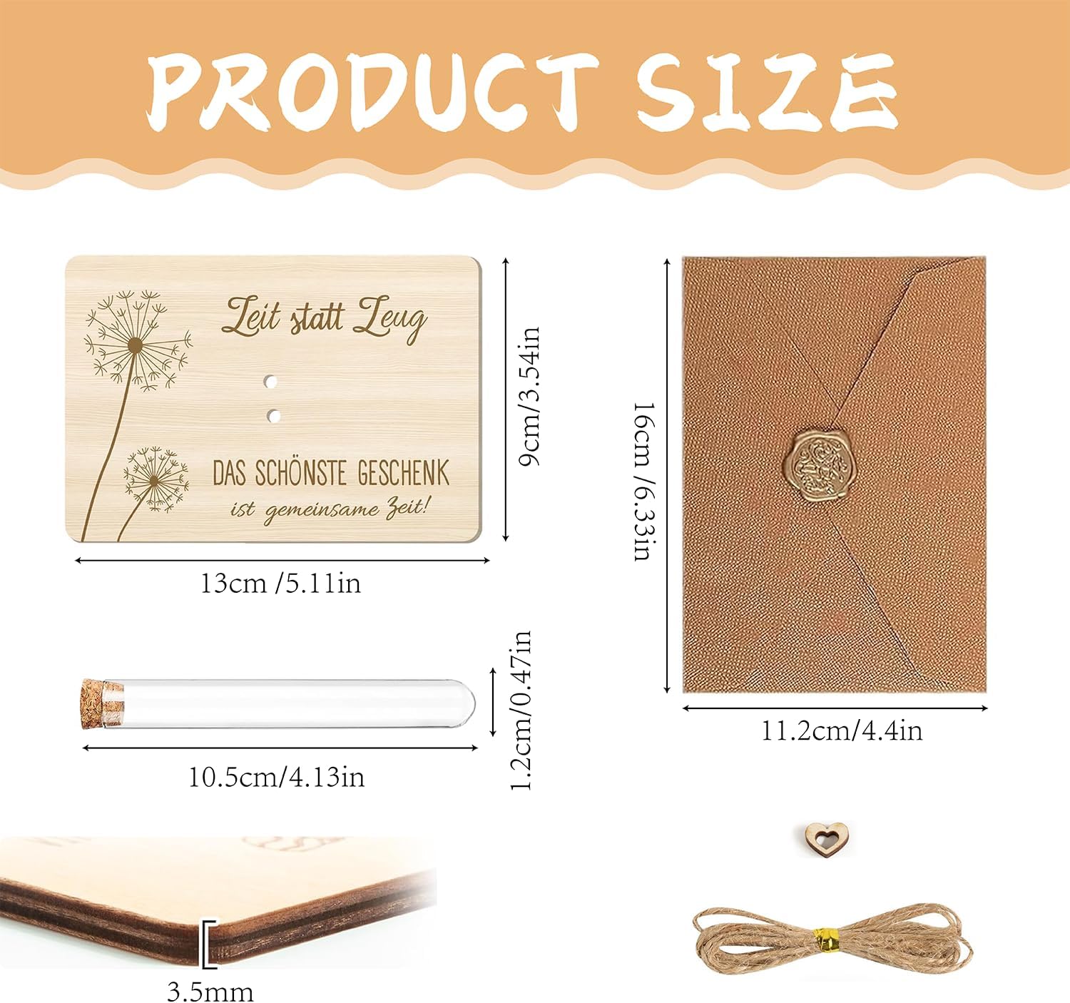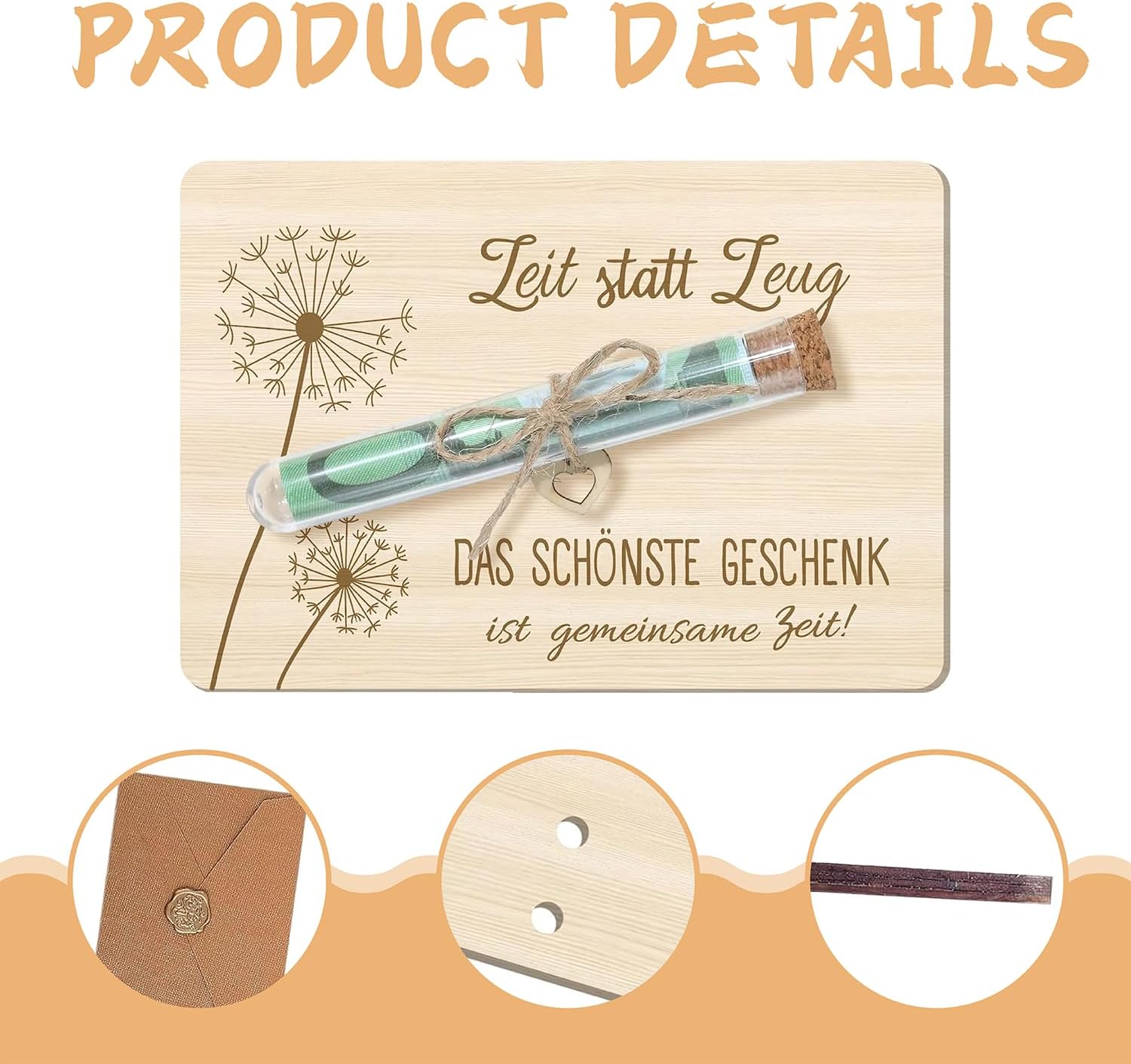 🌈【Design Raffinato】Divertenti regali in denaro in legno con provetta, puoi provare a mettere diverse banconote o buoni nelle provette, un design rituale che elimina l'imbarazzo di dare soldi direttamente e aggiunge un tocco di eleganza. Crea un ricordo indimenticabile per il destinatario. ⭐ 【Materiali di alta qualità】 I biglietti di auguri in legno del set regalo in denaro Jugendweihe sono tutti realizzati in legno di alta qualità con una superficie lucidata a mano, liscia e senza sbavature. La busta in carta kraft ha una trama fantastica e, insieme alla corda di canapa vintage, è più che adatta per sottolineare l'unicità e la gravità del regalo. ✅ 【Adatto a tutte le occasioni】 Regalo per chi realizza i desideri, puoi scrivere calorosi auguri sui biglietti di auguri in legno e regalarli alla tua famiglia e ai tuoi amici come regali di compleanno, consacrazione giovanile, cresima, regali di nozze, regali di Natale, regali di San Valentino e regali di anniversario, e guadagnerai sicuramente gli elogi di tutti. 🎁【Contenuto della confezione】Il set di regali per la consacrazione della gioventù per ragazzi e ragazze include biglietto di auguri in legno × 1, provetta trasparente × 1, busta × 1, spago × 1, ceralacca simulata × 1, mini motivo a cuore in legno x 1. 🍵【Servizio clienti di qualità】Se hai domande o suggerimenti su questo prodotto, puoi contattarci via e-mail in qualsiasi momento. Ti risponderemo al più presto possibile entro 24 ore. Per ulteriori opzioni regalo, decorazioni per la casa di tutti i giorni, gadget rilassanti per bambini/adulti, visita il negozio RHQFDM!