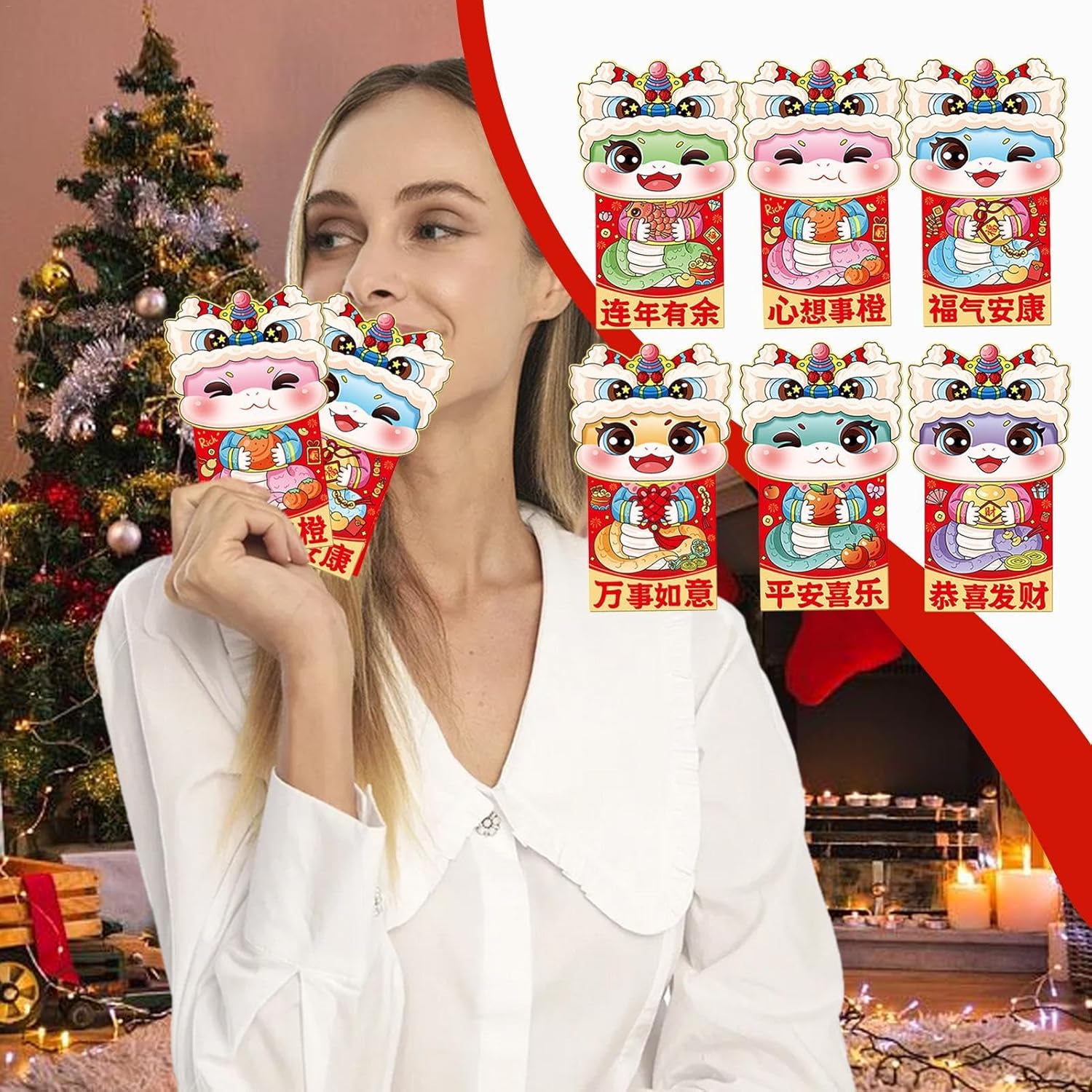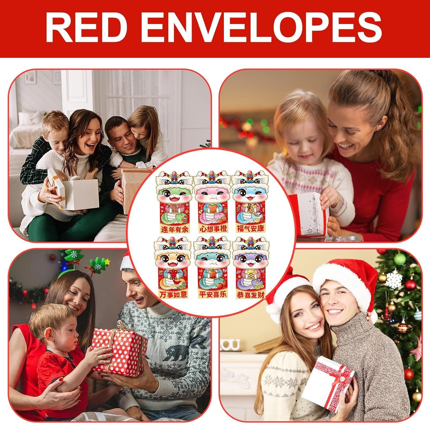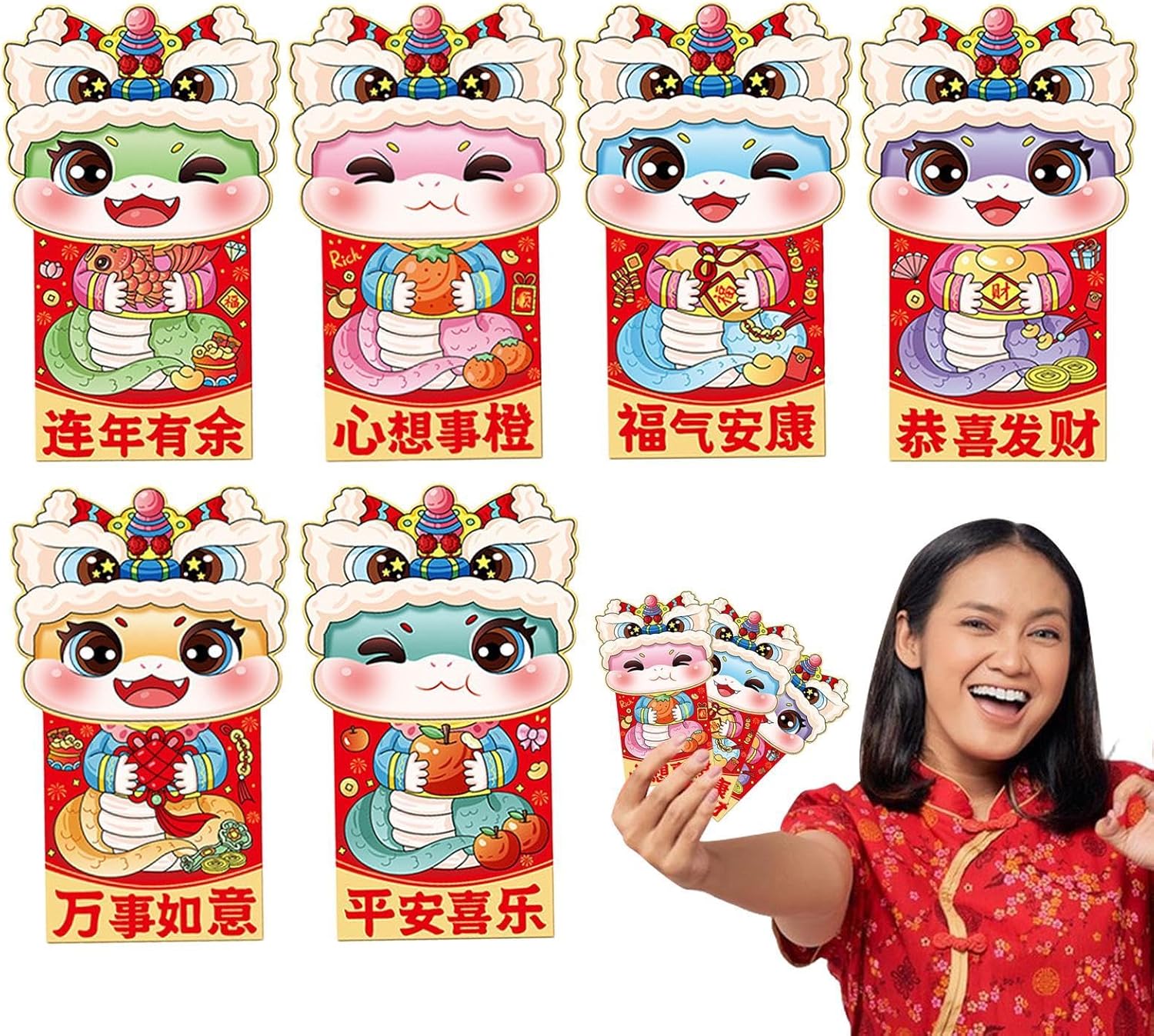Confezione rossa per l'anno del serpente – Busta rossa a forma di serpente, 6 pacchetti portafortuna per festa primaverile, buste per denaro 2025, buste rosse in carta, buste rosse di Hong Bao