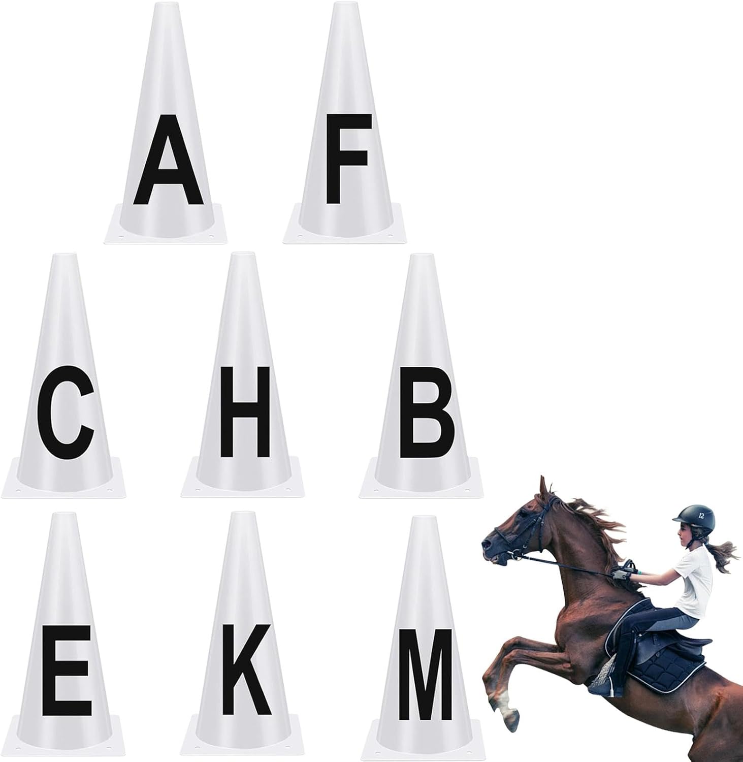 ➛Prestazioni versatili: migliora le tue abilità di dressage con il set completo di coni da dressage. Pratica una serie di mosse senza sforzo. Segna i confini della competizione con coni sufficienti per cavalieri e , ottenendo equilibrio e ritmo ottimali. ➛Costruzione robusta: i nostri coni da dressage sono realizzati con un robusto materiale in PVC che garantisce resistenza alla rottura e alla flessione. Inoltre, sono costruiti per resistere alle intemperie e all'usura, garantendo allenamenti sicuri e senza rischi. ➛Organizzazione migliorata: ideale per la funzionalità, questo set di coni da dressage è progettato all'altezza corretta per una facile lettura, garantendo che non occupi troppo spazio e consenta una facile visualizzazione senza distrazioni. ➛Facile da usare: facili da installare e posizionare a terra, questi coni da allenamento per dressage sono semplici e diretti, adatti alla maggior parte degli ambienti di guida, che tu sia un principiante o un professionista. ➛Multifunzioni: ottieni prestazioni costanti con i coni da dressage. Questi coni con lettere sono preziosi per coordinare i movimenti del cavallo e guidare i cavalieri durante l'allenamento o la competizione, perfezionando le tue abilità.