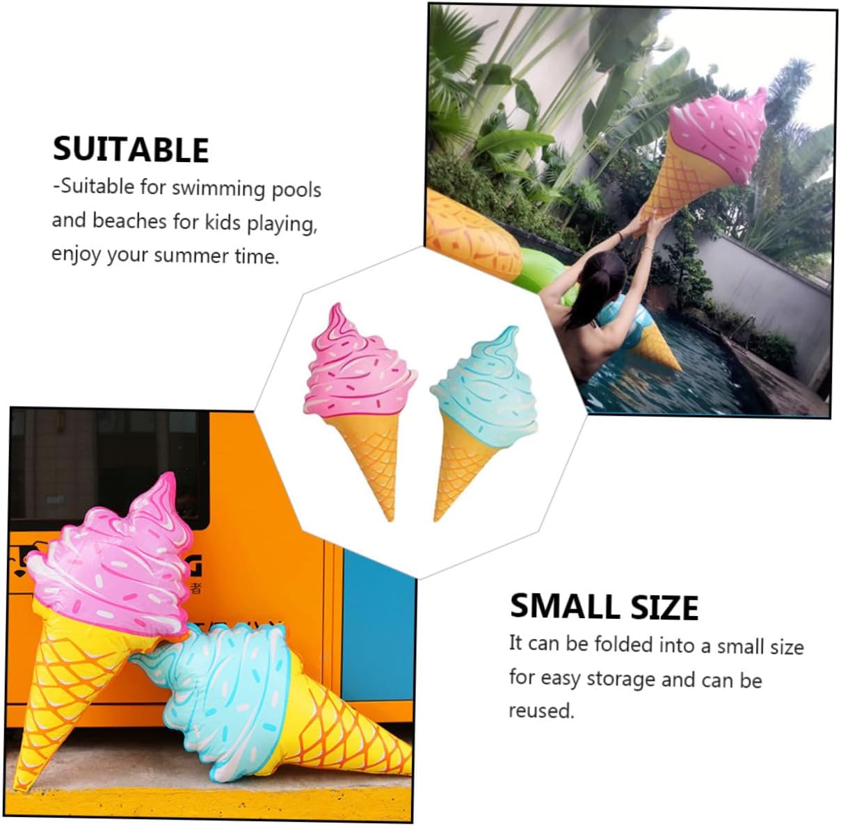 Gelato gonfiabile - non occupa molto dopo lo sgonfiaggio, puoi riporlo e trasportarlo facilmente, accessori per piscine galleggianti a file - il modello del gelato è bello e rinfrescante, pieno di materiale in PVC, ausili per il nuoto - puoi regalarlo alla tua famiglia e ai tuoi amici e goderti le vacanze con loro. Accessori fotografici per il nuoto in piscina - per adulti e adatti, adatti a tutti i tipi di persone, leggeri e facili da usare, nuovo gelato gonfiabile Gelato gonfiabile in PVC - è realizzato in materiale PVC, può essere utilizzato a lungo, coni gelato gonfiabili