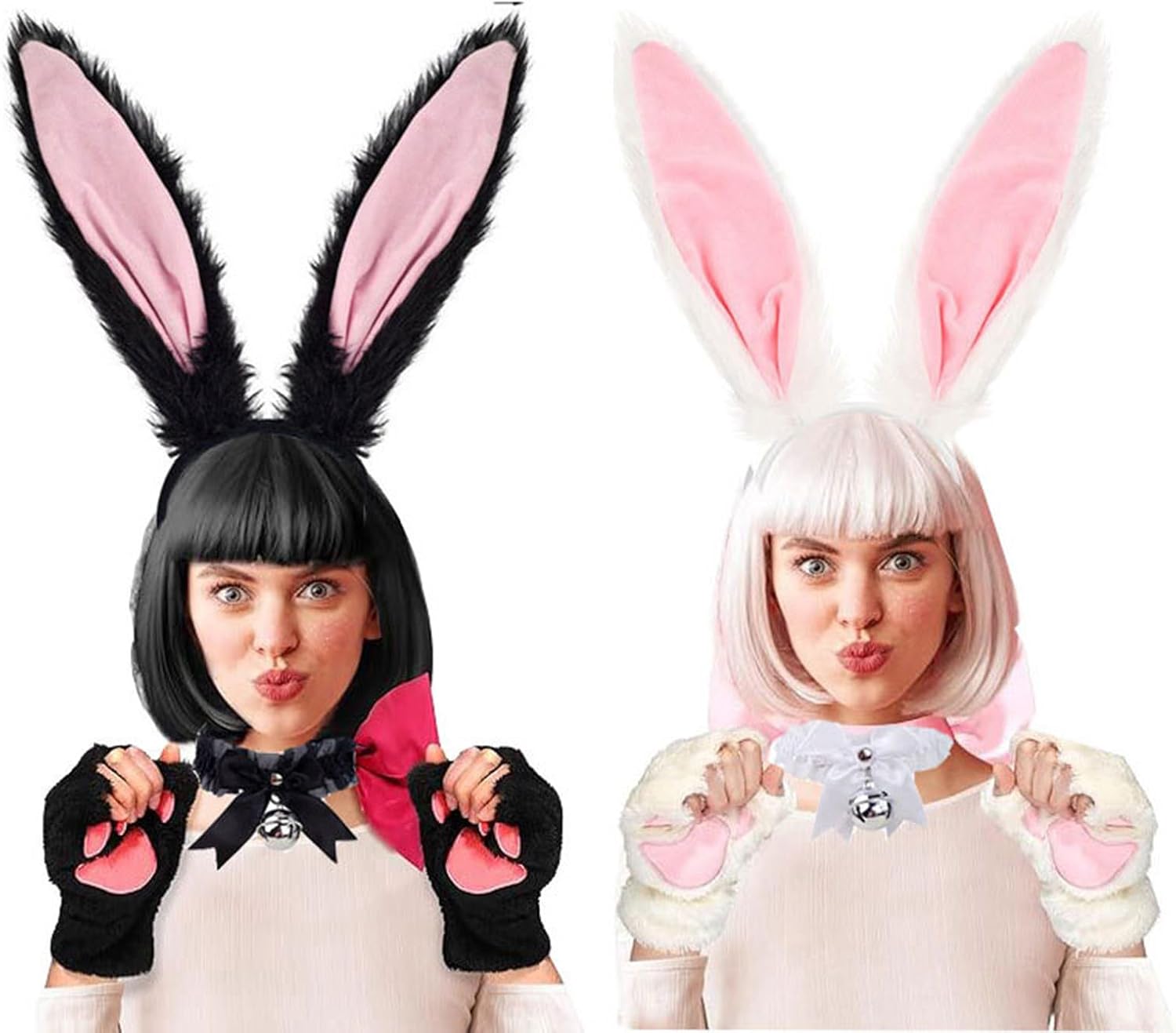Coniglietti pasquali Costume Set Donne Conigli Orecchie Fascia Collare Papillon Polsini Coniglietti Accessori Coda Per Halloween Party Costume Set Pasqua Coniglietti Animali Vestire Abiti