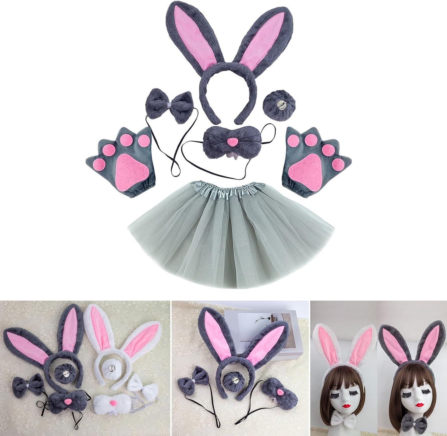 Coniglietti pasquali Costume Set Orecchie Coda Papillon Guanti Animale Fancy Costume Kit Accessori Per Bambini Halloween Cosplay Puntelli Caratteristiche: Kit per costume da coniglietti pasquali, questo kit di costumi da coniglietti pasquali 1 fascia per orecchie da coniglio, 1 coda di coniglio, 1 papillon, 1 paio di guanti, 1 gonna tutù, 1 pezzo naso diverso pacchetto include cose diverse, si prega di confermare le vostre esigenze prima di ordinare, coniglietti accessori per costumi fantasia per soddisfare le esigenze cosplay del vostro bambino. Vesti in breve tempo, questo set di coniglietti è molto comodo da indossare e molto da indossare e togliere, ti consente di vestire facilmente e rapidamente il tuo bambino Taglia adatta alla maggior parte delle dimensioni, adatta per bambini e adulti. Simpatico kit per costumi, questi accessori per costumi sono belli per feste in maschera, Halloween, Natale, feste a tema di compleanno, spettacoli scolastici, cosplay e molto altro ancora, portano al tuo bambino un look bello e attraente. Comodo da indossare set di costumi fantasiosi realizzato in tessuto, è delicato sulla pelle e comodo da indossare, dona al tuo bambino un bel indossare Specifiche tecniche: tessuto. Nastro 1 2 3 4 5 Colore Bianco Grigio La confezione include: 1 set di oggetti di scena per cosplay a forma Nota: Considerare un margine di errore di 1-2 cm dovuto alla misurazione manuale. A causa della differenza tra i diversi monitor, l'immagine potrebbe non rispecchiare il colore reale dell'articolo.