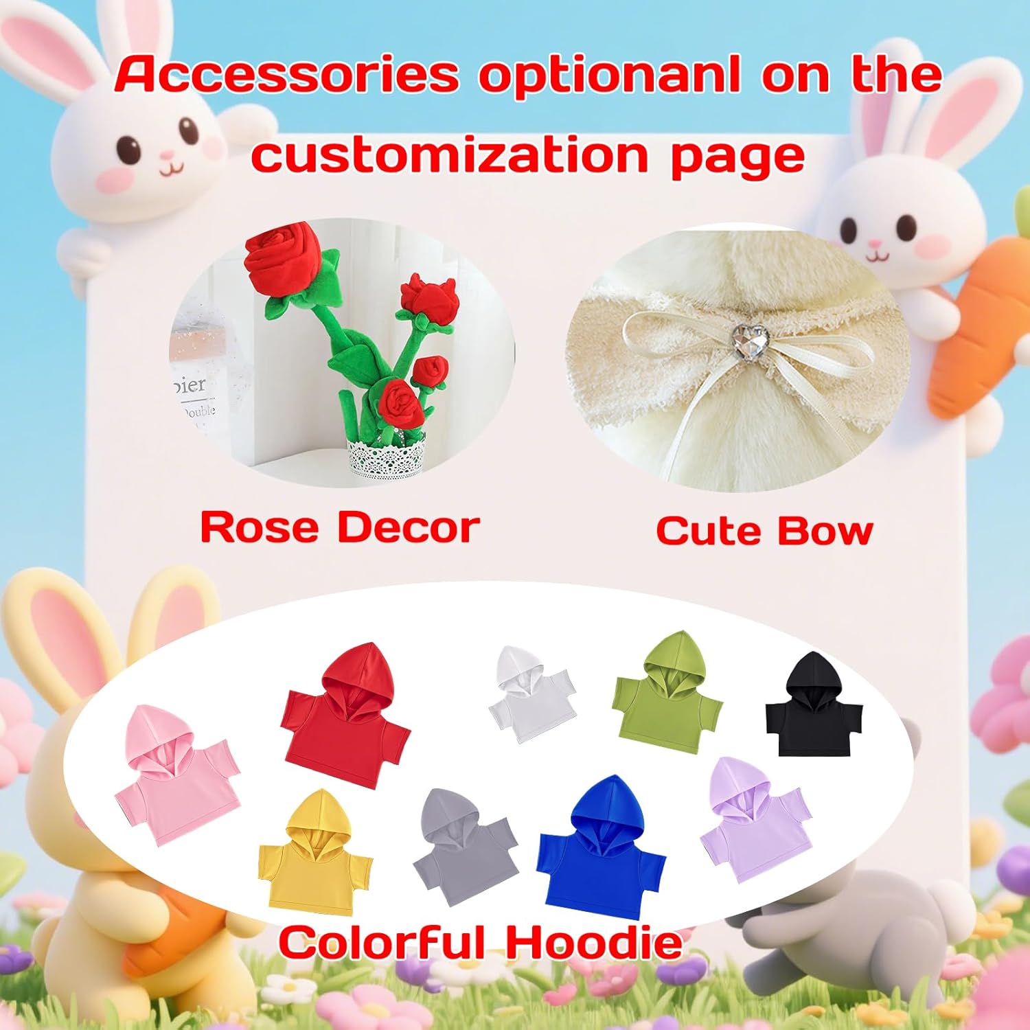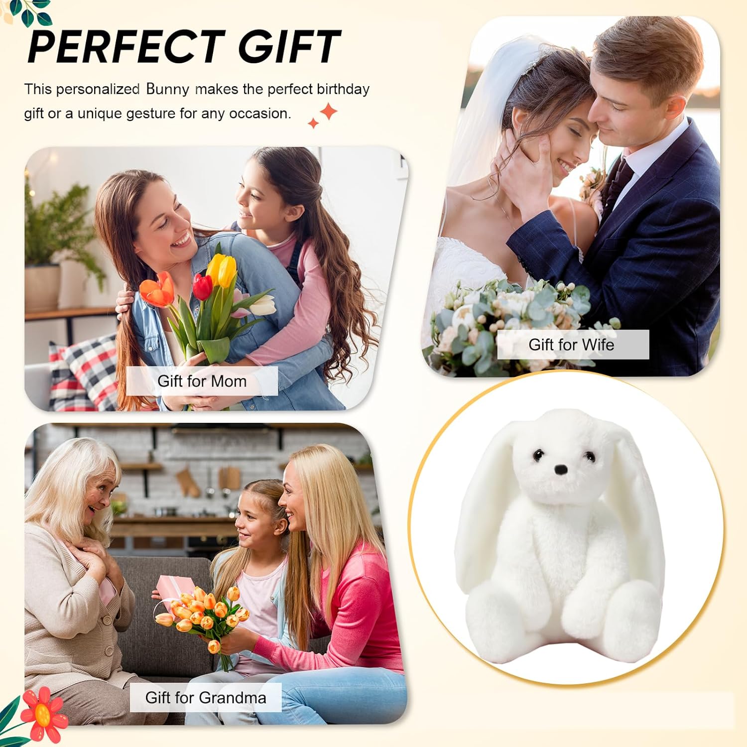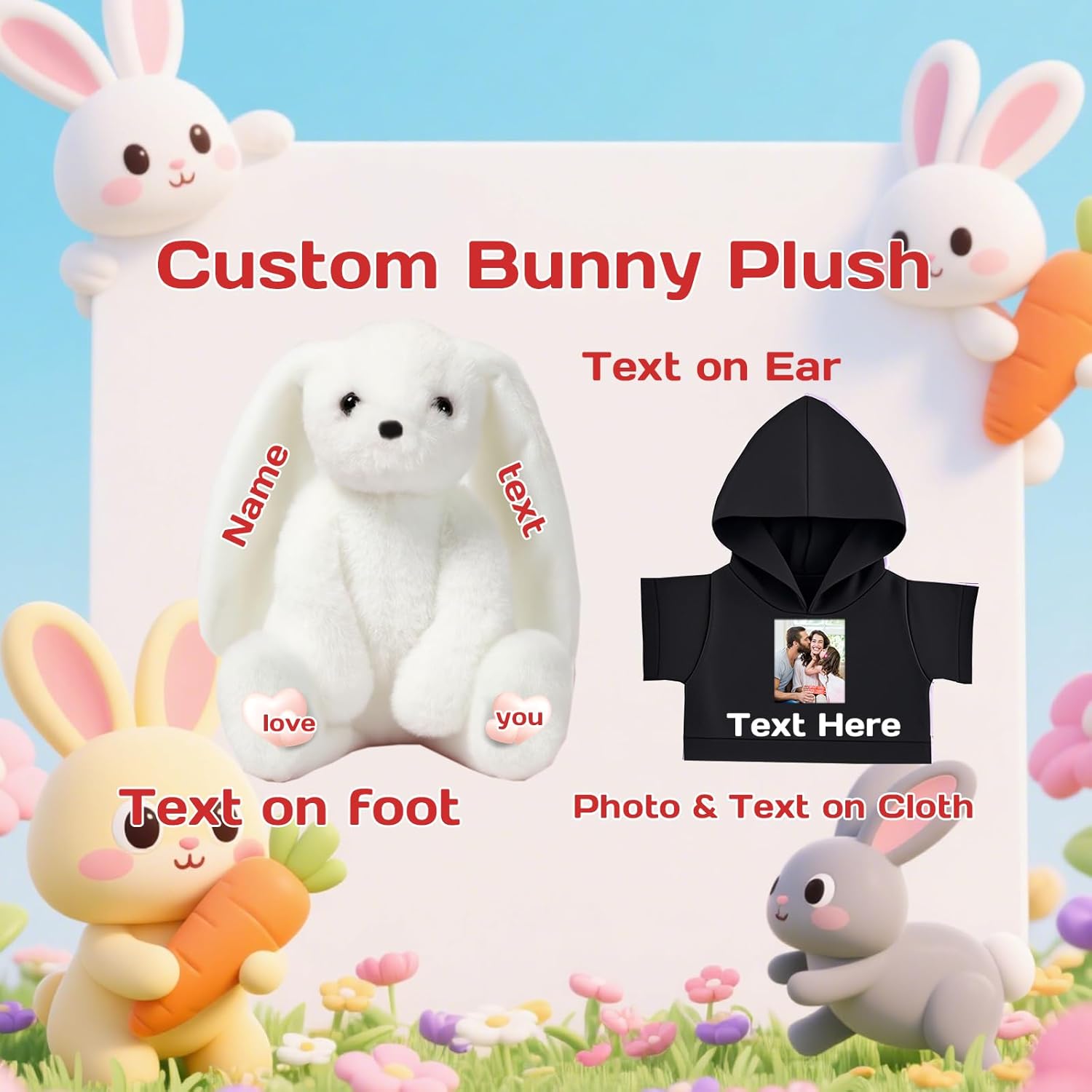 Coniglietto di Peluche Personalizzato, Custom Bunny Plush con Foto Testo come Coniglio Orecchio Lungo Personalizzato per Regalo Bambino, Regali di Compleanno per Bambini Adulti, 26 cm