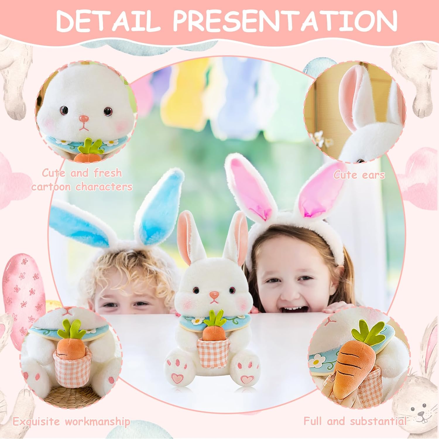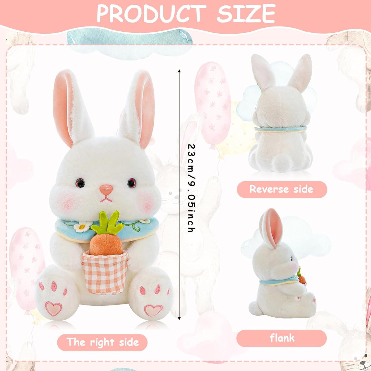 🐰Il nostro peluche coniglietto pasquale è realizzato in morbido materiale di peluche ed è riempito con cotone PP di alta qualità all'interno. Il peluche del coniglio lungo e soffice è delicato sulla pelle e ultra setoso. 🐰Questo peluche di coniglio è disponibile nelle dimensioni di 23 cm e colpisce per le sue grandi orecchie soffici e il suo aspetto affascinante. La forma del peluche del coniglio è molto interessante e carina, adatta a bambini e bambine di tutte le età. 🐰 Cercate un regalo speciale? Questo simpatico coniglietto è un regalo di Pasqua ideale, questo peluche porterà gioia e felicità nel cuore di chi lo riceve. Perfetto per bambini e adulti in cerca di un tenero peluche. 🐰 Non solo adatto come peluche, ma anche come ornamento decorativo per il letto, il divano o la mensola. Potete metterlo nel vostro cestino di Pasqua o decorare la scena della festa, la vostra casa o la stanza dei bambini! A Natale, Pasqua, San Valentino, Halloween, feste di compleanno, è un buon regalo per innamorati, bambini e amici. ✅【Customer Care】La soddisfazione del cliente è la nostra massima priorità. I nostri peluche sono tutti confezionati sottovuoto.Se ci sono problemi con la qualità del prodotto come la separazione, le macchie e i danni all'imballaggio dopo aver ricevuto la merce, non esitate a contattarci. Vi daremo una risposta soddisfacente.
