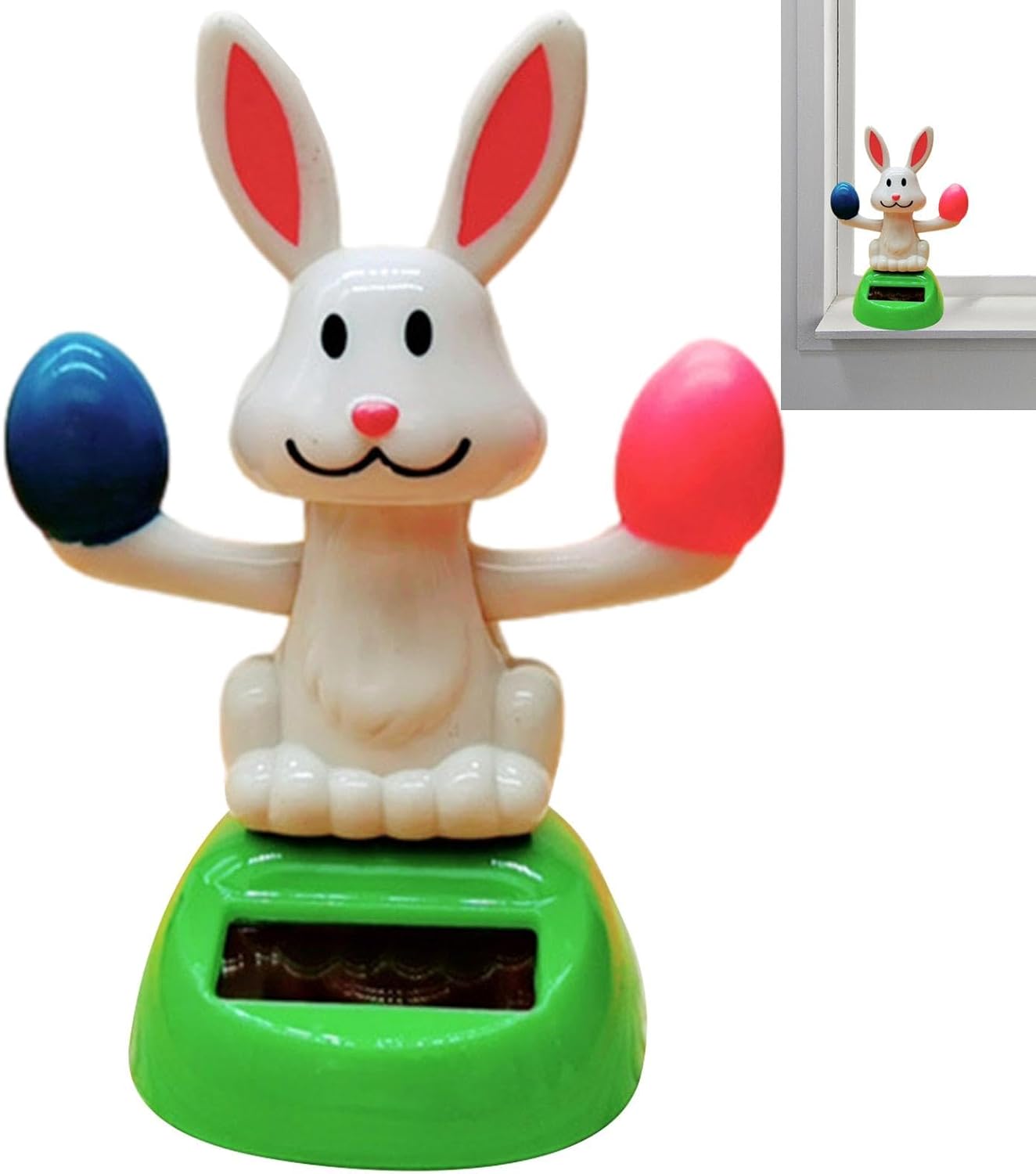 Divertimento solare piacevole: migliora il tuo divertimento con questo coniglio danzante solare che si muove senza sforzo e automaticamente. È alimentato da energia solare, rendendolo un giocattolo a risparmio energetico che converte l'energia luminosa in energia. Stile di coniglio interessante: aggiungi un tocco di fascino al tuo veicolo con il nostro simpatico coniglio danzante a forma di coniglio. Trasforma la guida in un'esperienza deliziosa che sicuramente metterà un sorriso sul tuo viso. Facile da trasportare: questo coniglio danzante solare è facile da riporre e non occupa molto spazio sulla scrivania o sul cruscotto, grazie al suo corpo piccolo e leggero. Multifunzione: lascia che questo coniglio danzante solare porti un tocco giocoso al tuo spazio. I suoi simpatici movimenti lo rendono un complemento perfetto per la tua scrivania, interni dell'auto o decorazione della casa. Divertente: questo coniglio danzante solare illuminerà qualsiasi festa di Natale o festa di compleanno con i suoi movimenti allegri e il suo design adorabile. È perfetto per la famiglia, gli amici e i parenti che amano i giocattoli carini.