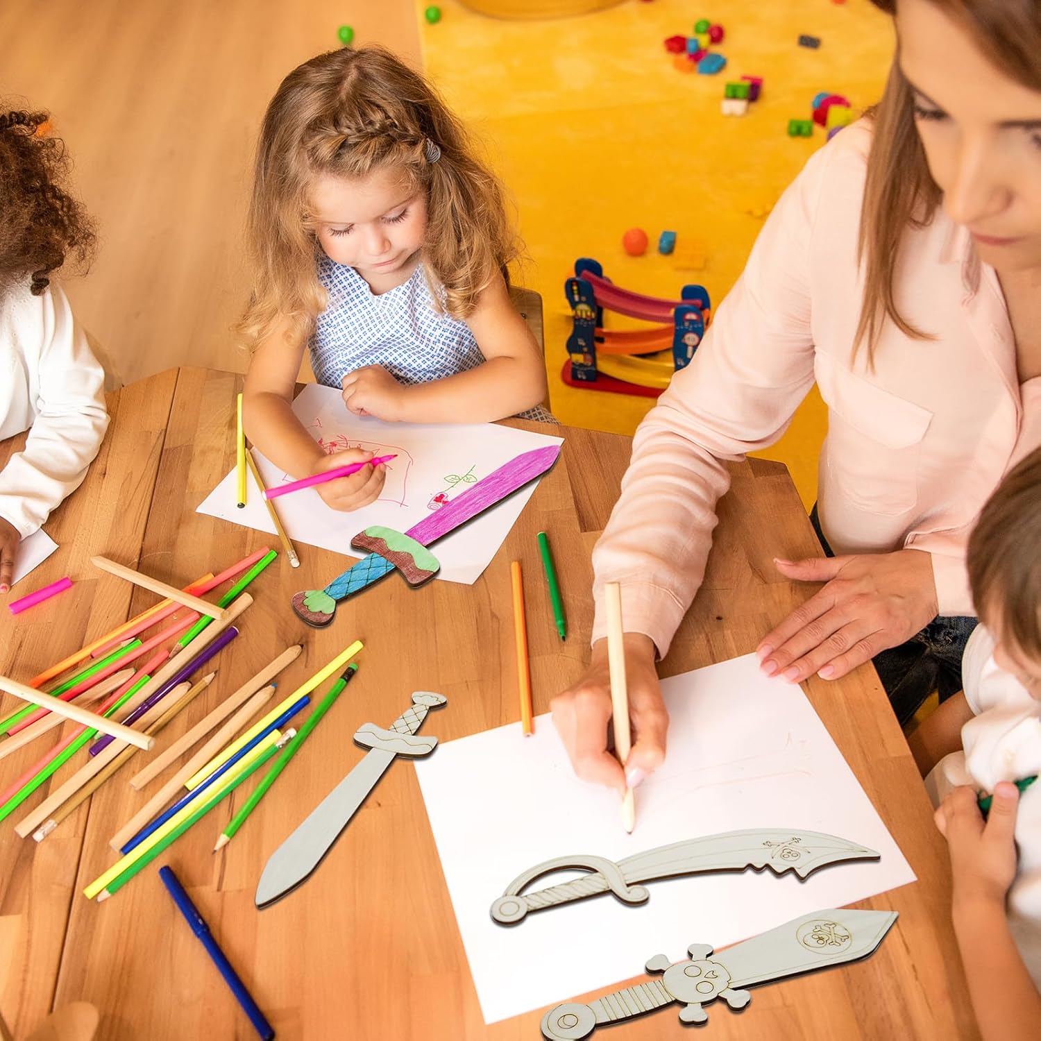 【La Confezione Include】: Questo set creativo include 8 Spade Pirata in Legno con 6 design diversi (30 cm di lunghezza, 6 mm di spessore) e 12 penne colorate. Queste pirata spada in Legno con finitura naturale sono perfette per il Pirate Sword per la pittura e laboratori creativi. Ideale per sviluppare manualità e fantasia! 【Materiali Alta Qualità】: Questo nostro pirate sword decorazione in legno è realizzato in legno di alta qualità. La resistente struttura in legno garantisce durata nel tempo, und superficie liscia e priva di bave, perfetta per il Crafting con Legno per Bambini. 【Attività DIY divertente】: Questo Legno Pirate Sword Craft permette di creare design personalizzati. I bambini possono dipingere motivi tradizionali o dare sfogo alla fantasia con colori vivaci. Un'attività coinvolgente per tutte le età! 【Sviluppa la creatività】: Decorando queste spade con il Pirate Sword Decorazione in Legno, i bambini migliorano coordinazione e senso artistico. Ogni spada diventa il protagonista di avventure piratesche immaginarie. Ottimo strumento educativo. 【Multiuso】: Perfette per feste a tema, progetti didattici, decorazione artigianale fai da te, Natale regalo, feste di compleanno, decorazione domestica o come regalo creativo. Queste spade sono ideali anche per travestimenti e decorazioni. Un gioco versatile che unisce apprendimento e divertimento!