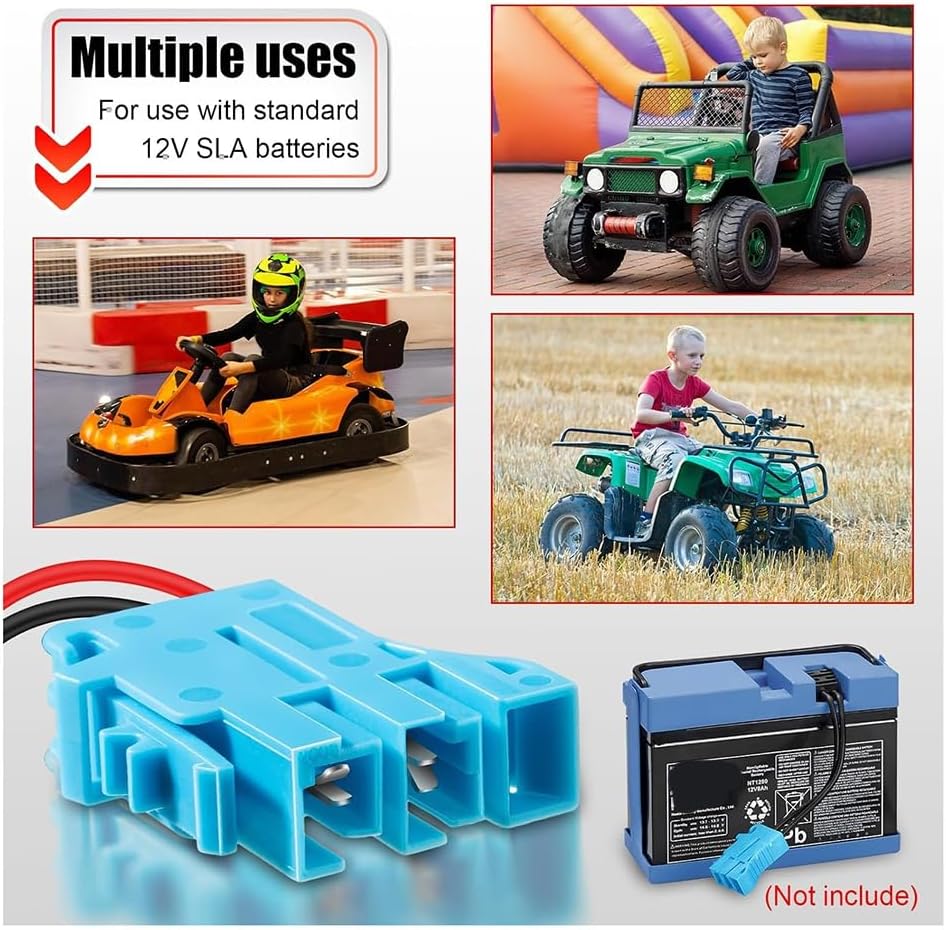 Elevata compatibilità e prestazioni: questo connettore di cablaggio di alta qualità progettato per una compatibilità con i giocattoli da cavalcare con batterie Peg-Perego da 12 V e facilita anche l'aggiornamento di altre batterie, incluso il passaggio alle batterie al litio. Il suo design universale garantisce un'ampia applicazione e funzionalità migliorate. Funzionalità di sicurezza migliorate Dotato di fili di rame spessi da 12 AWG e tre fusibili 40A, questo connettore offre una migliore conduttività e garantisce un funzionamento sicuro, consentendo un flusso di corrente significativo e protegge da correnti transitorie eccessive. Fusibili facilmente sostituibili garantiscono e integrità del dispositivo. Costruzione robusta e affidabile: questo connettore per cablaggio realizzato in plastica resistente è leggero, antiurto, resistente all'umidità e alla corrosione. Include anche un portafusibili per tre fusibili che offre un metodo di connessione veloce e sicuro. Installazione semplificata: questo connettore per cablaggio presenta una compatta a due ed è progettato per un'installazione rapida e semplicissima, aumentando notevolmente la tua efficienza. Consente di configurare e sostituire rapidamente e permette di ricaricare il vostro giocattolo in pochi secondi, in modo da poterli godere a lungo.