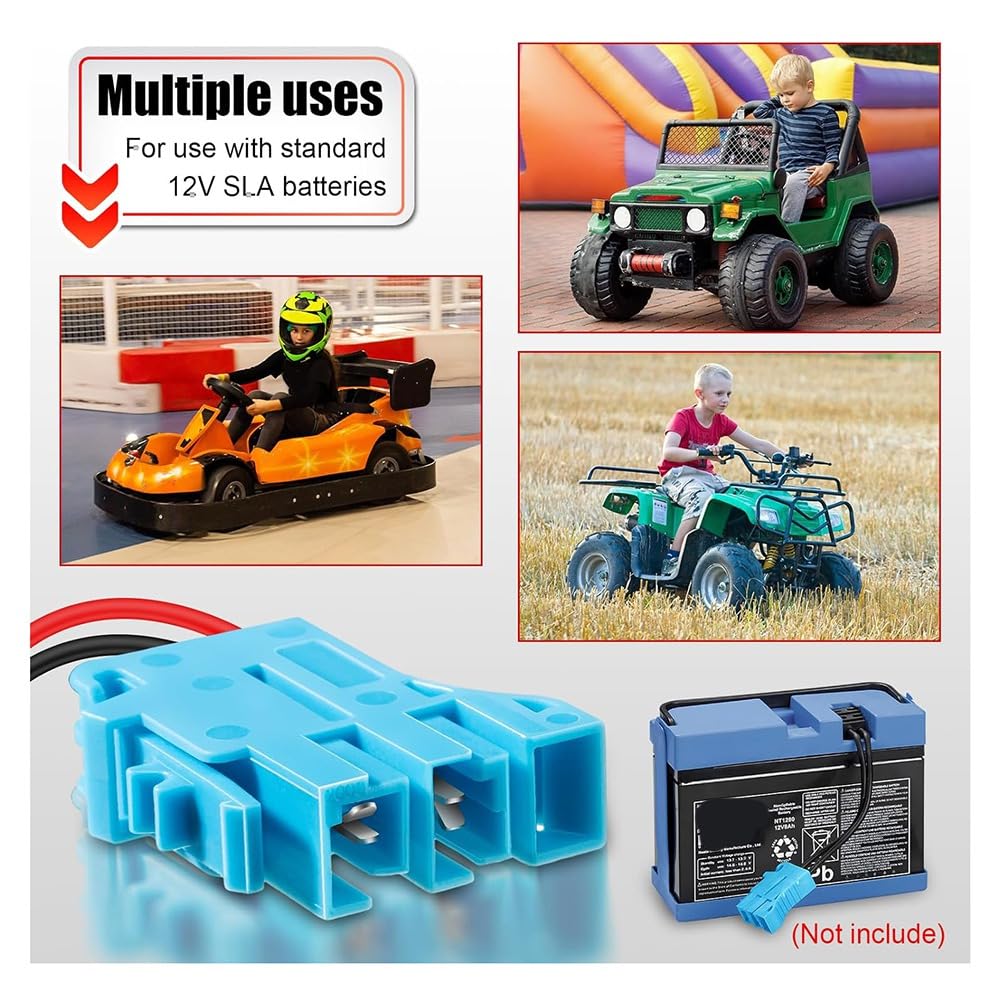 Costruzione robusta e affidabile: questo connettore per cablaggio realizzato in plastica resistente è leggero, antiurto, resistente all'umidità e alla corrosione. Include anche un portafusibili per tre fusibili che offre un metodo di connessione veloce e sicuro. Funzionalità di sicurezza migliorate Dotato di fili di rame spessi da 12 AWG e tre fusibili 40A, questo connettore offre una migliore conduttività e garantisce un funzionamento sicuro, consentendo un flusso di corrente significativo e protegge da correnti transitorie eccessive. Fusibili facilmente sostituibili garantiscono e integrità del dispositivo. Elevata compatibilità e prestazioni: questo connettore di cablaggio di alta qualità progettato per una compatibilità con i giocattoli da cavalcare con batterie Peg-Perego da 12 V e facilita anche l'aggiornamento di altre batterie, incluso il passaggio alle batterie al litio. Il suo design universale garantisce un'ampia applicazione e funzionalità migliorate. Installazione semplificata: questo connettore per cablaggio presenta una compatta a due ed è progettato per un'installazione rapida e semplicissima, aumentando notevolmente la tua efficienza. Consente di configurare e sostituire rapidamente e permette di ricaricare il vostro giocattolo in pochi secondi, in modo da poterli godere a lungo.