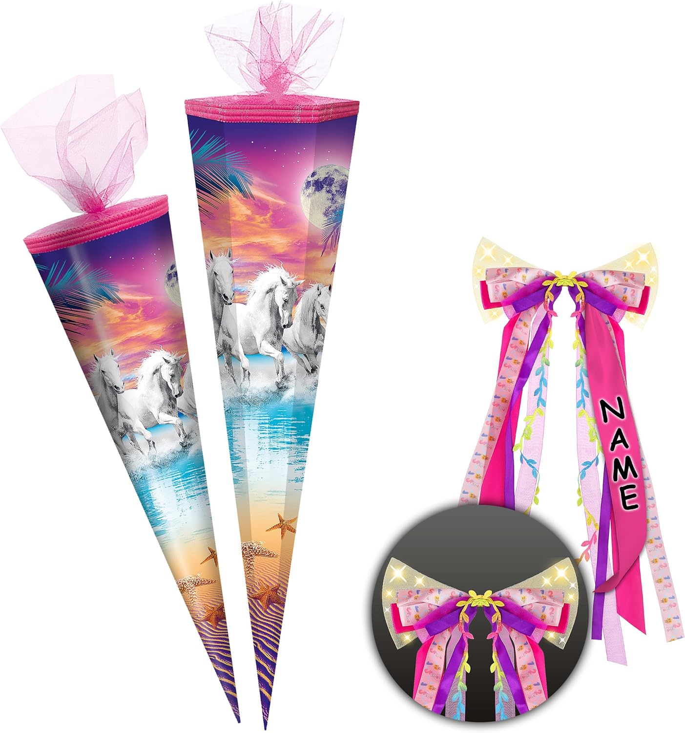 con bellissimo effetto 3D - stampa GLITTER e mica!! ____ stabile e di alta qualità - zaino per la scuola _____ Dimensioni: 70 cm di lunghezza (misurato solo il cartone) ___ Forma: ROTONDO ____ Motivo: "Cavalli / muffa sulla spiaggia" SPECIALE E INDIVIDUALE: _____ personalizzato con il NOME desiderato e il TESTO desiderato ___ / ____ la richiesta del nome viene effettuata - AUTOMATICAMENTE - per favore NON inviare un messaggio in anticipo LAVORO ARTIGIANALE genuino e made in Germany! _______ Materiale: spiaggia per cavalli di alta qualità e cartone rivestito - idrorepellente! _____ SUPER stabile e tanto spazio per fantastici regali! ____ ottimi colori di stampa! _______ / ___ il bordo superiore del sacchetto regalo ha un elegante bordo intrecciato e un'estremità in tulle dell'OCCHIO: ______ incluso un grande fiocco colorato coordinato - LED LIGHT & LIGHT - (nobile e fatto a mano) ______ la consegna dei bellissimi modelli di fiocchi è mista (puoi vedere esempi nelle immagini) per abbinarli, la marca _ alles-meine Gmbh __ offre oltre 1000 articoli relativi all'inizio della scuola ____ ad es. vari fiocchi come chiusure, piccoli zaini decorativi da appendere, candele, varie decorazioni per la stanza e la tavola, salvadanai ___ e persino imbottiture complete! ____ I coni scolastici sono ottime idee regalo... per l'inizio della scuola, dell'asilo e dell'asilo, per l'inizio della formazione o degli studi, per un nuovo lavoro! …. o un inizio diverso per una nuova fase della vita