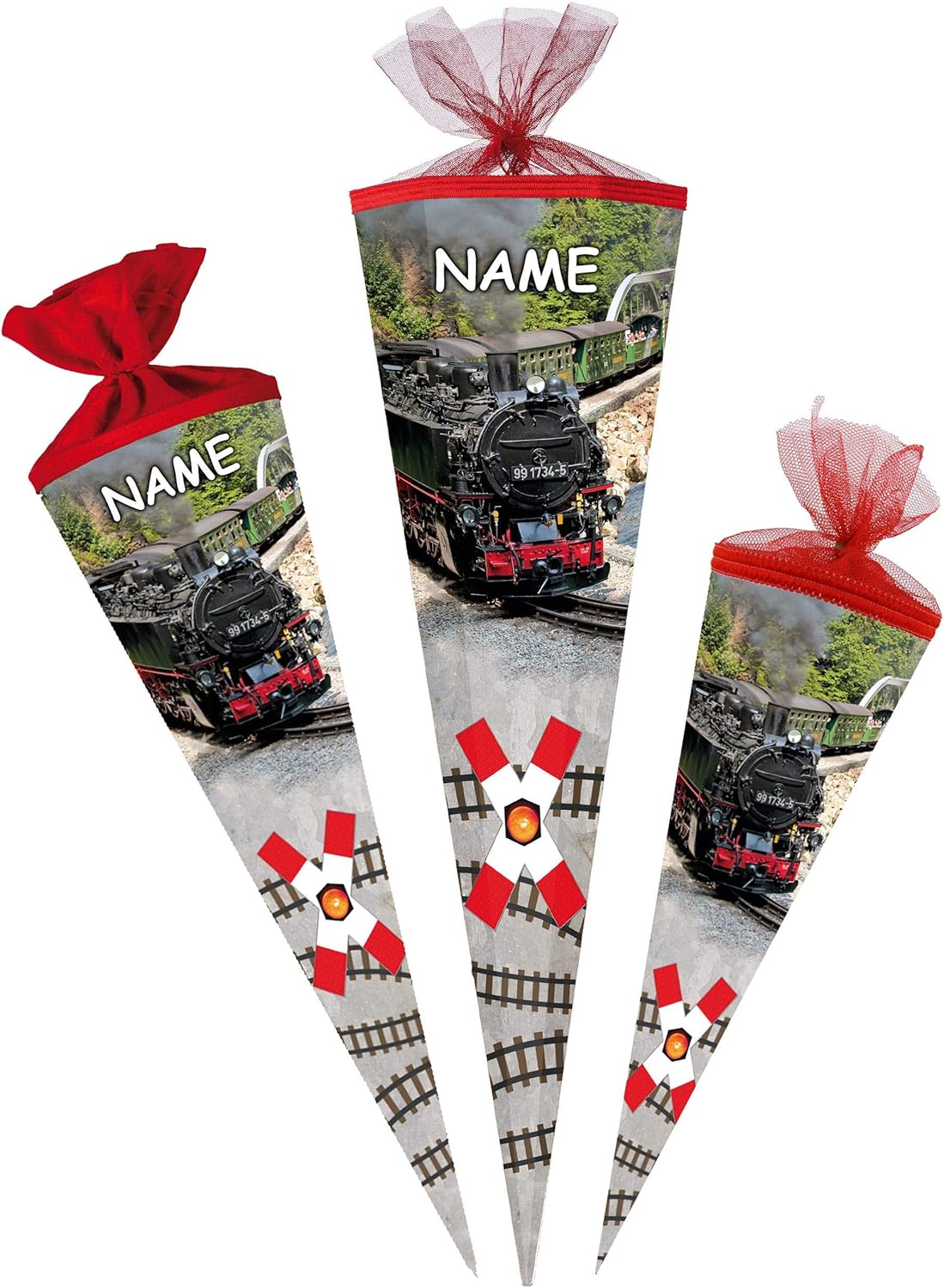 con bellissimo effetto 3D - stampa GLITTER e mica!! ____ stabile e di alta qualità - cono scolastico ___ 50 cm di lunghezza (misurato solo il cartone) ___ forma: ROTONDO ____ il bordo superiore ha un elegante bordo intrecciato e una finitura in tulle ____ motivo: "locomotiva a vapore / locomotiva - ferrovia / treno" l'OCCHIO: ______ il tuo cono scolastico personalizzato ___ incl. colore abbinato grande effetto 3D _ LUCE LED E LUCE - fiocco - con il tuo NOME DESIDERATO + nome extra sul cono della scuola! Il nome è attaccato all'arco E al cono della scuola! ___ viene richiesto il nome - AUTOMATICAMENTE entro 4 ore - NON inviare un messaggio in anticipo ___ i modelli di fiocco vengono consegnati misti / cercheremo un bellissimo fiocco effetto 3D abbinato per il tuo cono scolastico (puoi vedere esempi nelle foto) prodotto in Germania! __ Materiale: cartone rivestito e di alta qualità - SUPER stabile! - idrorepellente! __ fantastici colori di stampa!_____ OPZIONALE è disponibile una punta in plastica abbinata, trasparente e solida da applicare (questo rende la punta del cono scolastico molto stabile e salda) ---- (questo articolo deve essere ordinato EXTRA al cono scolastico) da abbinare ai coni scolastici/sacchetti regalo ___ ci sono anche piccoli sacchetti da 10 cm come decorazione da appendere, targhette con il nome, decorazioni da tavola, coni scolastici con steli per composizioni floreali, motivi sparsi, ghirlande ecc. Articoli per feste