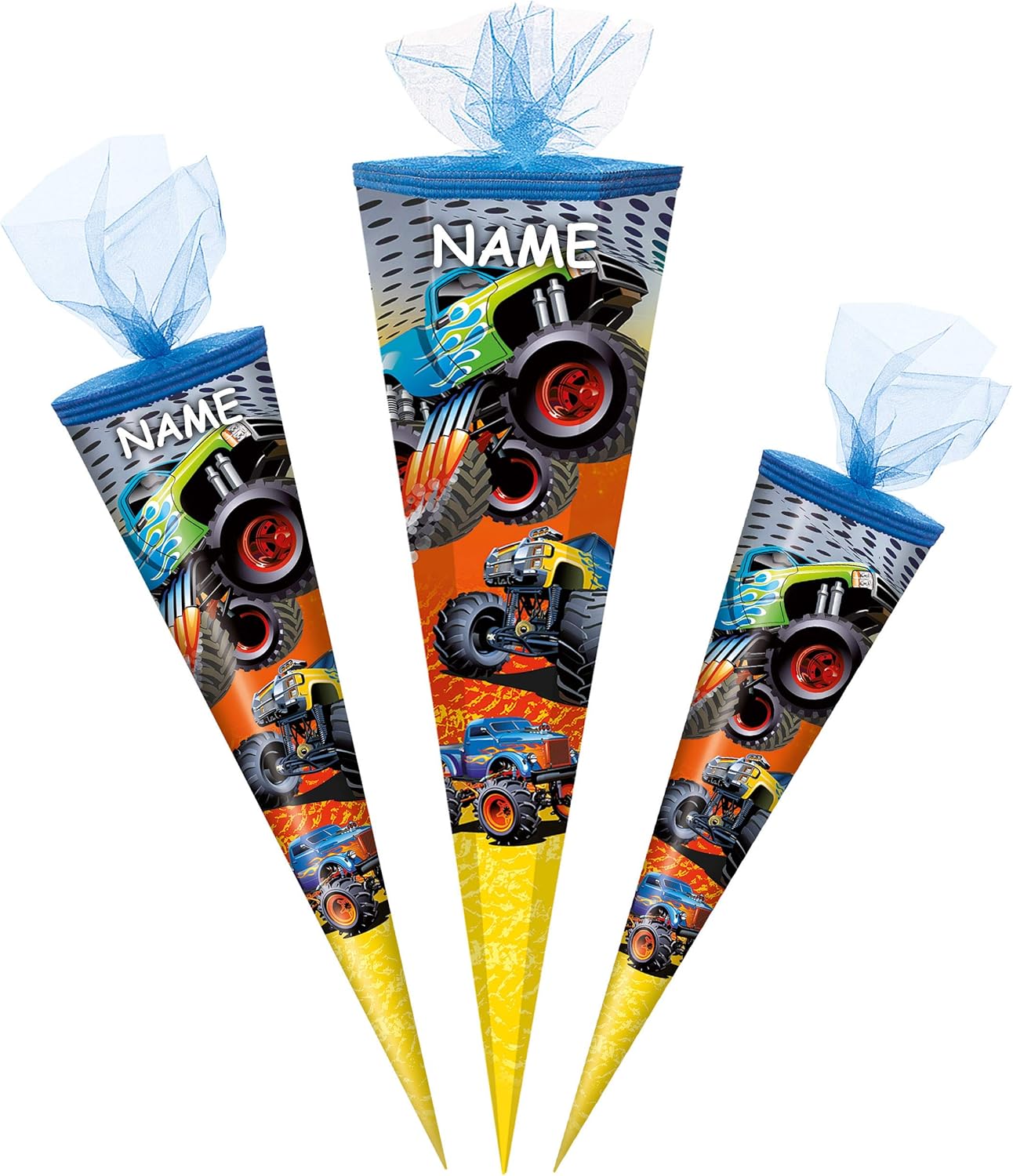 con bellissimo effetto 3D - stampa GLITTER e mica!! ____ stabile e di alta qualità - cono scolastico ___ 50 cm di lunghezza (misurato solo il cartone) ___ forma: ROTONDO ____ il bordo superiore ha un elegante bordo intrecciato e una finitura in tulle ____ motivo: "monster truck - macchina / fuoristrada" l'OCCHIO: ______ il tuo cono scolastico personalizzato ___ incl. grande effetto 3D in colore coordinato _ LUCE LED E LUCE - fiocco - con il tuo NOME DESIDERATO - il nome sarà fatto su misura! ___ viene richiesto il nome - AUTOMATICAMENTE entro 4 ore - NON inviare un messaggio in anticipo ___ i modelli di fiocco vengono consegnati misti / cercheremo un bellissimo fiocco effetto 3D abbinato per il tuo cono scolastico (puoi vedere esempi nelle foto) prodotto in Germania! __ Materiale: cartone rivestito e di alta qualità - SUPER stabile! - idrorepellente! __ fantastici colori di stampa!_____ OPZIONALE è disponibile una punta in plastica abbinata, trasparente e solida da attaccare (questo rende la punta del cono scolastico molto stabile e stabile) ---- (questo articolo deve essere ordinato EXTRA al cono scolastico) e come extra: IL cono scolastico individuale con il vostro NOME DESIDERATO - aggiungete semplicemente l'articolo "nome desiderato" come extra nel carrello, il nome verrà poi applicato al cono scolastico
