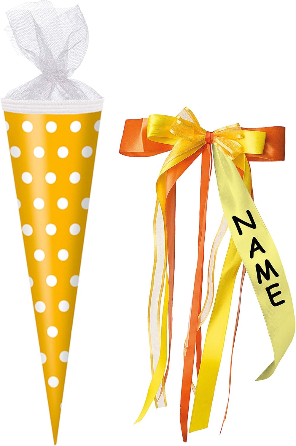 Cono scuola con incisione Lunghezza: quadrato 85 cm con chiusura in tulle e passamaneria Fateci sapere il testo desiderato dopo l'acquisto