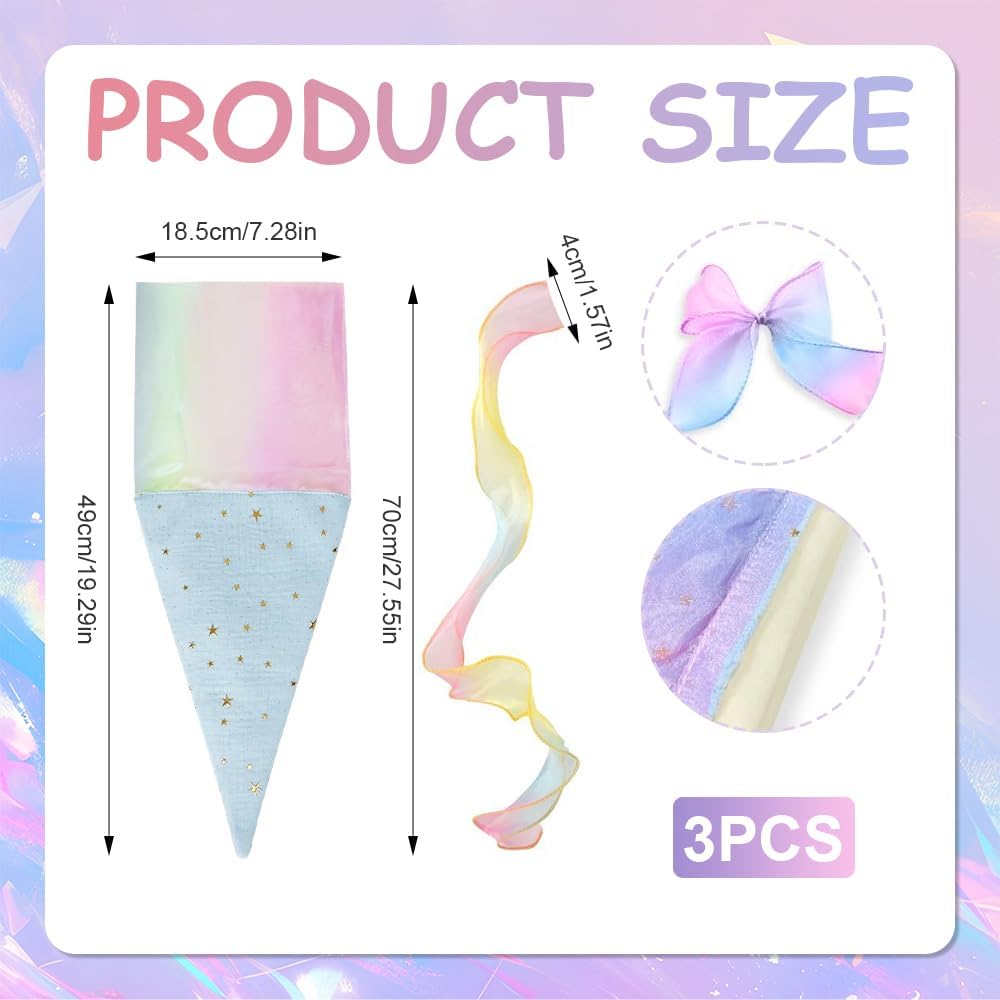 🍦Adatto a ragazzi e ragazze: contiene 3 piccoli zaini scolastici in blu, rosa e verde. Sono decorati con stelle e fiocchi luminosi e irradiano felicità infantile. Il regalo ideale per i bambini della prima elementare. 🍦Alta qualità e durevole: il cono scolastico fratello è realizzato in tessuto di cotone di alta qualità, resistente e insensibile. È decorato con stelle e fiocchi luminosi. È adatto come sostituto dello zaino per la scuola per piccoli oggetti e può essere riutilizzato anche come accessorio di abbigliamento (ad esempio ciondolo) o confezione regalo. Non si deforma anche dopo un uso prolungato. 🍦Misura adatta: il mini cono scolastico di riempimento misura 49 cm × 18,5 cm ed è vuoto all'interno, quindi puoi facilmente inserire articoli di cancelleria, piccoli oggetti o snack all'interno. Una cinghia lunga 70 cm facilita il montaggio e l'utilizzo. Può essere facilmente ripiegato e riposto per risparmiare spazio quando non viene utilizzato. 🍦Regalo per l'inizio della scuola: Lo zaino scolastico per bambine è ideale come regalo per il primo giorno di scuola, per l'ammissione alla prima classe e come regalo di benvenuto per le studentesse del primo anno. Regala ai tuoi figli un'atmosfera speciale della cerimonia di inizio del primo giorno di scuola e preparati per la vita del campus. 🍦Uso multifunzionale: questo zainetto per fratellini è adatto sia come regalo per l'inizio della scuola che come confezione regalo per feste di rientro a scuola e feste di compleanno con il motto "ritorno a scuola". Può essere utilizzato anche come sacchetto per caramelle o borsa per giocattoli. I diversi usi possibili aspettano di essere scoperti da te!