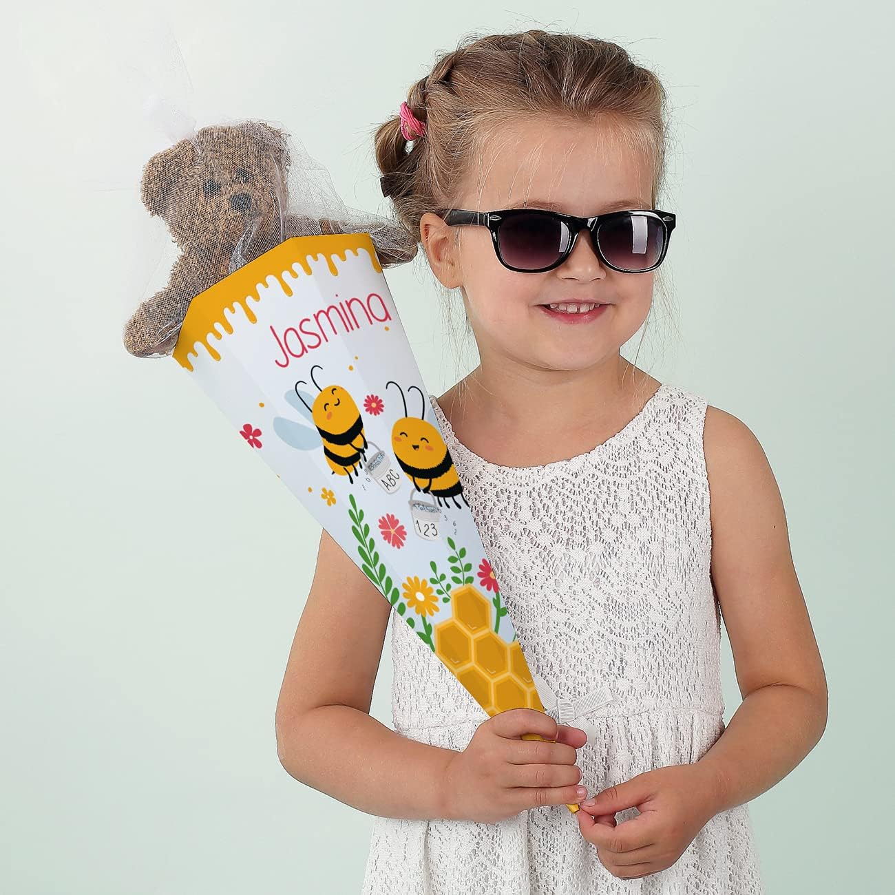 Il simpatico motivo dell'ape con i suoi due insetti indaffarati è perfetto per il primo giorno di scuola e per i compiti che attendono i piccoli alunni della prima elementare. Come le api indaffarate, dovrebbero raccogliere diligentemente conoscenze e intuizioni. Il simbolico cono di zucchero rallegrerà sicuramente l'inizio della carriera scolastica per il tuo giovane inizio di scuola. E con la borsa per fratelli abbinata avrai anche un piccolo regalo per i tuoi fratelli e sorelle più piccoli. Personalizzeremo anche il cono della scuola con il nome del tuo piccolo. Oltre a mamma e papà, anche la nonna e il nonno e tutti gli amici e parenti festeggeranno con orgoglio questo giorno. Utilizza la funzione di anteprima. Dopo la stampa produrremo questa bustina di zucchero secondo i vostri desideri. Dopo l'imballaggio, viene preparato per la spedizione e lascia la nostra casa entro pochi giorni. Ti raggiungerà a breve dalla bella Turingia. I coni di zucchero esagonali misurano 80 cm x 26 cm oppure 28 cm x 11 cm. Sono stampati con colori a base d'acqua e prodotti in Germania.
