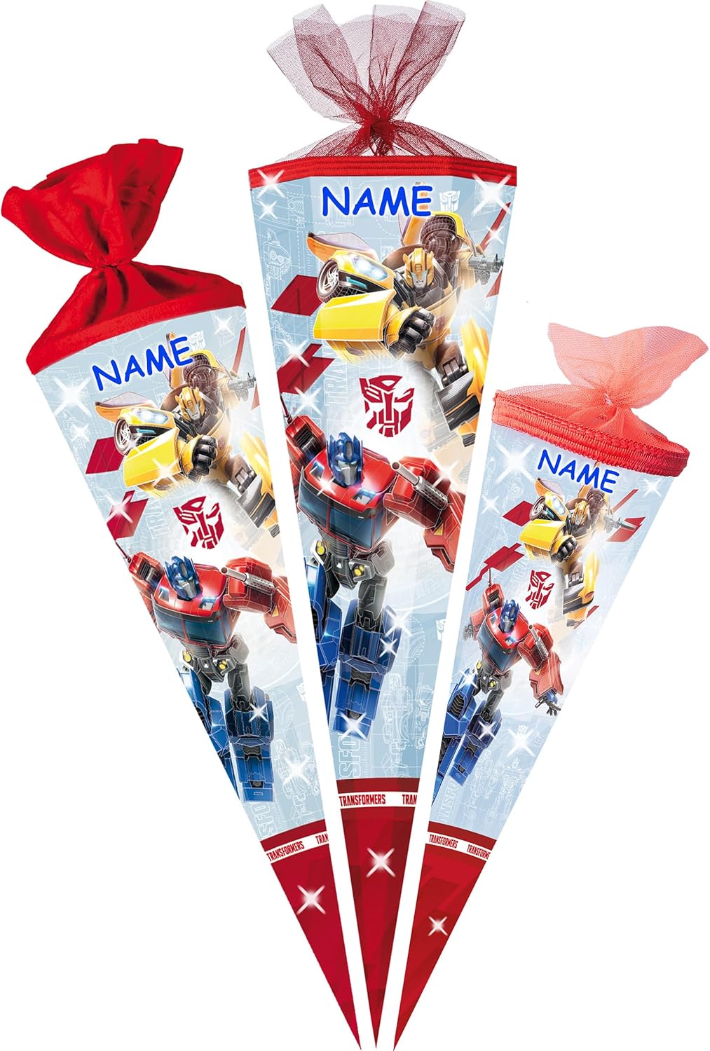 Cono scolastico stabile e di alta qualità _____ Dimensioni: 85 cm di lunghezza (misurato solo il cartone) ___ Forma: 6 - QUADRATO ____ Motivo: "Transformer - Roll Out" autentico FATTO A MANO e prodotto in Germania! _______ / ____ Materiale: cartone rivestito e di alta qualità - idrorepellente! _____ SUPER stabile e tanto spazio per fantastici regali! ____ bellissimi colori di stampa! il bordo superiore del sacchetto regalo ha un elegante bordo intrecciato e un'elegante finitura in tulle scintillante SPECIALE E INDIVIDUALE: _____ a seconda della selezione -> personalizzato con il NOME desiderato e il TESTO desiderato ___ / ____ la richiesta del nome viene effettuata - AUTOMATICAMENTE - per favore NON inviare un messaggio in anticipo Fiocchi come elementi di fissaggio, piccole cartelle decorative da appendere, candele, varie decorazioni per la stanza e la tavola, salvadanai ___ e persino imbottiture complete! ____ I coni scolastici sono ottime idee regalo... per l'inizio della scuola, dell'asilo e dell'asilo, per l'inizio della formazione o degli studi, per un nuovo lavoro! …. o un inizio diverso per una nuova fase della vita