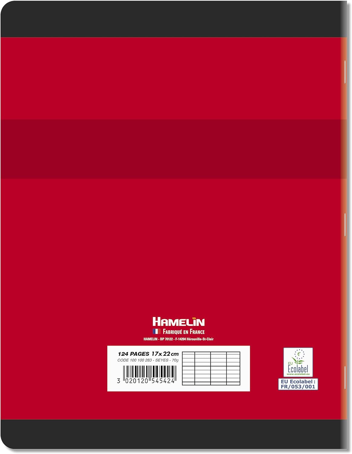 Formato scolastico - Larghezza: 17 cm x Altezza: 22 cm, Righe a grandi riquadri Seyès, in 2 colori, con intestazione e doppio margine a sinistra 124 pagine - Spessore 70 g, Copertina in cartoncino riciclato, spessore 300 g Rilegatura con punti metallici, 20 pagine al giorno, dal lunedì al sabato, con separatori Colore copertina - Casuale tra 2 colori: Rosso, Blu Certificato Ecolabel UE (basso impatto ambientale della produzione della carta), Made in France Formato scolastico - Larghezza: 17 cm x Altezza: 22 cm Righe a grandi quadretti Seyès, in 2 colori, con intestazione e doppio margine a sinistra, 20 pagine al giorno, dal lunedì al sabato, con linguette