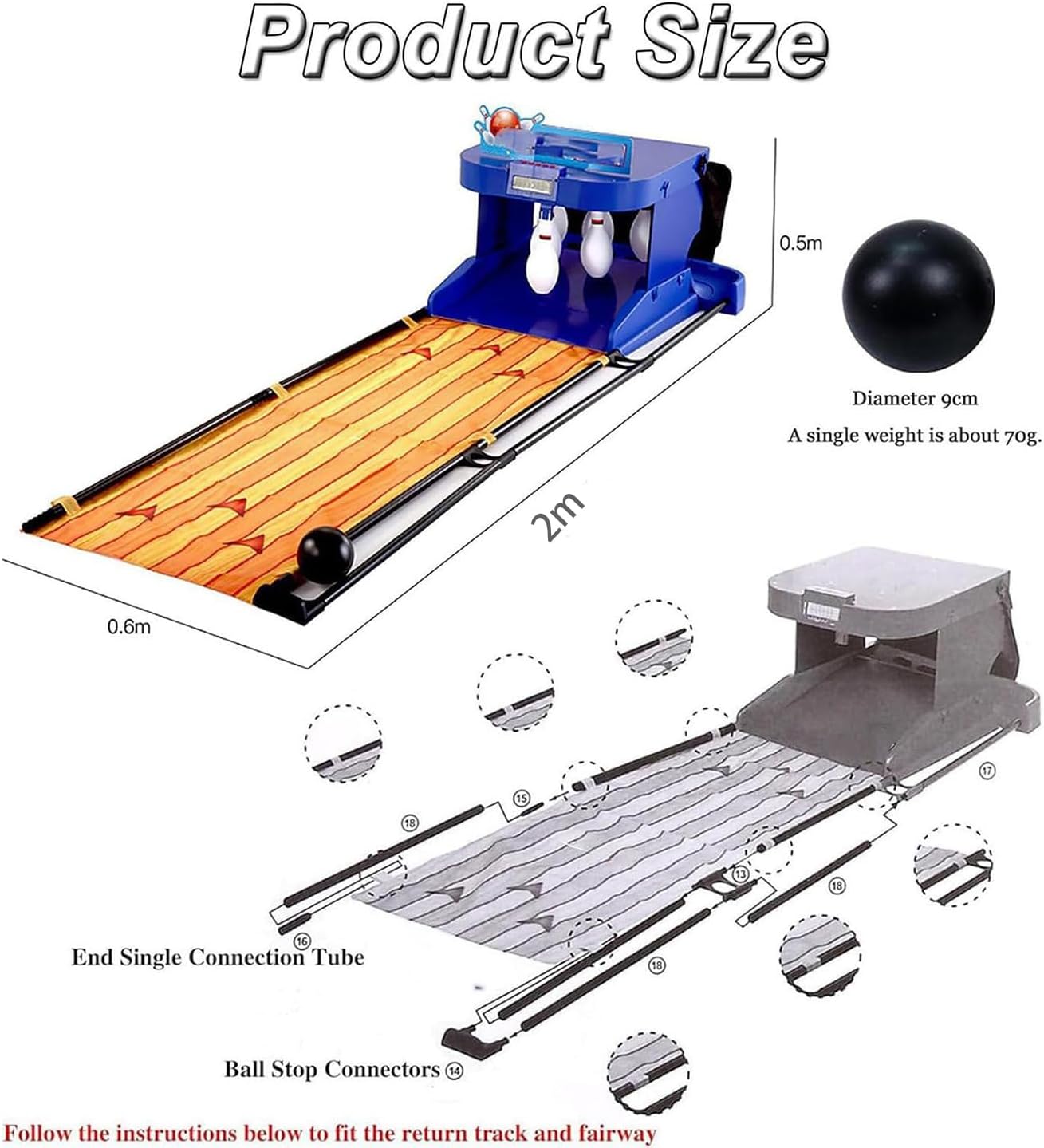 【Facile da configurare】 La console di giochi sportivi a palla da bowling interno è una macchina da bowling elettrica portatile progettata per l'uso domestico, che consente di impostare rapidamente e facilmente la tua pista da bowling. Questo gioco innovativo presenta palle da bowling fluide e ben ponderate che migliorano la tua esperienza di gioco. Quando non è in uso, la bowling può essere piegata per un comodo spazio, rendendolo un regalo perfetto per Natale e per bambini 【Intrattenimento genitore-figlio】 Impegnati in un tempo di qualità con questa entusiasmante macchina da bowling per bambini e adulti. Il bowling non è solo divertente ma anche competitivo e abile, creando un divertente ponte di comunicazione tra i membri della famiglia. Goditi momenti di gioia e armonia mentre competi o collabori a questo sport coinvolgente 【Set di bowling elettronico】 Eleva il tuo gameplay con il nostro set di bowling elettronico avanzato che presenta funzioni automatiche di ritorno e punteggio delle palle. Questa macchina da bowling alimentata a batteria comprende 6 perni di plastica durevoli e 2 palline da bowling realizzate con materiali non tossici, garantendo la sicurezza per i bambini mentre si godono le loro avventure da bowling 【Dispositivo di punteggio elettronico a LED】 Tieni traccia dei tuoi progressi senza sforzo con il marcatore elettronico a LED integrato nella macchina da bowling. Registra automaticamente i tuoi punteggi fornendo un'esperienza di competizione interattiva. Perfetto per uno o due giocatori, l'obiettivo è abbattere il maggior numero possibile di spille, aggiungendo eccitazione a ogni sessione di bowling 【ARC di ritorno a sfera automatica】 Esperienza di gameplay realistico con la funzione di ripristino automatico delle macchine a sfera per adulti. Dopo aver lanciato la palla, i pin si ripristinano automaticamente con un effetto sonoro simulato, migliorando il divertimento e la convenienza della tua esperienza di bowling interna. Sia per bambini che per adulti, questa macchina da bowling garantisce ore di intrattenimento