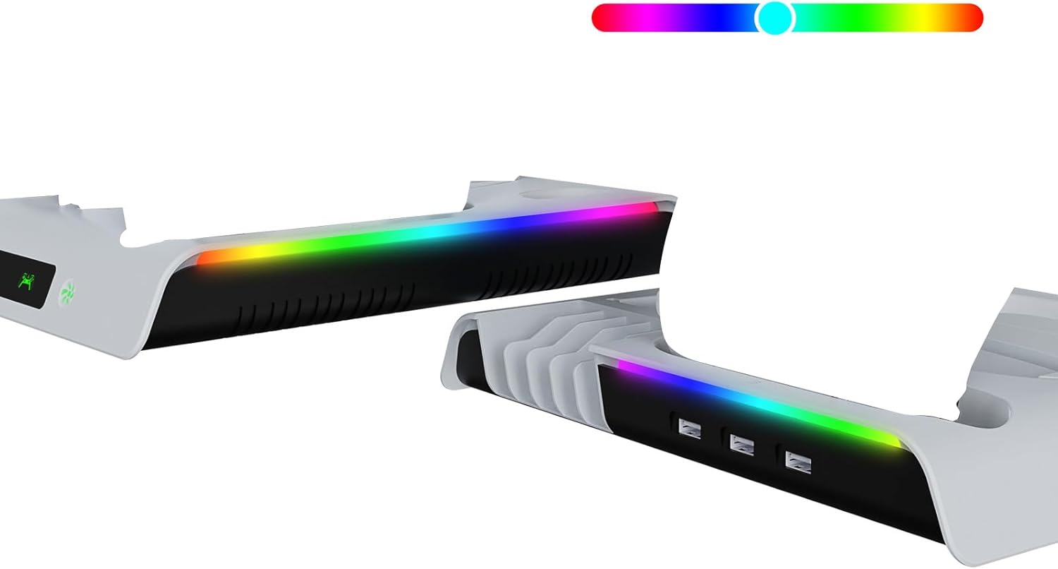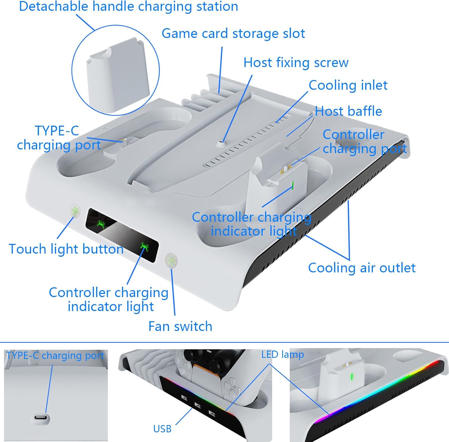 Migliora il tuo gioco con questa stazione di raffreddamento a 5/5 console, le tue console dal surriscaldamento. Questa stazione di raffreddamento multifunzionale presenta un design elegante adatto per console e include luci circostanti colorate per atmosfere coinvolgenti. Ideale per i giocatori e coloro che utilizzano spesso le loro console per lunghi periodi, garantendo le migliori prestazioni e longevità dei tuoi dispositivi. per centri di intrattenimento domestico, sala giochi o qualsiasi ambiente in cui le console funzionano per lunghe durata, mantenendo prestazioni stabili e salvaguardando il surriscaldamento. Realizzata in ABS Component, questa stazione di raffreddamento non solo migliora l'aspetto estetico delle tue configurazioni, ma fornisce anche una pratica espansione delle interfacce USB e funzionamento silenzioso.