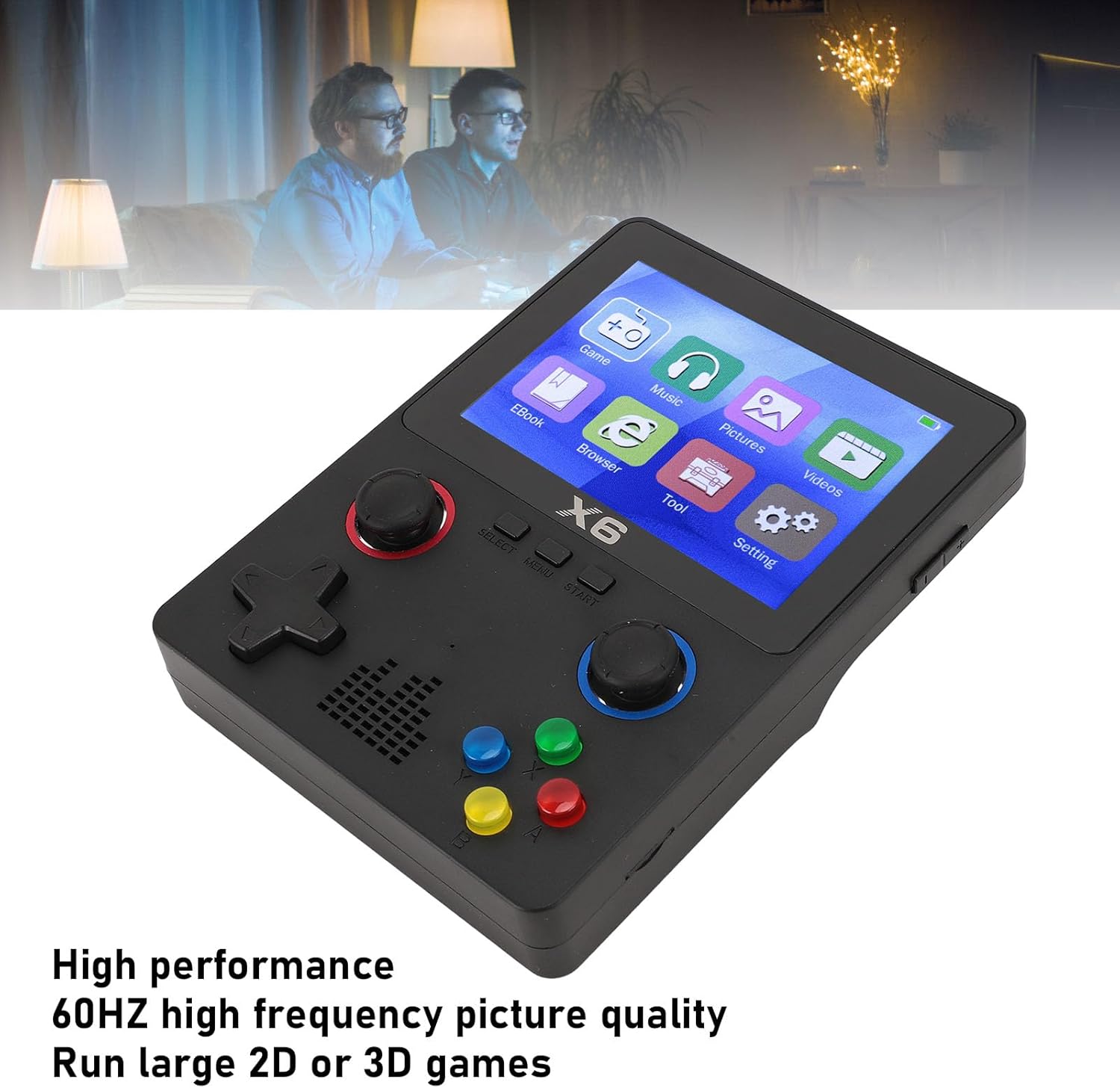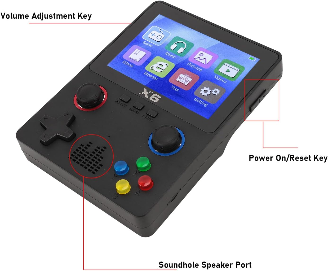 Schermo IPS: console di gioco portatile, schermo a colori IPS OCA completamente laminato da 3,5 pollici, il colore dello schermo è fine, delicato e morbido per ridurre efficacemente l'affaticamento degli occhi, la qualità dell'immagine ad alta definizione di 640 x 480 è chiara, l'angolo visivo dell'occhio è ampio. Design a doppio bilanciere 3D: questo bilanciere per console di gioco retrò presenta una sporgenza semicurva antiscivolo. È possibile selezionare la modalità operativa appropriata per diversi giochi. Il design del pulsante L R sul retro ti consente di liberare la tua potenza. Potente funzione chip: RISC ATJ2273S a 32 bit a 4 core ad alte prestazioni supporta la qualità dell'immagine ad alta frequenza a 60 Hz, può eseguire giochi 2D o 3D di grandi dimensioni. Supporta 11 giochi di simulazione tra cui MD, MAME, CPS, SMD e altri. Supporta giochi, video, canzoni, immagini. L'espansione massima della scheda di memoria supporta 64G. Supporta giochi per 2 giocatori: la console di gioco retrò ha una porta per controller e una porta di uscita TV, supporta controller collegati e uscita su grande schermo, rendendo il gioco più emozionante. Batteria a lunga durata: lettore di videogiochi portatile con batteria al litio polimerica integrata da 2000 mAh, dura 6 ore in modo da poter giocare abbastanza contemporaneamente, accumulo rapido di energia, ricarica per 1 ora, gioco per 4 ore.