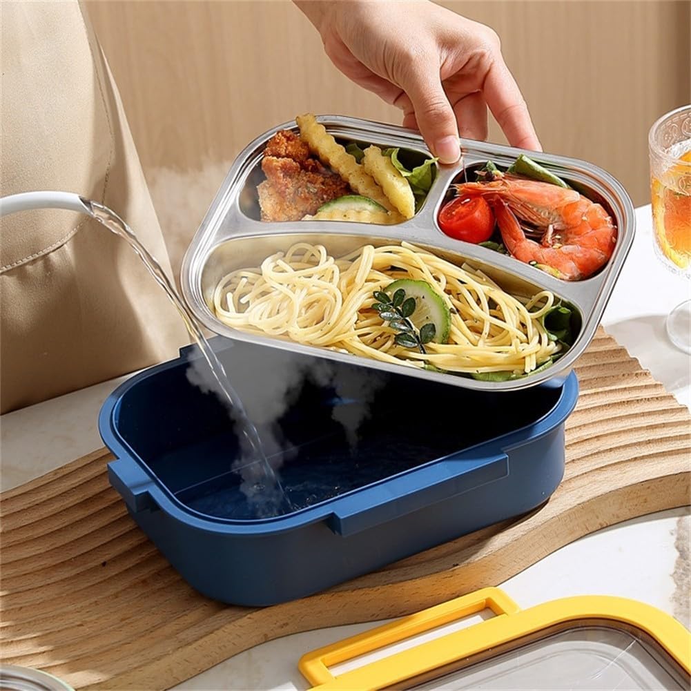 Scomparti a prova di fuoriuscite: ogni sezione di questo portapranzo in acciaio inossidabile presenta un design a tenuta stagna che mantiene i pasti freschi e previene fuoriuscite disordinate durante il viaggio. Elegante e funzionale: il suo design accattivante rende questo contenitore per il pranzo una scelta attraente per ambienti scolastici o di lavoro, fornendo allo stesso tempo una pratica utilità. Design a tre sezioni: perfettamente dimensionato per adulti con appetiti più piccoli, accoglie una varietà di alimenti tra cui frutta e panini senza mescolarli insieme. Manutenzione semplice: la pulizia è un gioco da ragazzi con il vassoio rimovibile lavabile in lavastoviglie e i fermi di sicurezza che mantengono il coperchio ben chiuso quando non in uso. [Pranzo on-the-go] Progettato per comodità; tuttavia, tieni presente che il vassoio in acciaio inossidabile non è adatto al microonde ed è più adatto per i pasti a temperatura ambiente.