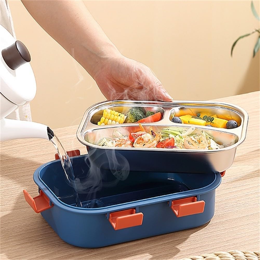 * A prova di perdite, nessuna miscelazione degli aromi: ogni scomparto è sigillato in modo indipendente per mantenere il cibo fresco e separato, senza panini inzuppati o sacchetti disordinati. Prepara l'hummus con bastoncini vegetariani, yogurt con muesli o frutta con una salsa e goditi un pendolarismo pulito e senza stress. * Porzioni bilanciate per un appetito più leggero: il layout a 3 scomparti ti aiuta a gestire le porzioni con facilità, ideale per pranzi in ufficio, giornate scolastiche, snack in palestra o mangiare consapevole senza sovrappaccare. * Costruito per andare, progettato per mostrare: robusto vassoio in acciaio inossidabile, guscio esterno vibrante e quattro chiusure laterali sicure: intelligente per il lavoro, resistente per le corse scolastiche, elegante per picnic e viaggi su strada. Dimensioni compatte 22,8 × 16,5 × 7 cm si adatta alla maggior parte degli zaini; diversi colori evitano confusioni a casa o in ufficio. * Clic, mangia, pulisci: facile manutenzione: l'inserto rimovibile in acciaio inossidabile va direttamente in lavastoviglie per una pulizia accurata. Il coperchio si apre facilmente ma si blocca saldamente per il trasporto, meno tempo per la pulizia, più tempo per godersi il pasto. * Versatile ogni giorno: perfetto per frutta, panini, insalate e salse - mantiene il pranzo fresco dal treno mattutino a una panchina del parco a mezzogiorno. Il design riutilizzabile riduce i prodotti usa e getta.