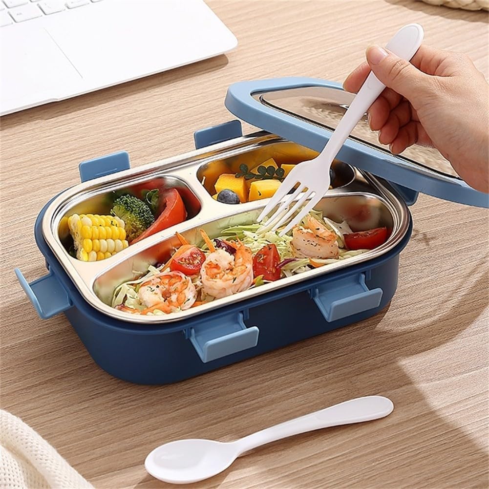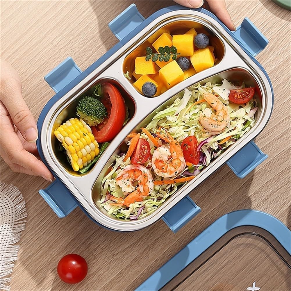 Design a prova di perdite: ogni scomparto di questo portapranzo in acciaio inossidabile è completamente sigillato per mantenere i pasti freschi e separati, eventuali fuoriuscite durante il trasporto. Aspetto alla moda: con un esterno luminoso, questo contenitore per il pranzo combina stile contemporaneo con praticità, rendendolo un'ottima scelta per scuola, lavoro o attività all'aperto. [Tre scomparti] Perfettamente progettato per chi ha appetiti più piccoli, contiene facilmente frutta, panini e pasti leggeri attraverso i suoi tre scomparti. Facile da pulire: il vassoio rimovibile in acciaio inossidabile è lavabile in lavastoviglie per una pulizia senza problemi. Quattro chiusure laterali sicure, il coperchio rimane ben chiuso ma consente un facile accesso. Design facile da usare: realizzato per comodità; si prega di ricordare che il vassoio in acciaio inossidabile non è adatto per l'uso nel microonde.