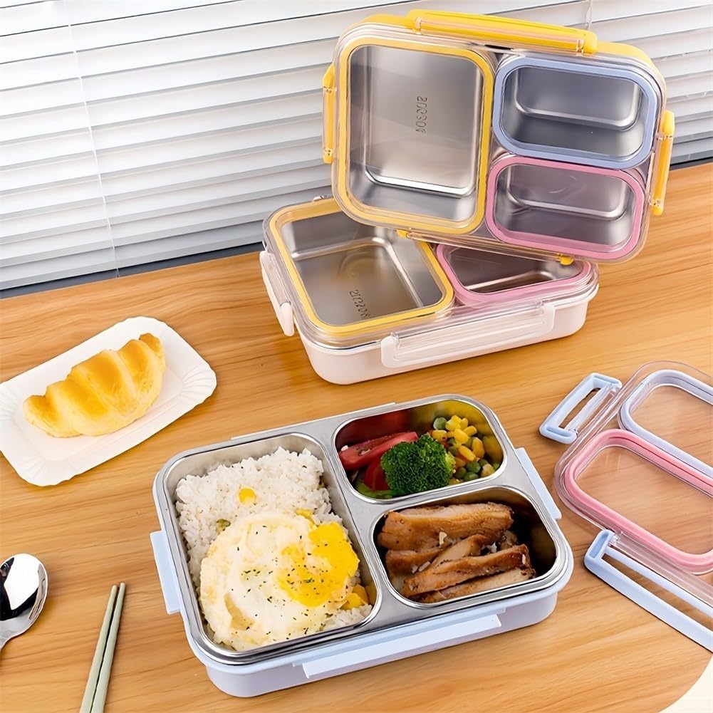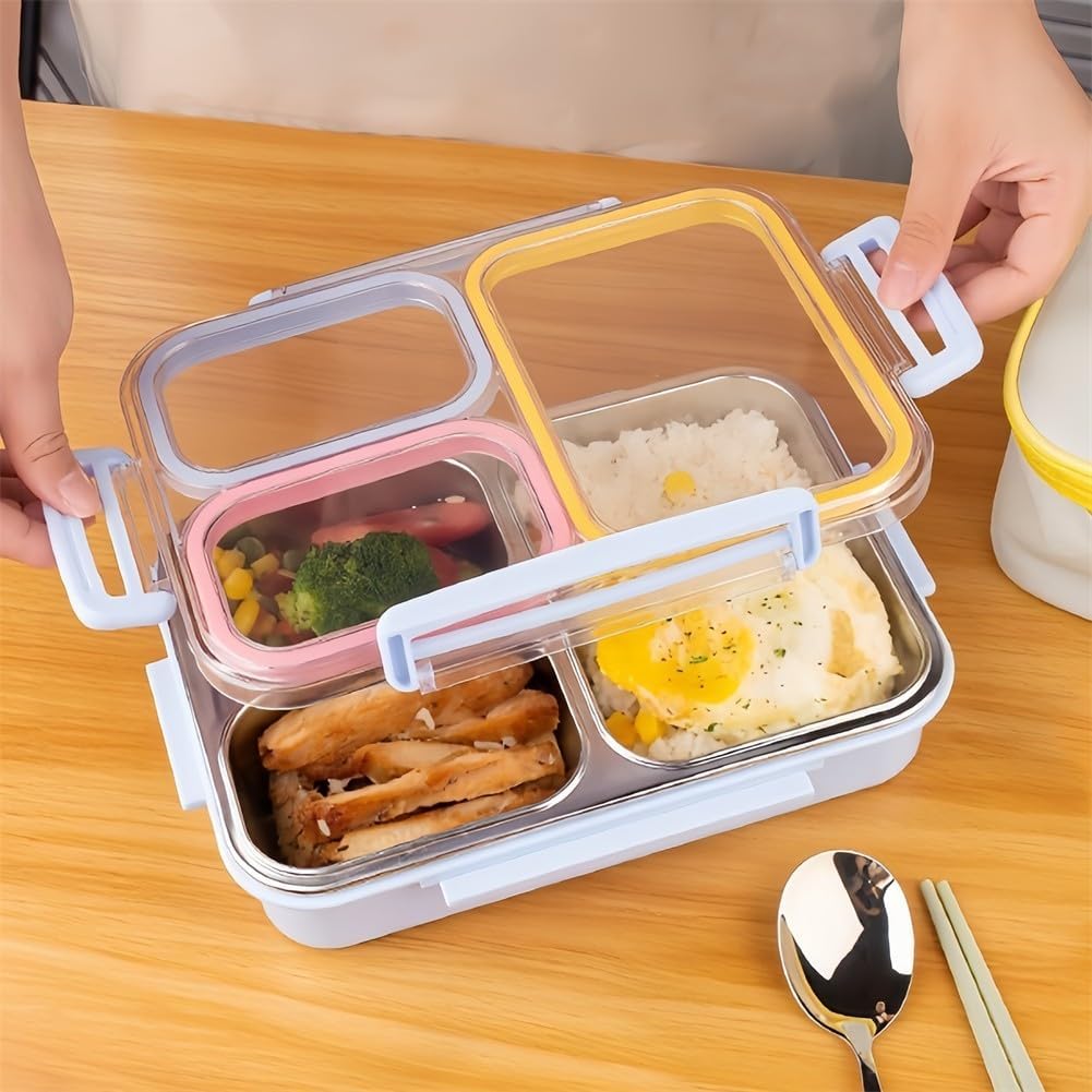 [Scomparti spaziosi] Questo portapranzo in acciaio inossidabile presenta tre ampi scomparti, che consentono di confezionare una varietà di opzioni per i pasti come insalate, panini e snack mantenendoli freschi e separati durante il trasporto. Materiale robusto: realizzato in acciaio inossidabile 304, questo portapranzo è resistente alla ruggine e alle macchie, il cibo rimane sicuro e incontaminato attraverso l'uso quotidiano. Design a prova di perdite: i coperchi sigillati in silicone offrono prestazioni a prova di perdite, fuoriuscite e miscelazione di sapori tra gli scomparti, rendendolo una scelta eccellente per i pasti in movimento. Coperchio trasparente: il coperchio trasparente consente una facile visibilità del contenuto, in modo da poter trovare rapidamente ciò di cui hai bisogno senza aprire il contenitore, aggiungendo comodità e un tocco moderno al tuo portapranzo. Portatile e comodo: il design compatto si adatta perfettamente a borse o zaini, rendendolo per scuola, lavoro o attività all'aperto; i tuoi pasti sono sempre pronti quando lo sei.