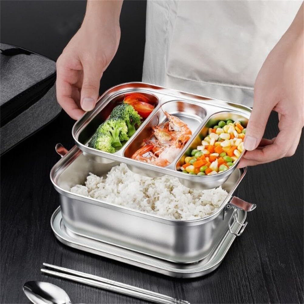 Materiale in acciaio inossidabile 304: realizzato in acciaio inossidabile 304, non si crepa, antiruggine e inodore, questo portapranzo garantisce un uso duraturo. Tu e la tua famiglia potete gustare deliziosi pranzi ogni giorno senza alcuna preoccupazione per i materiali nocivi. Design a prova di perdite: dotato di un anello di tenuta e un design di blocco, questo portapranzo fornisce una tenuta a doppio strato, offrendo un'eccellente tenuta e perdite. Mantiene efficacemente zuppe e altri liquidi all'interno senza perdite, il cibo rimane fresco e senza disordine. Diviso e spazioso: costruito con doppio strato e 2-3 partizioni, questo portapranzo impedisce la miscelazione degli alimenti e consente una conservazione organizzata dei pasti. L'ampio spazio offre spazio sufficiente per pasta, insalata, carne, verdure e frutta. Rispetto alla maggior parte delle scatole di metallo, offre il 50% in più di capacità per soddisfare l'appetito. Diverse misure disponibili: scegli tra piccole (1200 ml), grandi (1800 ml) o medie (2400 ml) in base alle tue esigenze. Il portapranzo è molto facile da pulire, rendendo la preparazione dei pasti senza problemi e conveniente per le persone impegnate. Goditi il cibo sempre e ovunque: questo portapranzo in acciaio inossidabile è perfetto per conservare una varietà di frutta, snack e pasti. Che tu sia al lavoro, a scuola o in viaggio, puoi gustare cibi deliziosi sempre e ovunque. Dì addio al fast food e abbraccia uno stile di vita più sano con questo portapranzo.