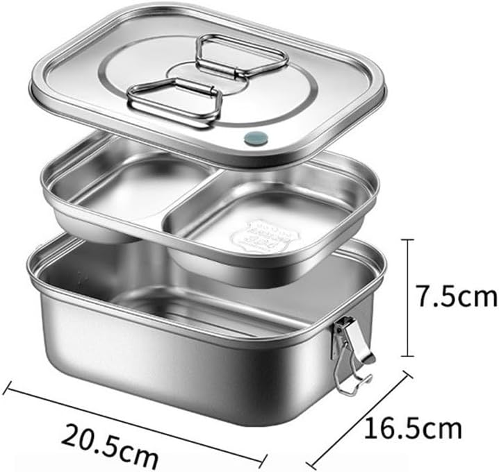 Struttura in acciaio inossidabile 304: realizzata in acciaio inossidabile 304 di alta qualità, questa scatola per il pranzo è non si crepa e inodore, fornendo un'opzione affidabile per i tuoi pasti quotidiani senza preoccupazioni. Sistema sicuro a prova di perdite: progettato con un anello di tenuta stretto e un meccanismo di bloccaggio, garantisce l'assenza di perdite, mantenendo il cibo fresco anche durante il trasporto. Design spazioso e diviso: questo portapranzo a doppio strato include più partizioni per mantenere separati i diversi alimenti; goditi il 50% di spazio in più rispetto ai contenitori in metallo standard. Varietà di dimensioni: disponibile in piccole (1200 ml), medie (1800 ml) e grandi (2400 ml) per soddisfare tutte le esigenze di preparazione dei pasti; pulire senza sforzo per comodità.