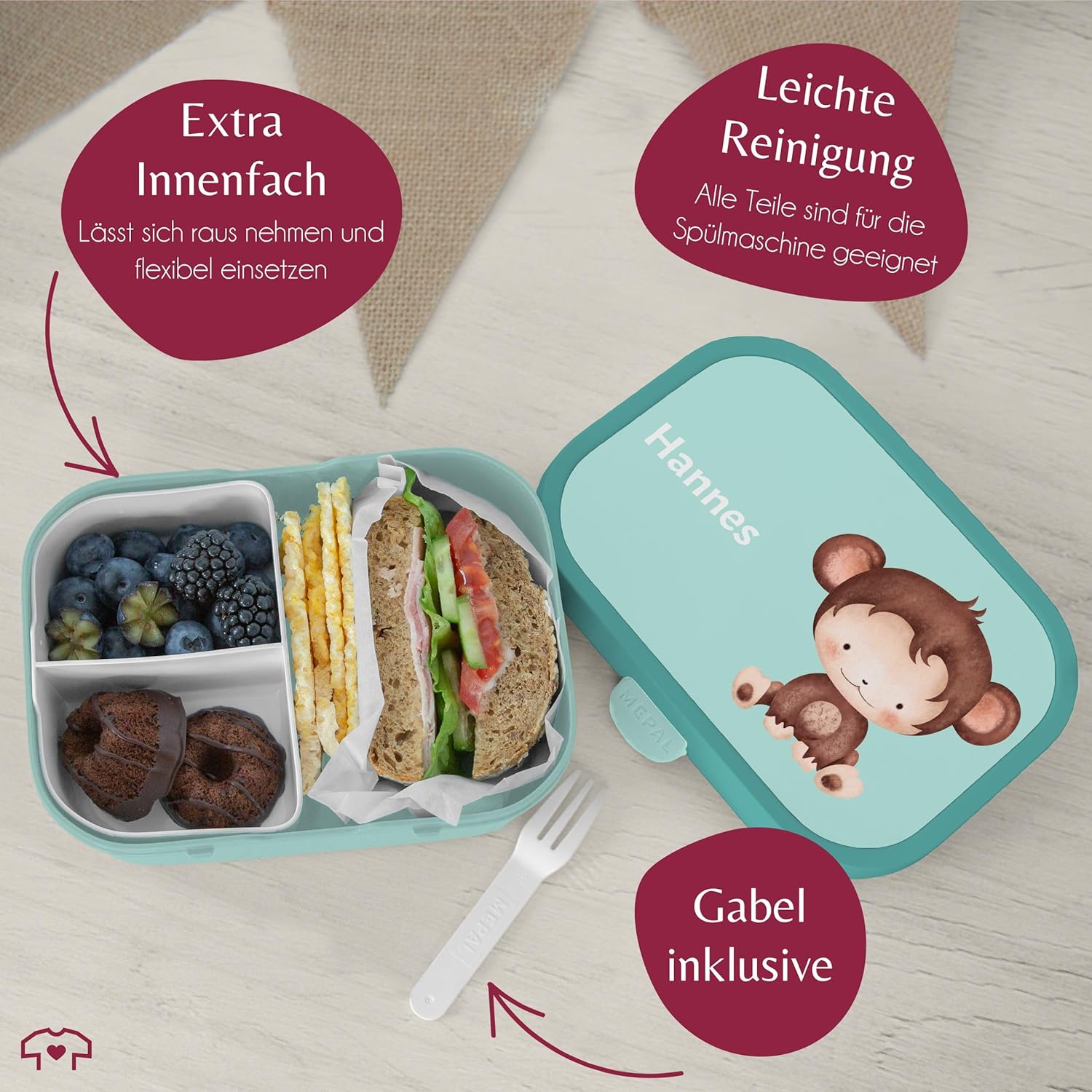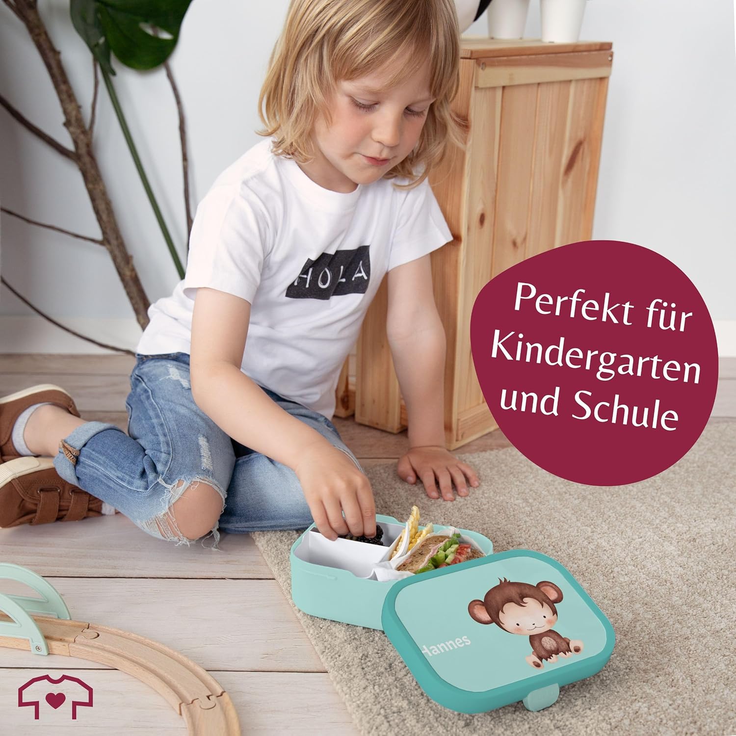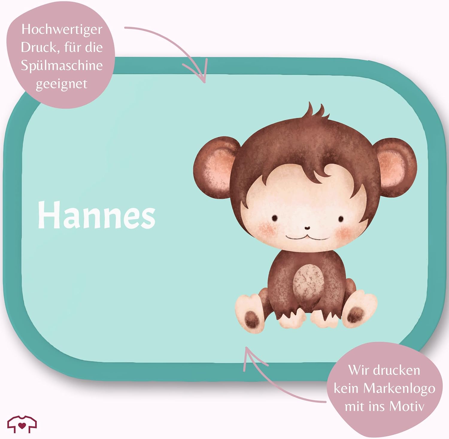 Contenitore per il pranzo campus per bambini per Mepal - dolce scimmia personalizzata con nome I simpatico motivo scimmia - 750 ml - turchese - scimmie carine ventagli