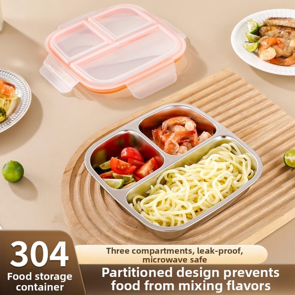 Materiale consapevole della salute: realizzato in acciaio inossidabile 304 per uso alimentare per mantenere ogni pasto puro e sano per te e i tuoi cari. Design a prova di perdite: gli scomparti completamente sigillati impediscono eventuali perdite, i pasti rimangono freschi e separati senza fuoriuscite nella borsa. Elegante e moderno: questo portapranzo presenta un esterno vivace combinato con un elegante vassoio in acciaio inossidabile, che lo rende una scelta attraente per scuola, lavoro o uso esterno. [Per mangiatori leggeri] Con una capacità di 600 ml suddivisi in tre sezioni, è perfetto per bambini dai 3 anni in su e adulti che amano porzioni più piccole di frutta, panini e snack.
