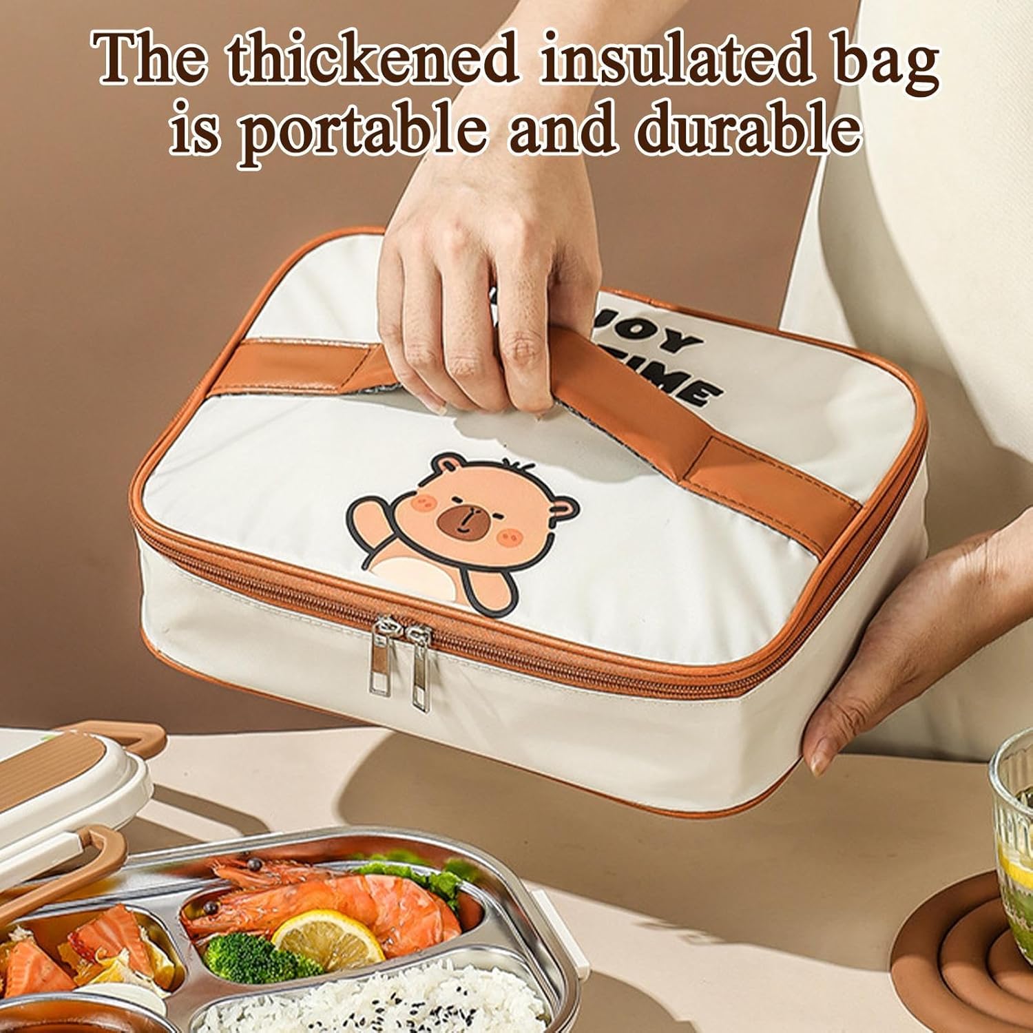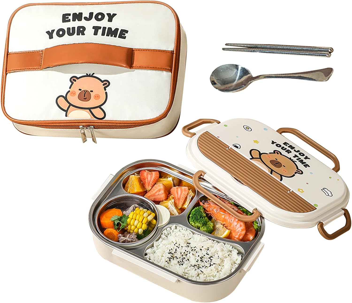 Conservazione sicura degli alimenti realizzata con contenitori in acciaio inossidabile senza BPA, questo set di contenitori per il pranzo garantisce una conservazione igienica proteggendo i pasti del bambino dalla contaminazione e mantenendo la freschezza sia all'asilo nido scolastico che alle avventure all'aperto Progettato per la portabilità La borsa per il trasporto isolata inclusa presenta comode maniglie e un design compatto che rende facile per i bambini portare il pranzo in gite, campeggio, scuola o pranzi in ufficio mantenendo i pasti sicuri e organizzati Contenitori adatti al microonde consentono un rapido riscaldamento del cibo senza rimuovere i coperchi riducendo i tempi di preparazione e rendendo il pasto comodo soprattutto per genitori e bambini impegnati all'asilo o a scuola Soluzione completa per il pranzo Questo set include contenitori in acciaio inossidabile con coperchi sicuri e posate per bambini che promuovono l'indipendenza e incoraggiano abitudini alimentari sane fornendo tutto in una confezione compatta Facile da mantenere ed ecologico. Tutti i componenti sono lavabili in lavastoviglie garantendo pulizia e durata supportando una vita sostenibile sostituendo i contenitori con un'opzione riutilizzabile di lunga durata