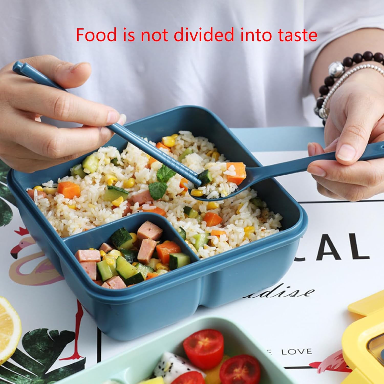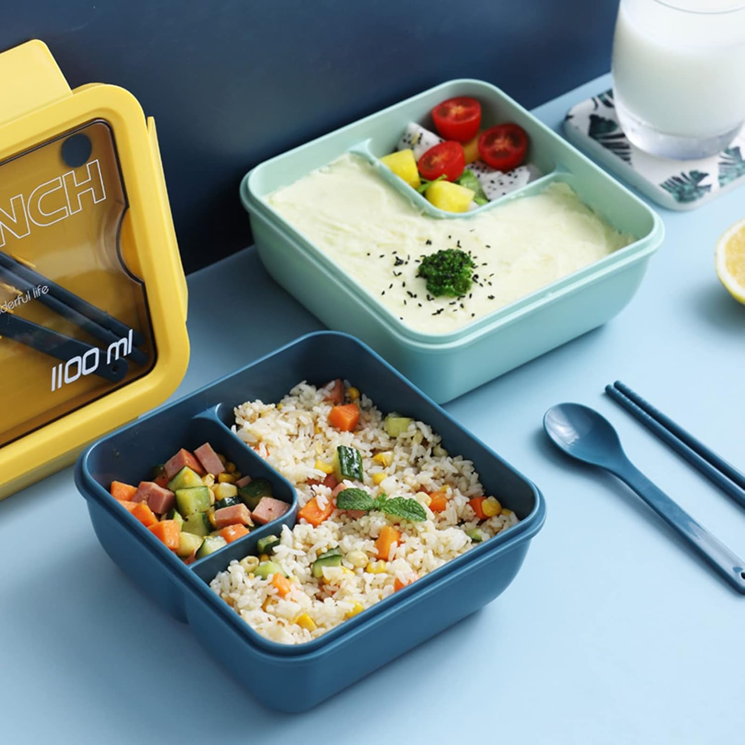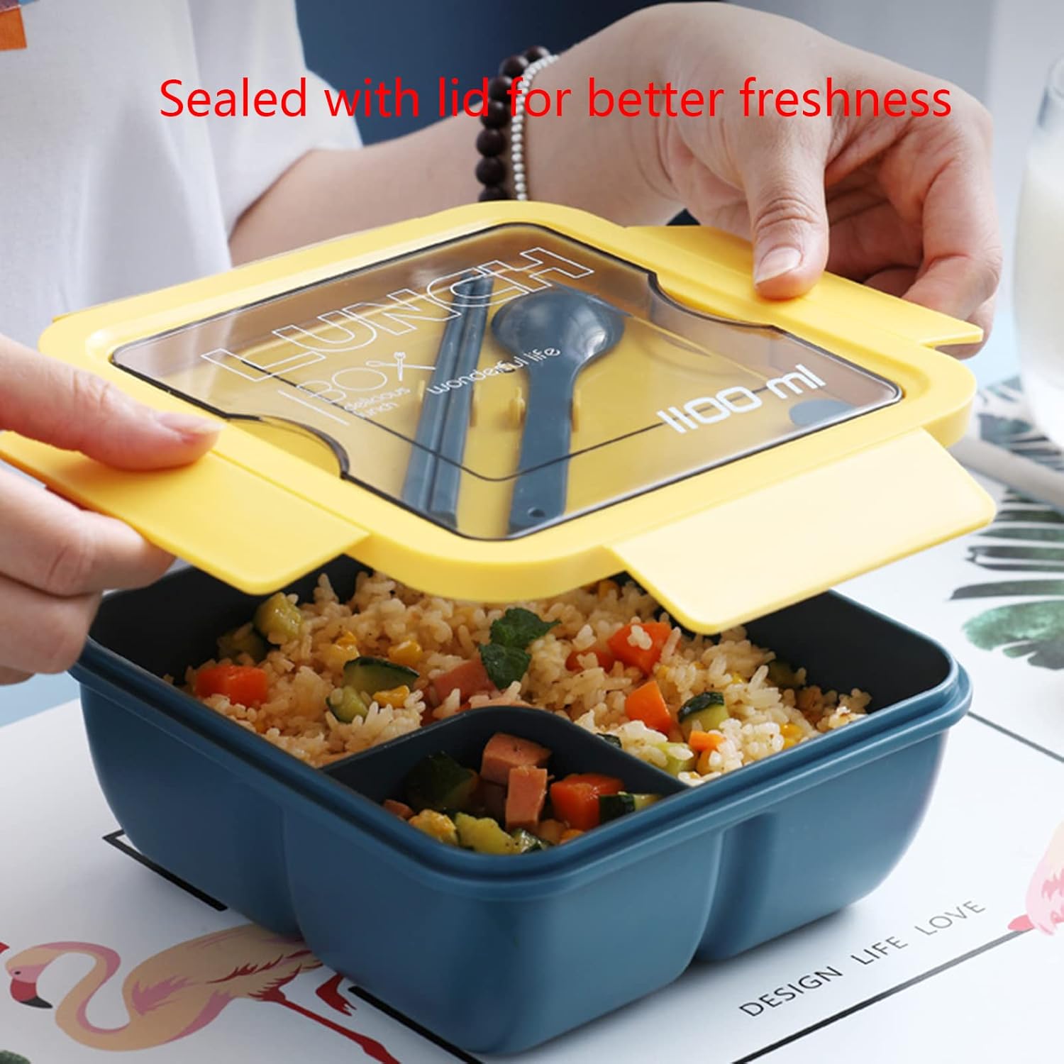 L tenuta in silicone del contenitore per pranzo è fissato lati per evitare perdite e bloccare la freschezza Materiale PP per uso alimentare, sicuro, non tossico e sano Design dello scomparto per pranzo, delizioso senza odore contenitore per pranzo è dotato fori ventilazione facili da aprire e possono essere utilizzati per la dissipazione e la conservazione del calore coperchio multifunzionale per pasto, design del supporto del coperchio del pasto può contenere stoviglie