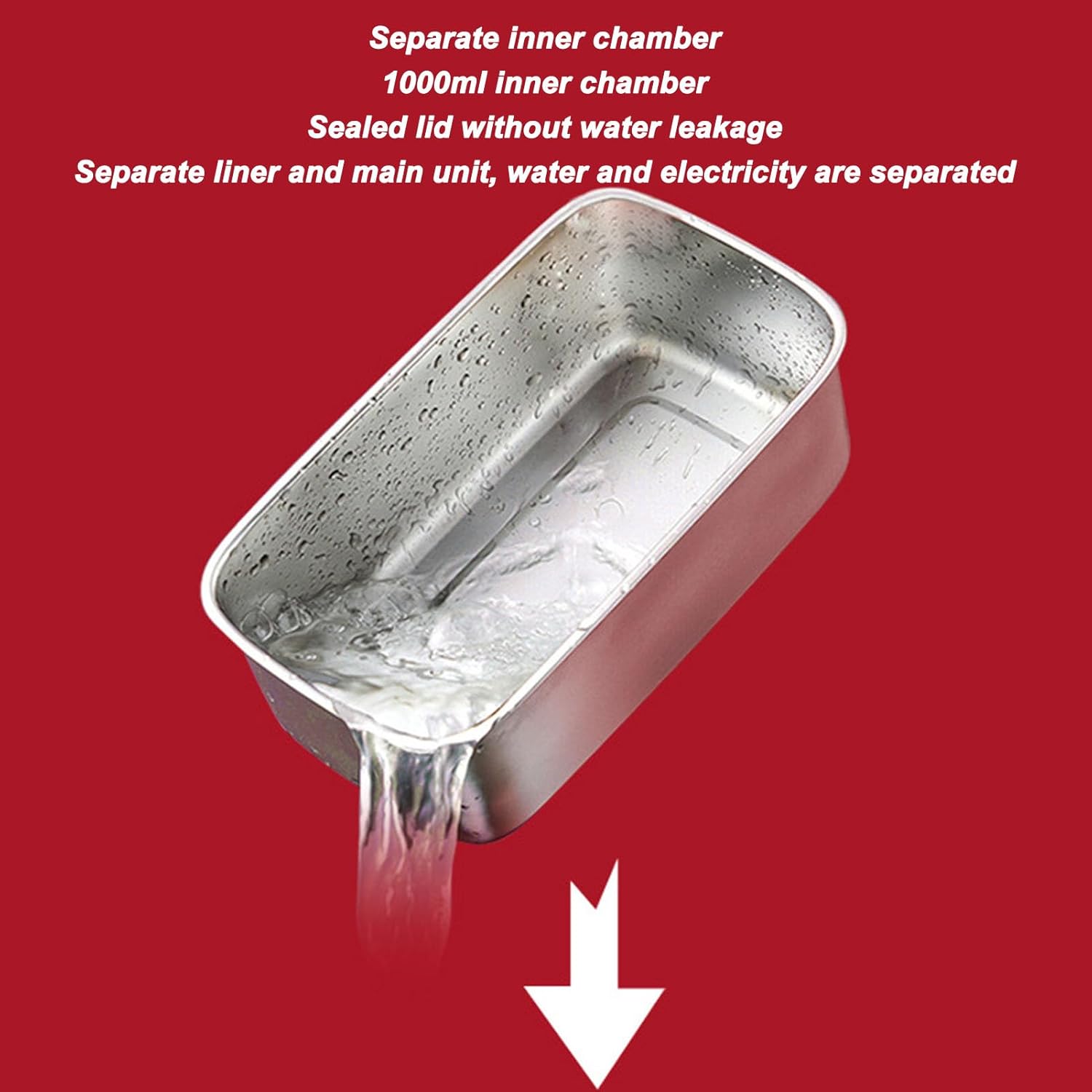 Facile da pulire: il portapranzo elettrico adotta un contenitore interno . Il coperchio sigillato del contenitore interno da 1000 ml non perde. Il contenitore interno è separato dall'unità principale, acqua ed elettricità sono separate. Materiale premium: il contenitore per il pranzo riscaldato è realizzato in materiale per uso alimentare, resistente alle alte temperature, da usare. Che si tratti di riscaldare un pasto o di mantenerlo caldo per un consumo successivo, puoi fare affidamento sulla struttura premium. Ricarica USB portatile: contenitore per il pranzo riscaldante ricaricabile tramite ricarica USB portatile, comodo e semplice, ovunque con la carica, di piccole dimensioni, facile da trasportare, assicurandoti di poter gustare pasti caldi ovunque tu sia senza problemi. Batteria incorporata da 16000 mAh: il contenitore per il pranzo è dotato di una batteria da 16000 mAh, può essere utilizzato a lungo. Dì addio all'inconveniente di aver bisogno di ricariche frequenti poiché questo contenitore per il pranzo è progettato per la tua comodità e comodità. Riscaldamento a 5 marce: quando il portapranzo si sta riscaldando, è possibile scegliere tra 5 marce, 20/30/40/50/60 minuti, con funzione di conservazione del calore a lungo termine. Questa funzionalità versatile garantisce che i tuoi pasti rimangano alla temperatura ottimale finché non sei pronto a gustarli.